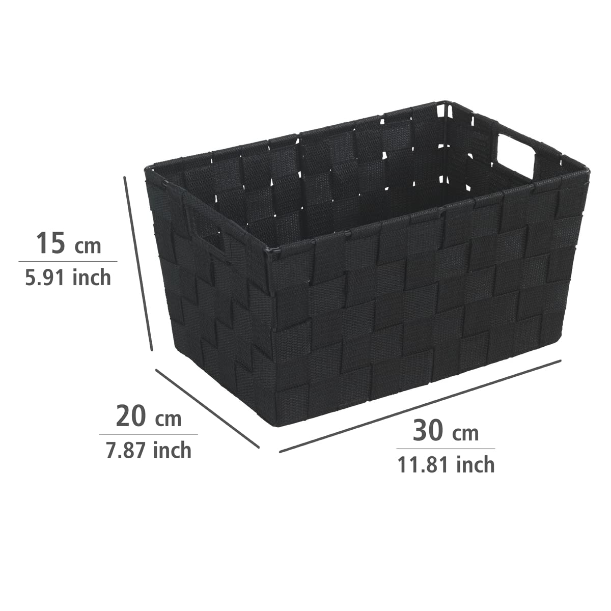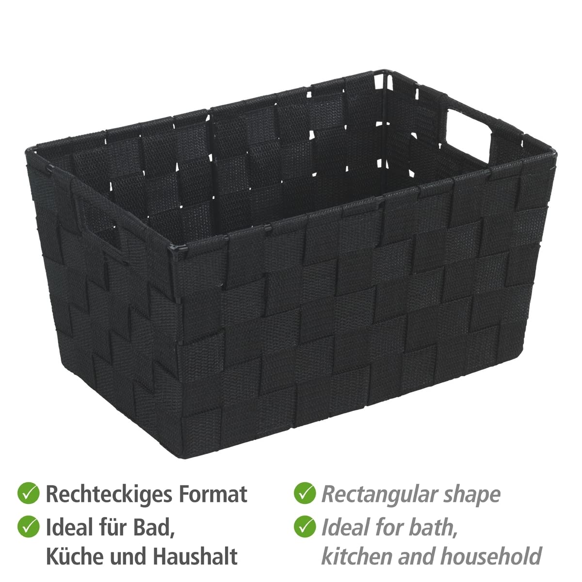 WENKO Badkorb Mod. Adria, Kleiner Aufbewahrungskorb ideal für Haushalt, Küche und Bad, hochwertiges Kunststoffgeflecht mit Metallstangen für extra Stabilität, 30 x 15 x 20 cm, Schwarz