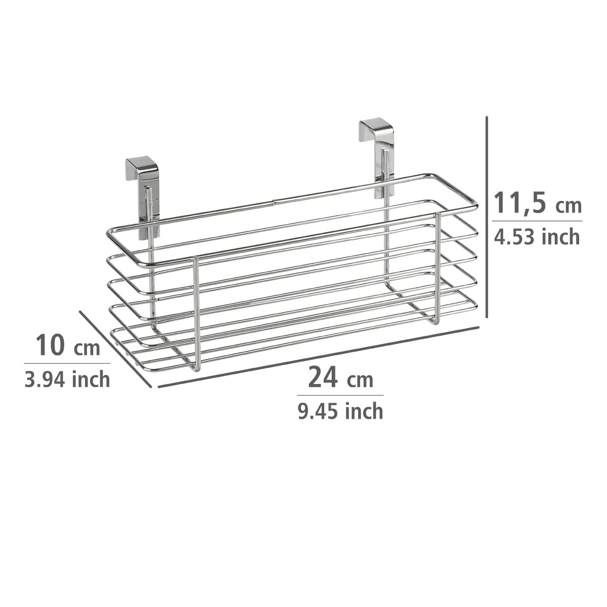 WENKO Einhängekorb Slim, Organizer zum Einhängen an Schranktür oder Schublade, Korb aus Metall, 24 x 11,5 x 10 cm, Chrom