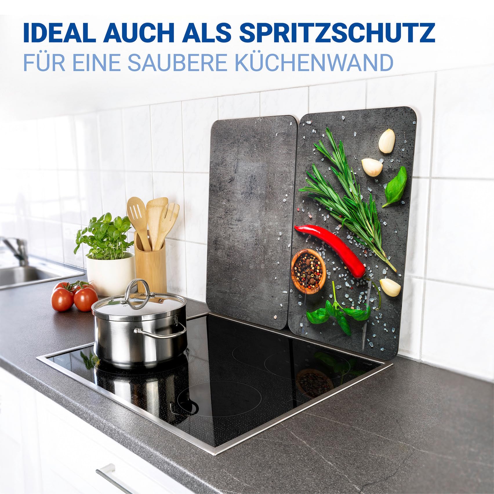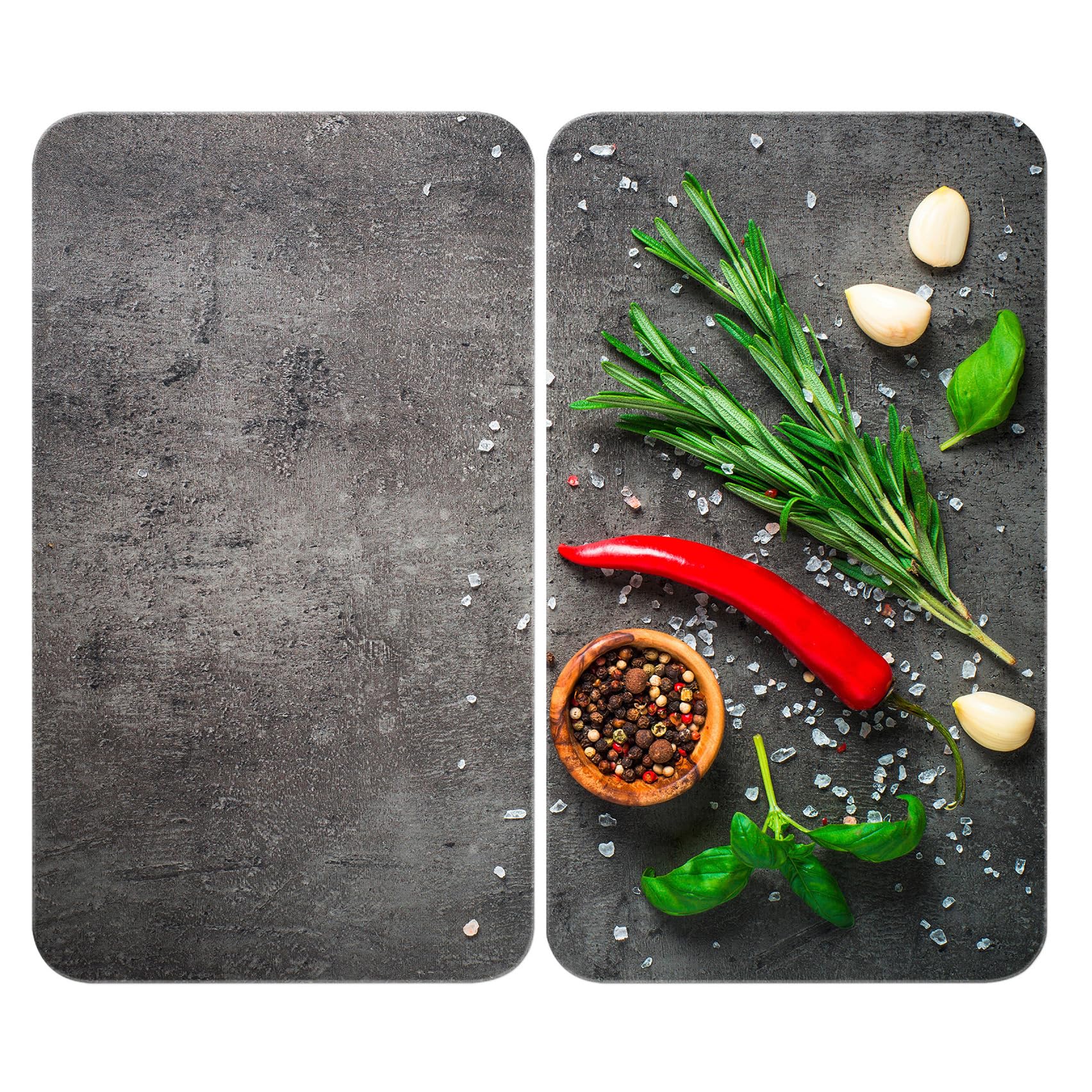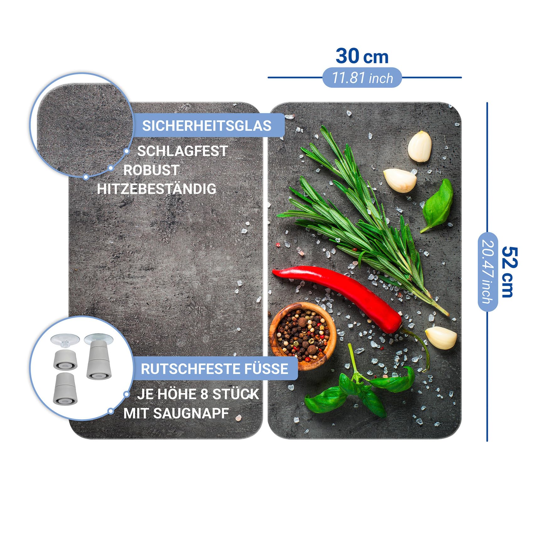 WENKO Herdabdeckplatte Universal Mod. Rosmarin, höhenverstellbar für alle Herdarten, Schneidebrett und Spritzschutz, Glas, 30 x 52 cm, 2-teilig