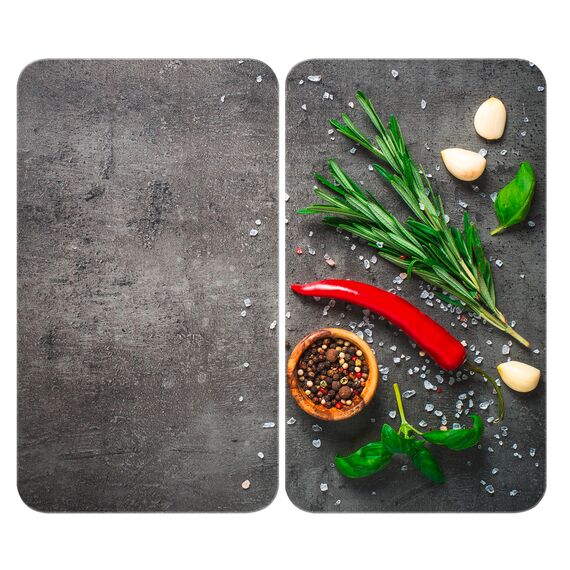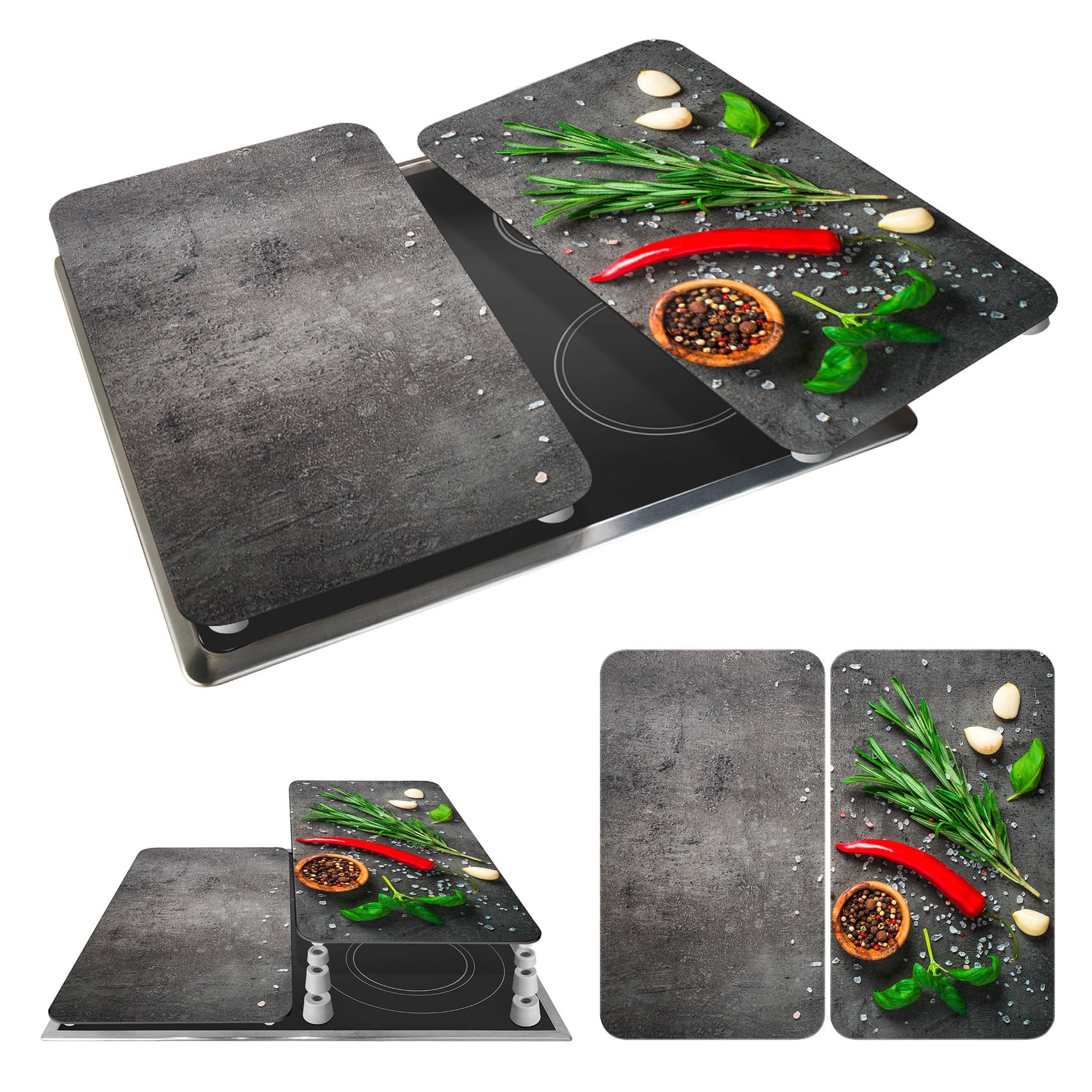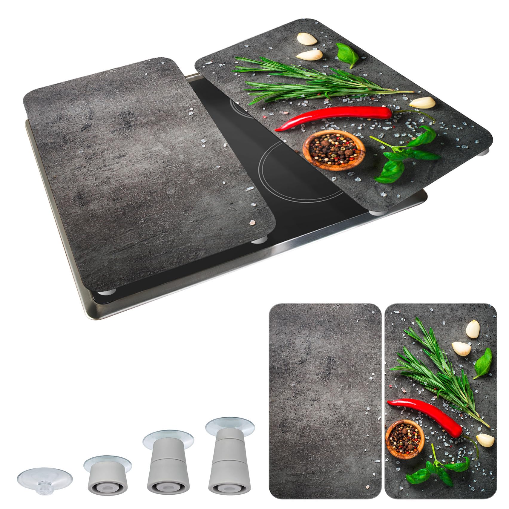 WENKO Herdabdeckplatte Universal Mod. Rosmarin, höhenverstellbar für alle Herdarten, Schneidebrett und Spritzschutz, Glas, 30 x 52 cm, 2-teilig