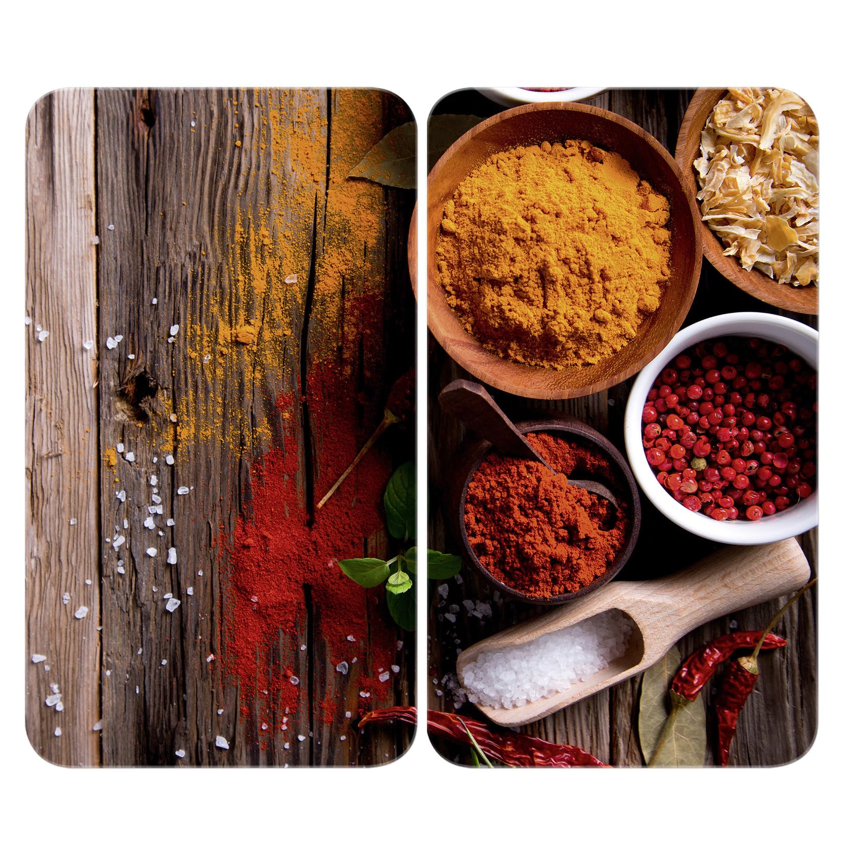 WENKO Herdabdeckplatte Universal Mod. Gewürze, höhenverstellbar für alle Herdarten, Schneidebrett und Spritzschutz, Glas, 30 x 52 cm, 2-teilig