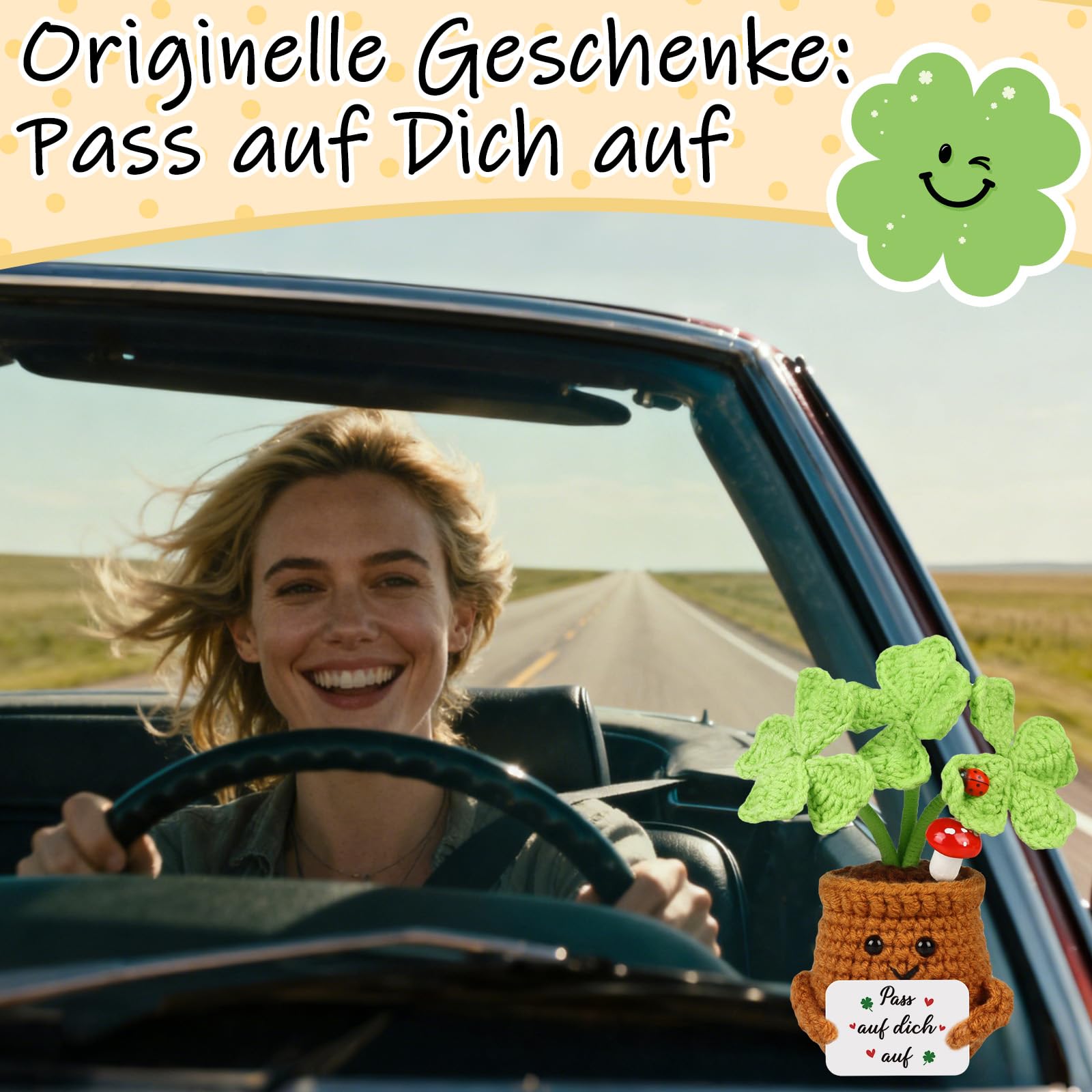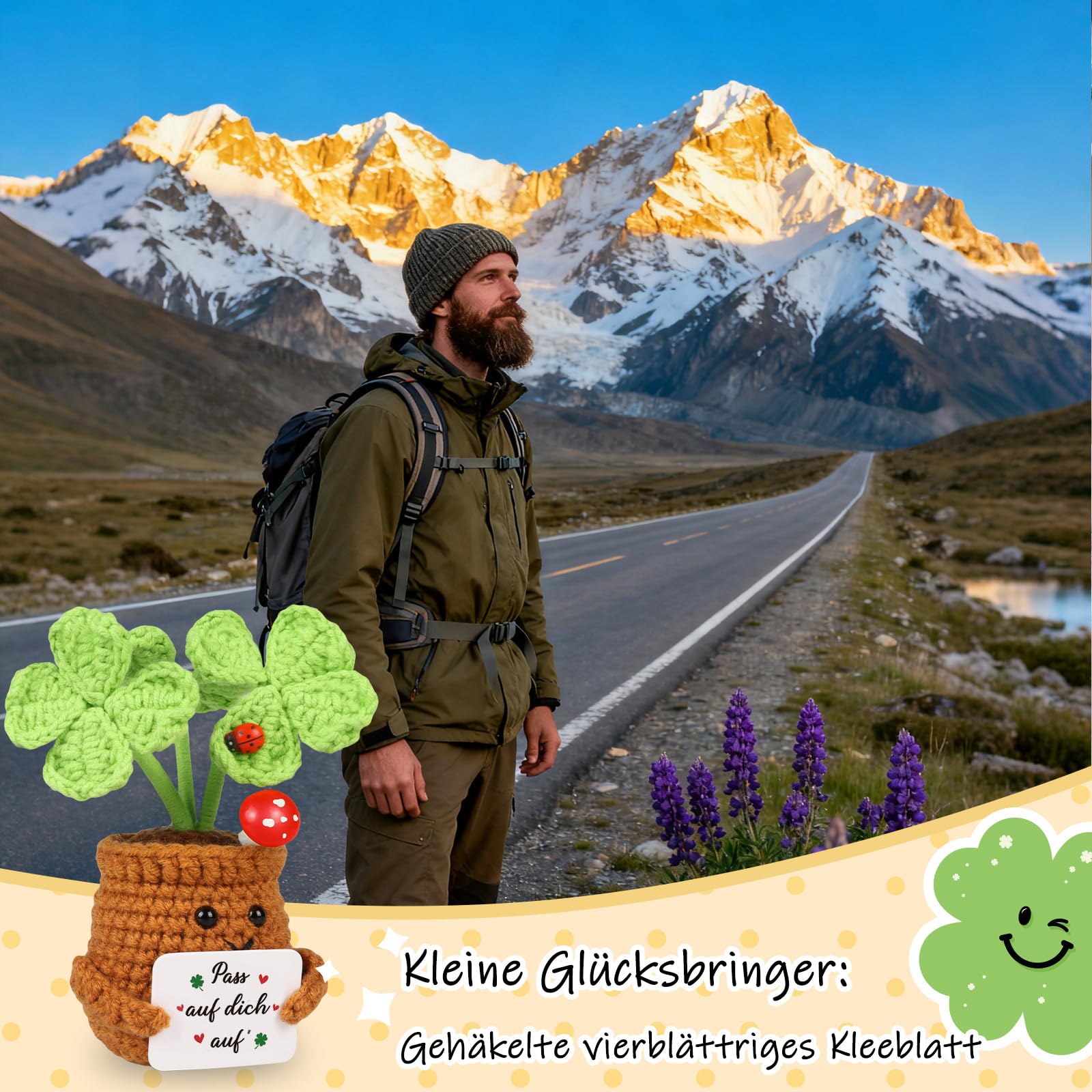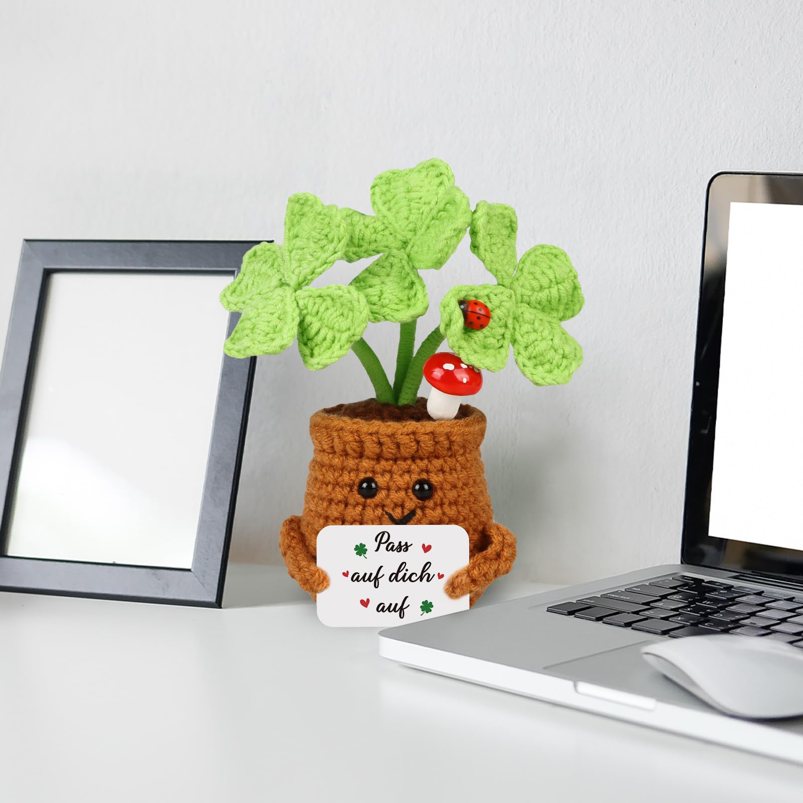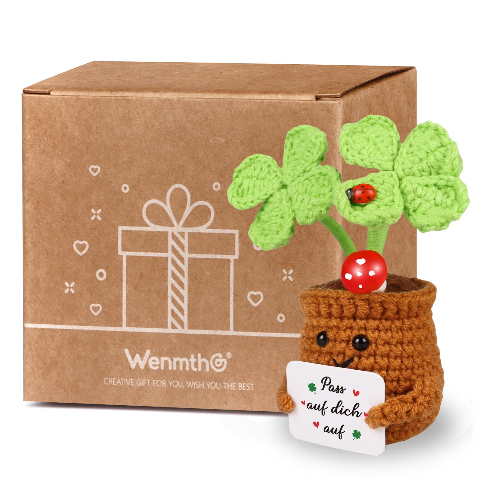 WenmthG Kleiner Glücksbringer Gehäkelte Vierblättriges Kleeblatt Abschiedsgeschenke Glück Geschenke für den besten Freund Kollegen Reisende Reise, Pocket Hug Vierblättriges Kleeblatt Reise Geschenk