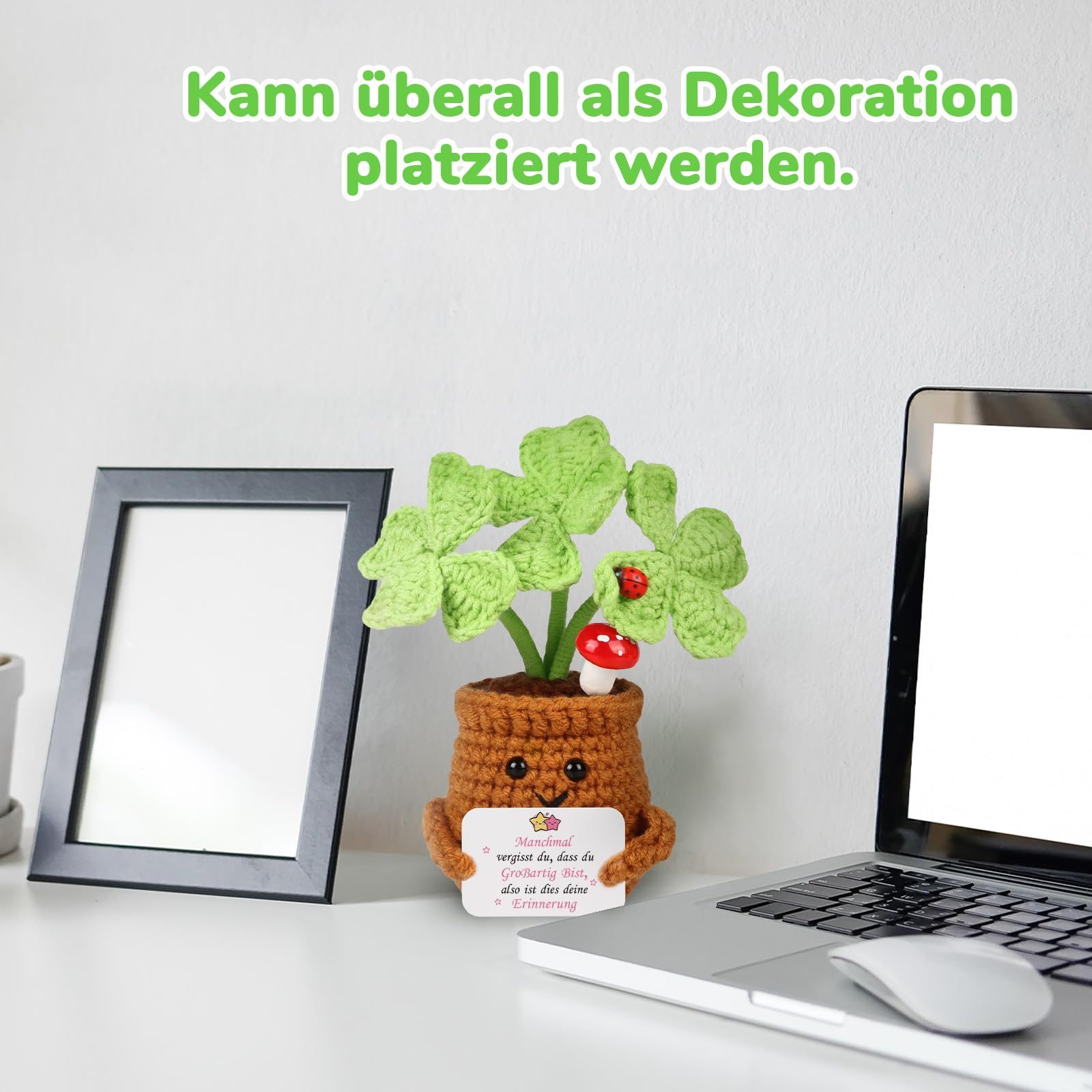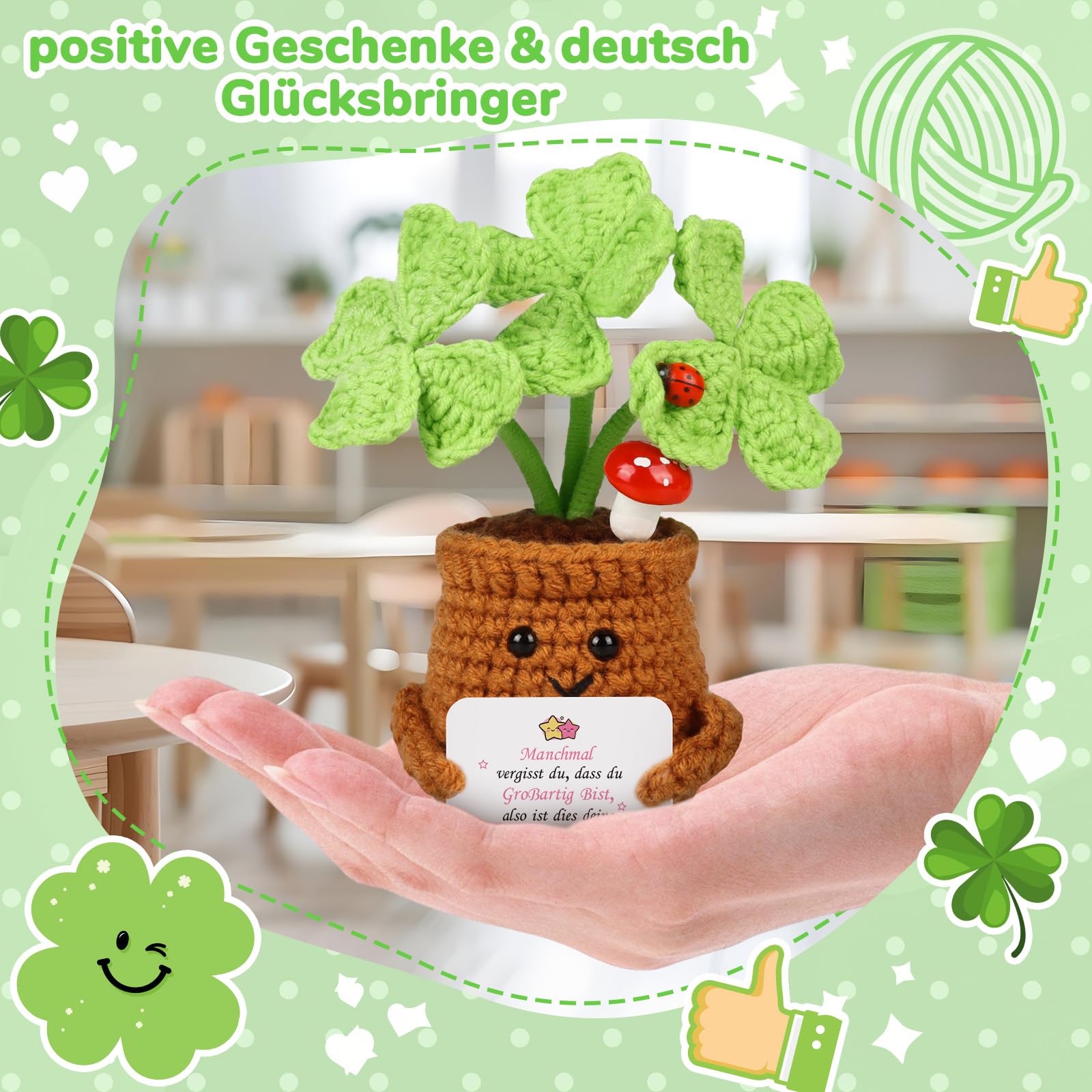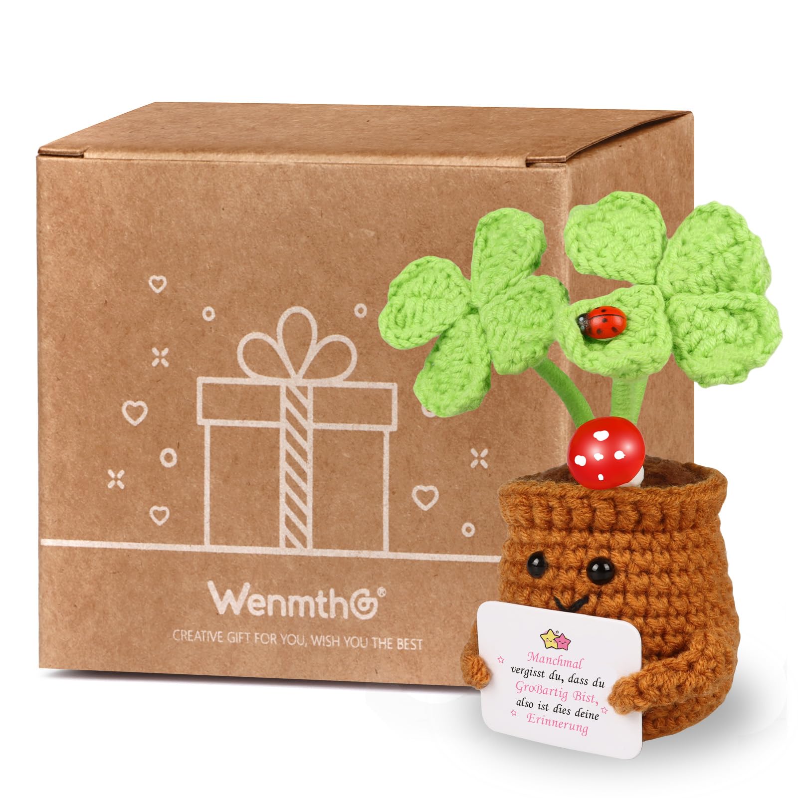 WenmthG Geschenke Für Frauen Gestrickte Vierblättriges Kleeblatt Deutsch Glücksbringer Anti Stress Kleines Geschenk für Schwester Freundin Kollegen Freunde Positive Kartoffel Deutsch Ersatz