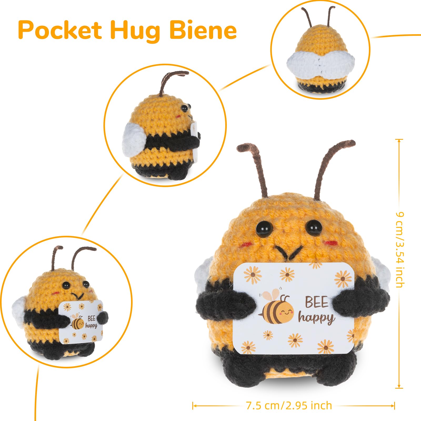 WenmthG Pocket Hug Biene Glücksbringer Geschenke, Glück Biene Positive Geschenke, Positive Kartoffel Deutsch Ersatz - 1 St