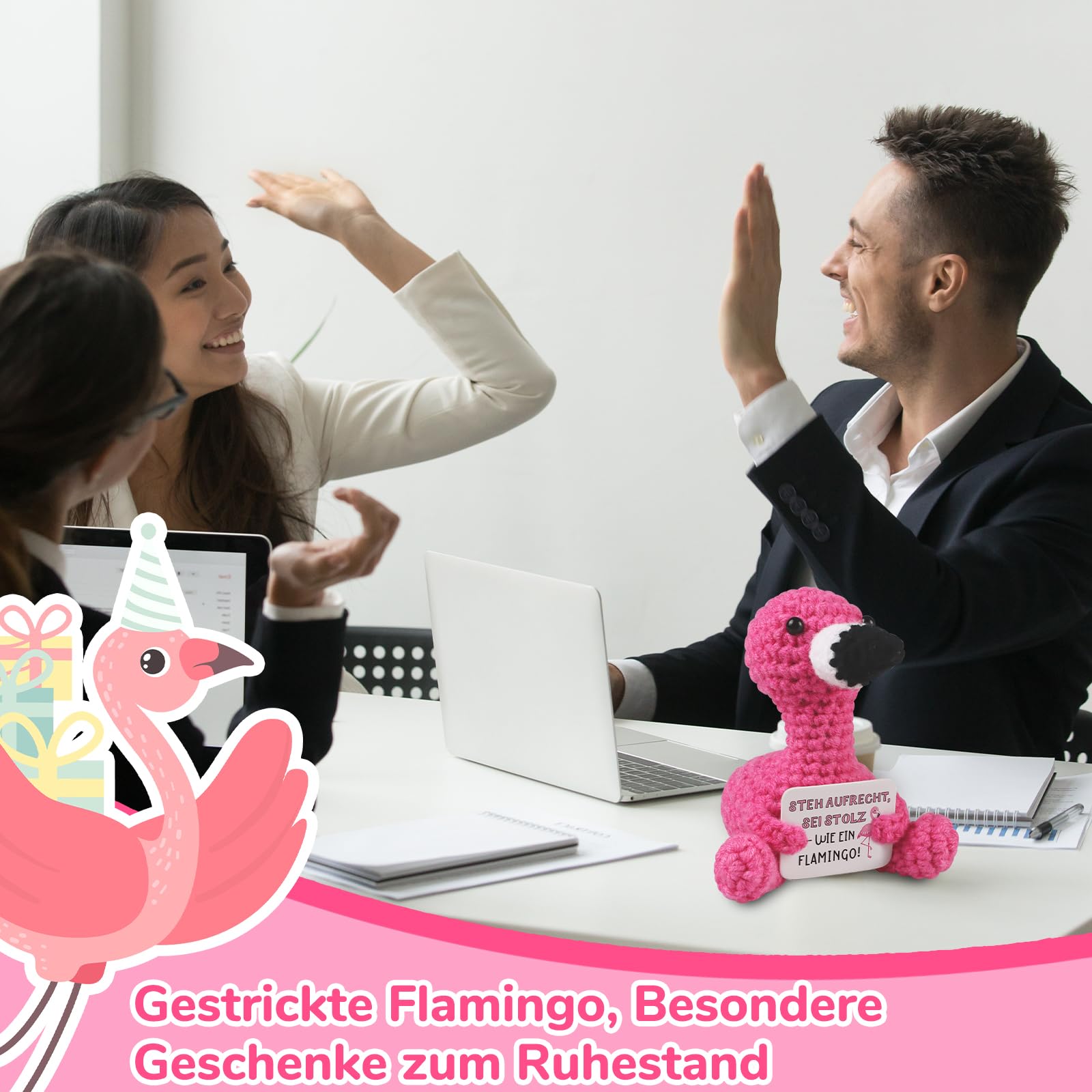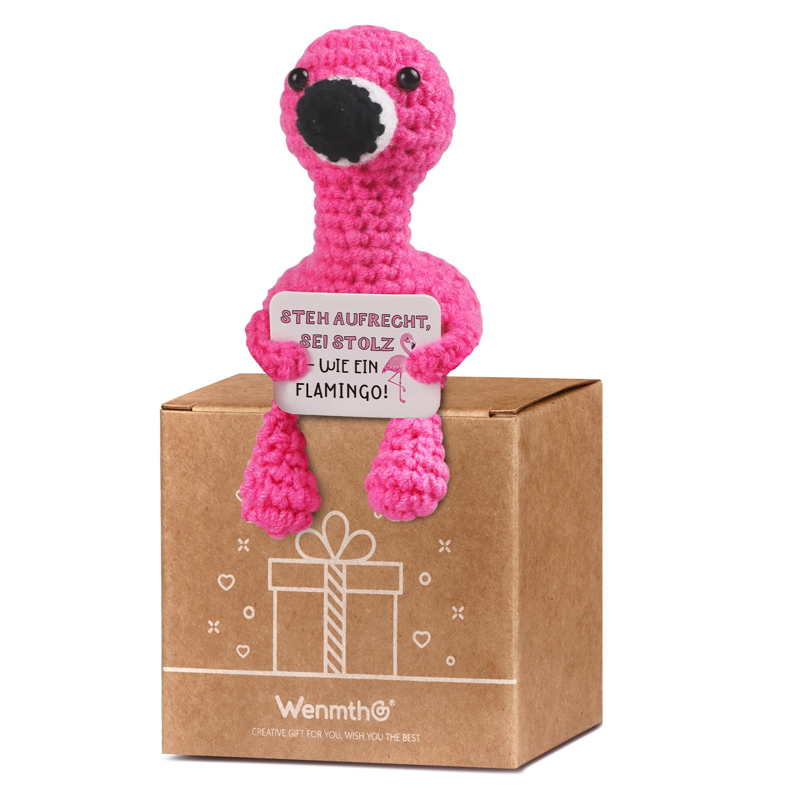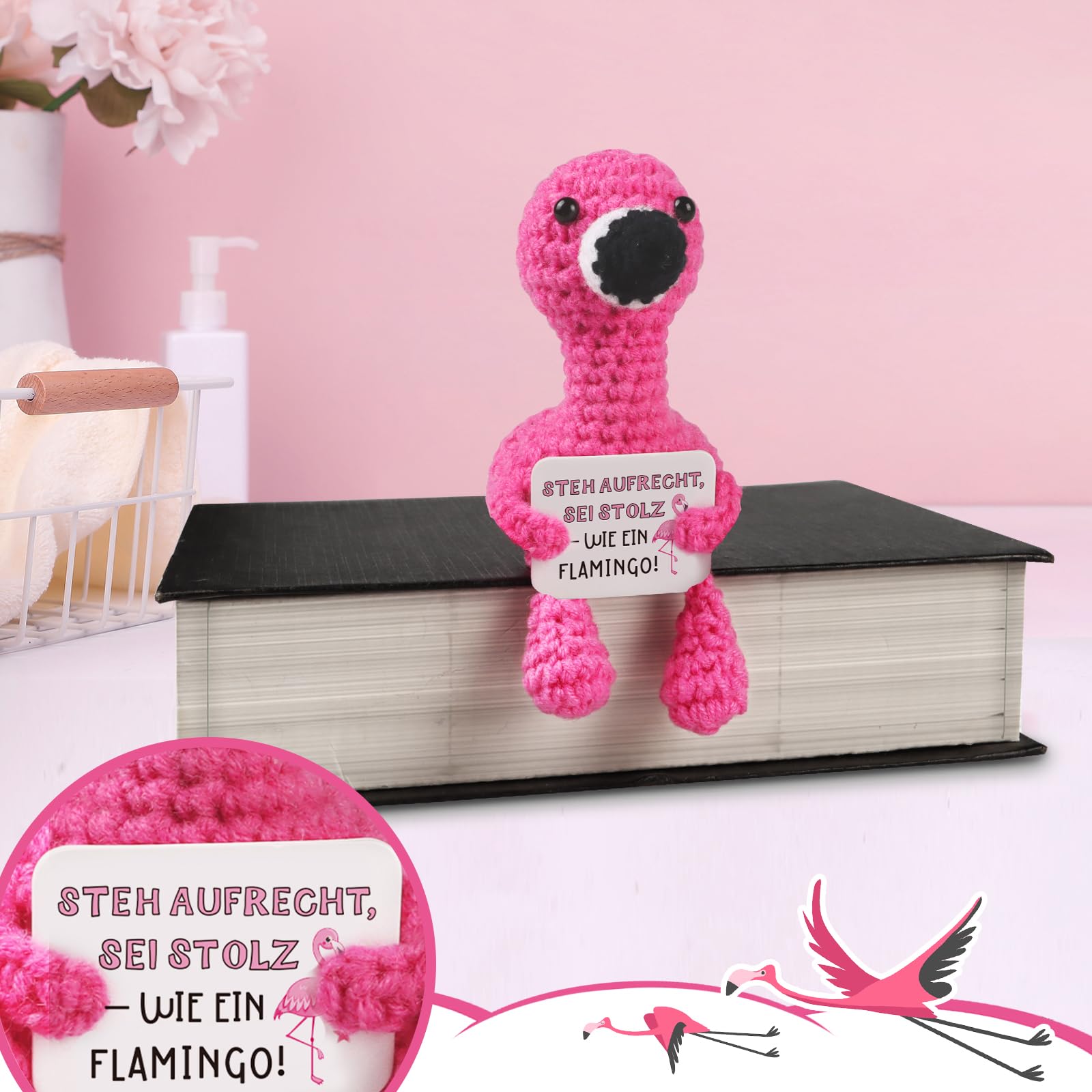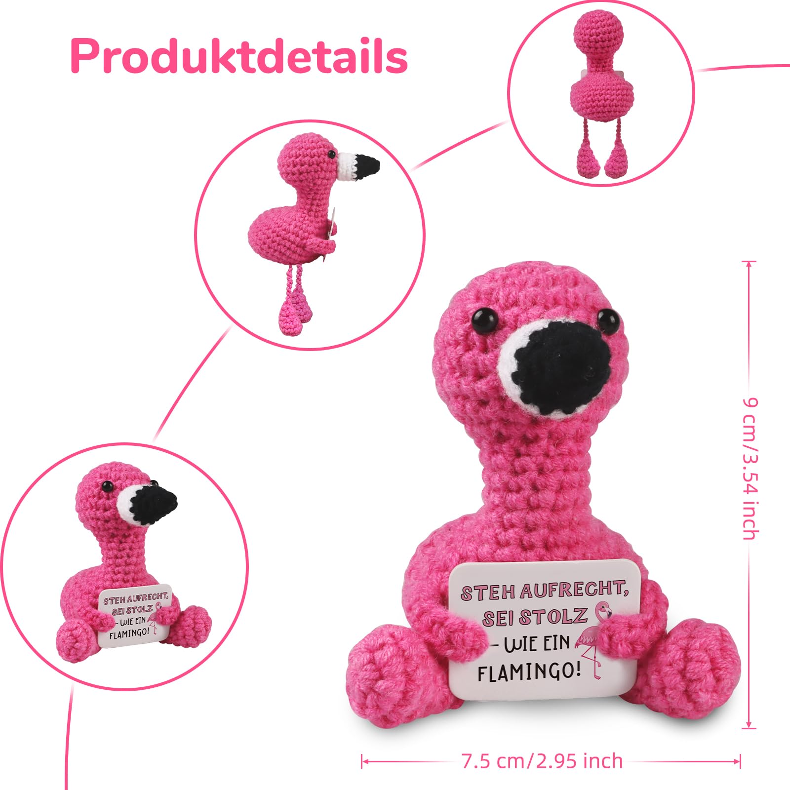 WenmthG Pocket Hug Flamingo Glücksbringer Deutsch Dankeschön Geschenke für Freund Kollegin Frauen Männer, Gestrickte Flamingo Anti Stress Geschenke Positive Kartoffel Deutsch Ersatz - 1 St