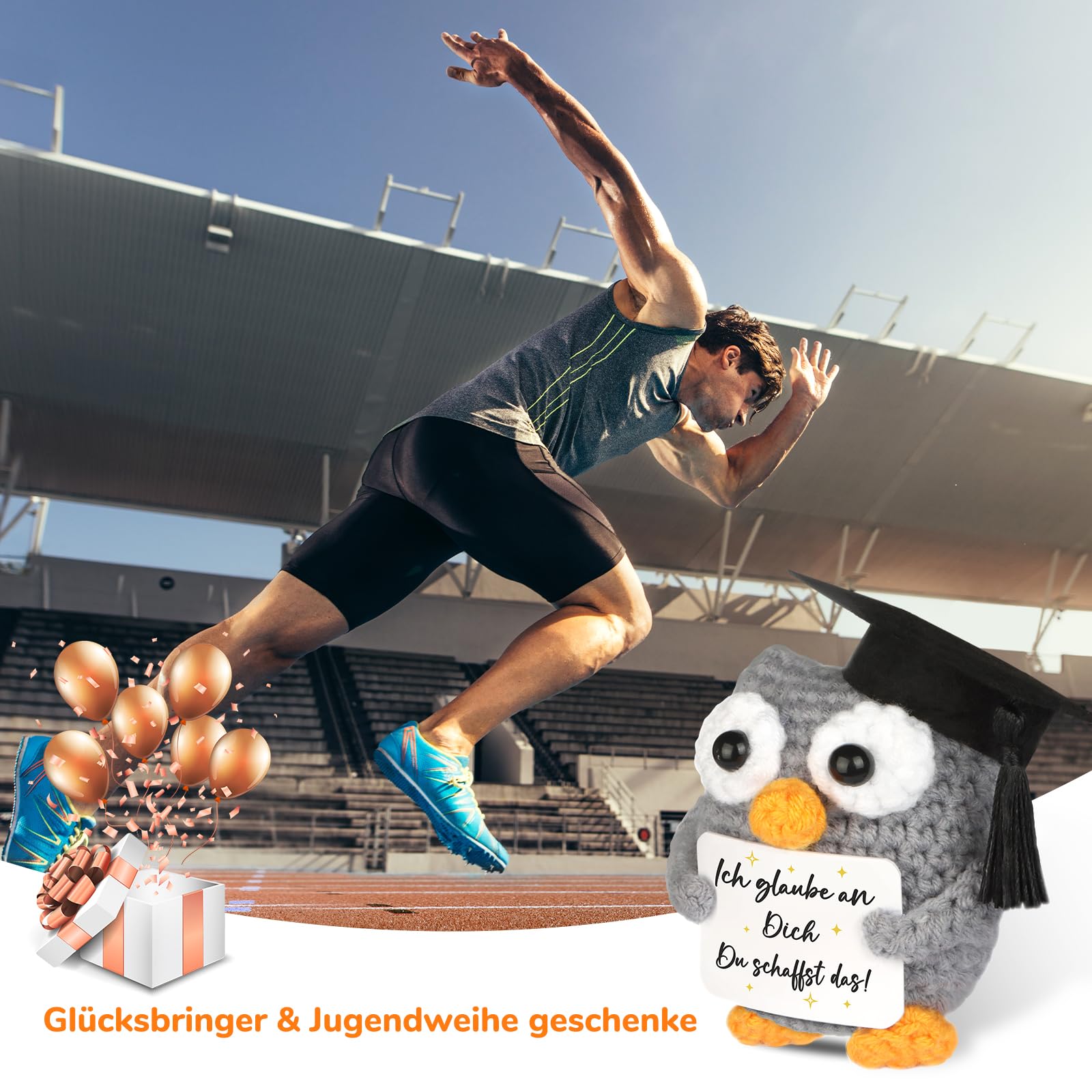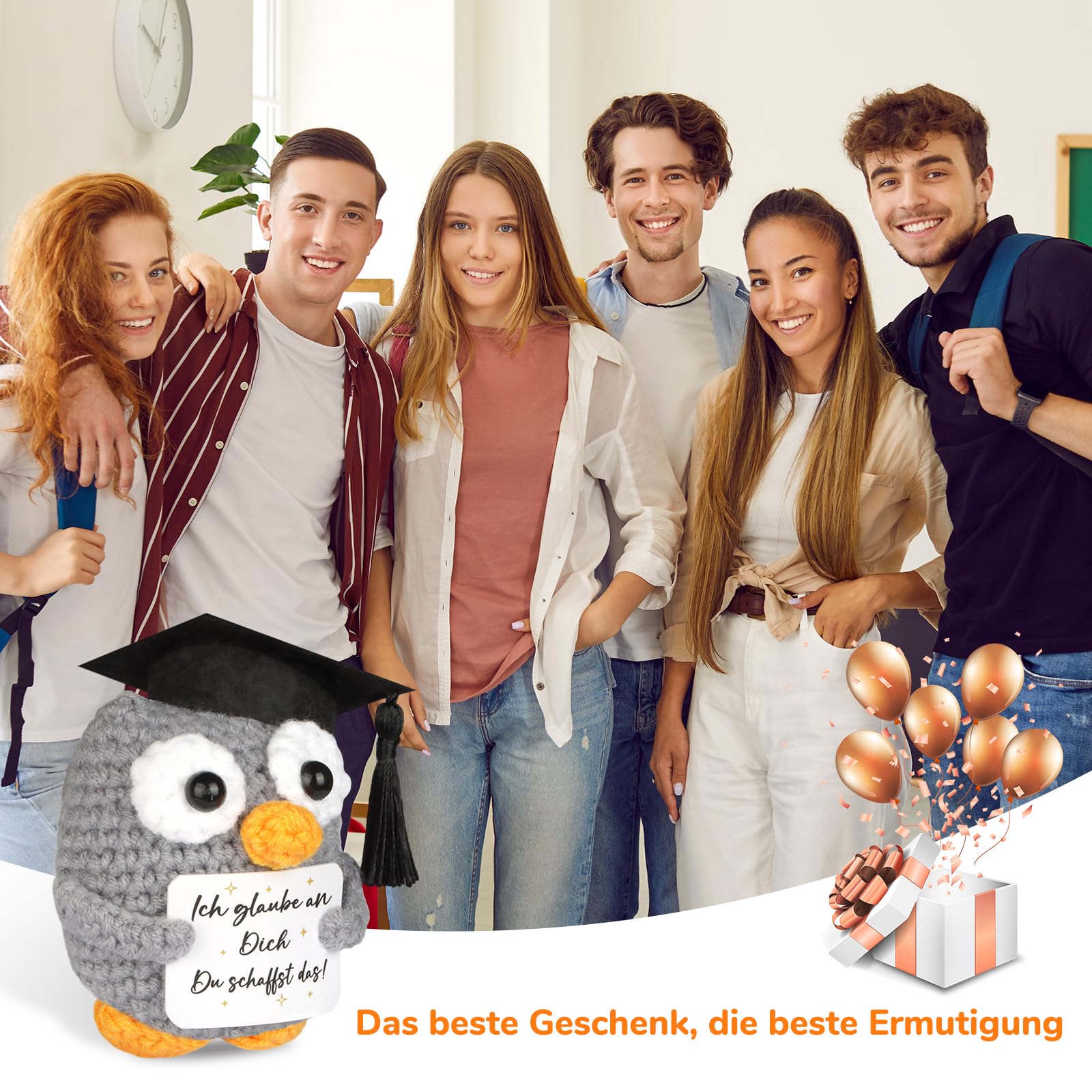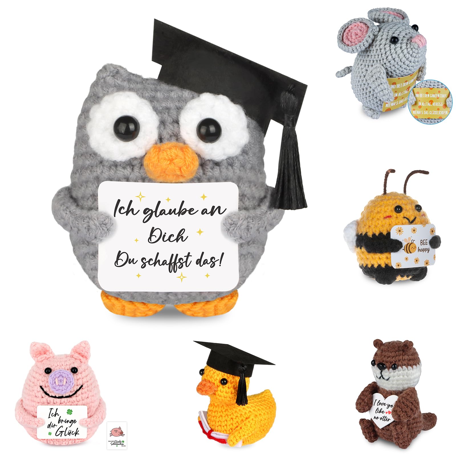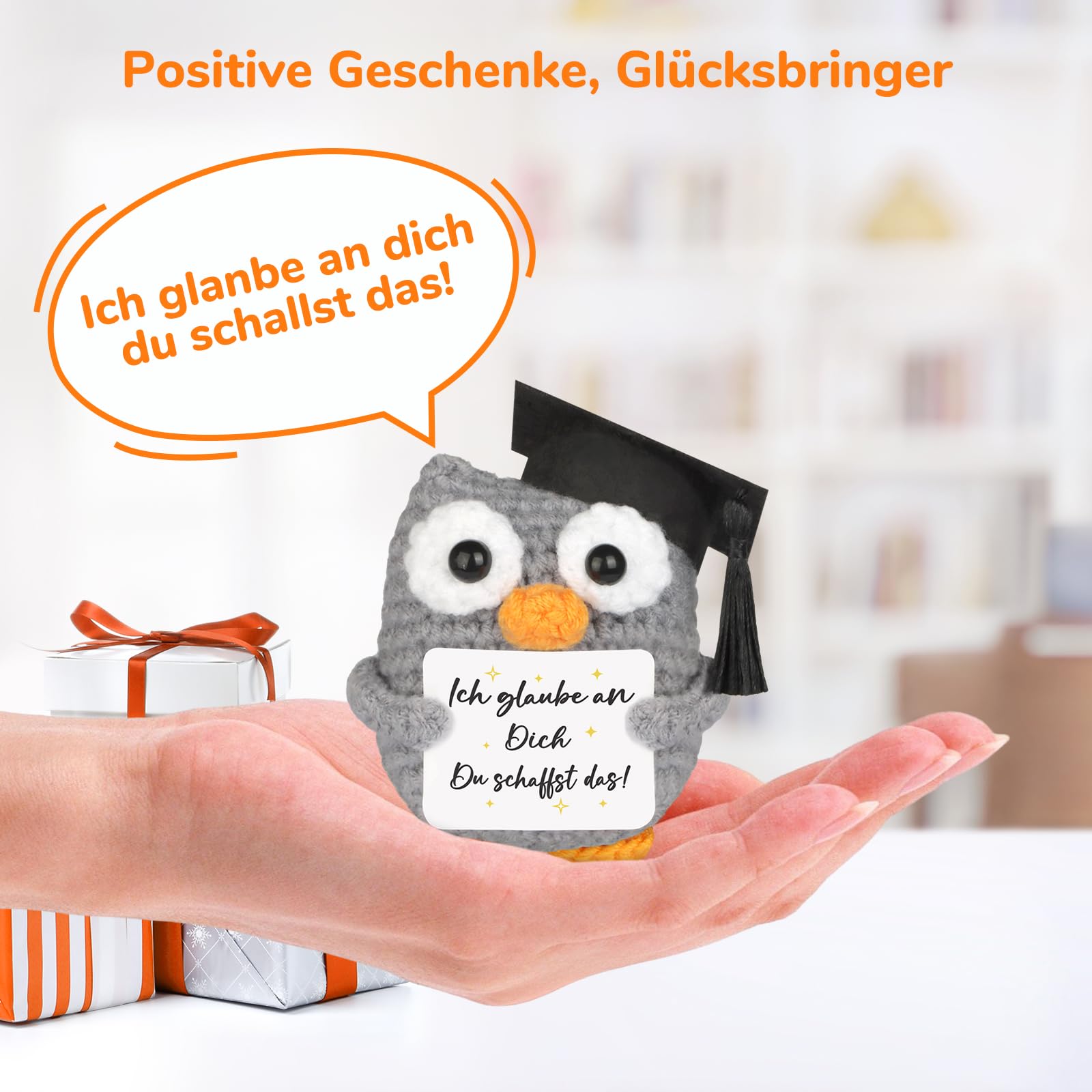 Gestrickte Eule Positive Geschenke Pocket Hug Eule, Mutmacher und Glücksbringer für Prüfungen - 1 St