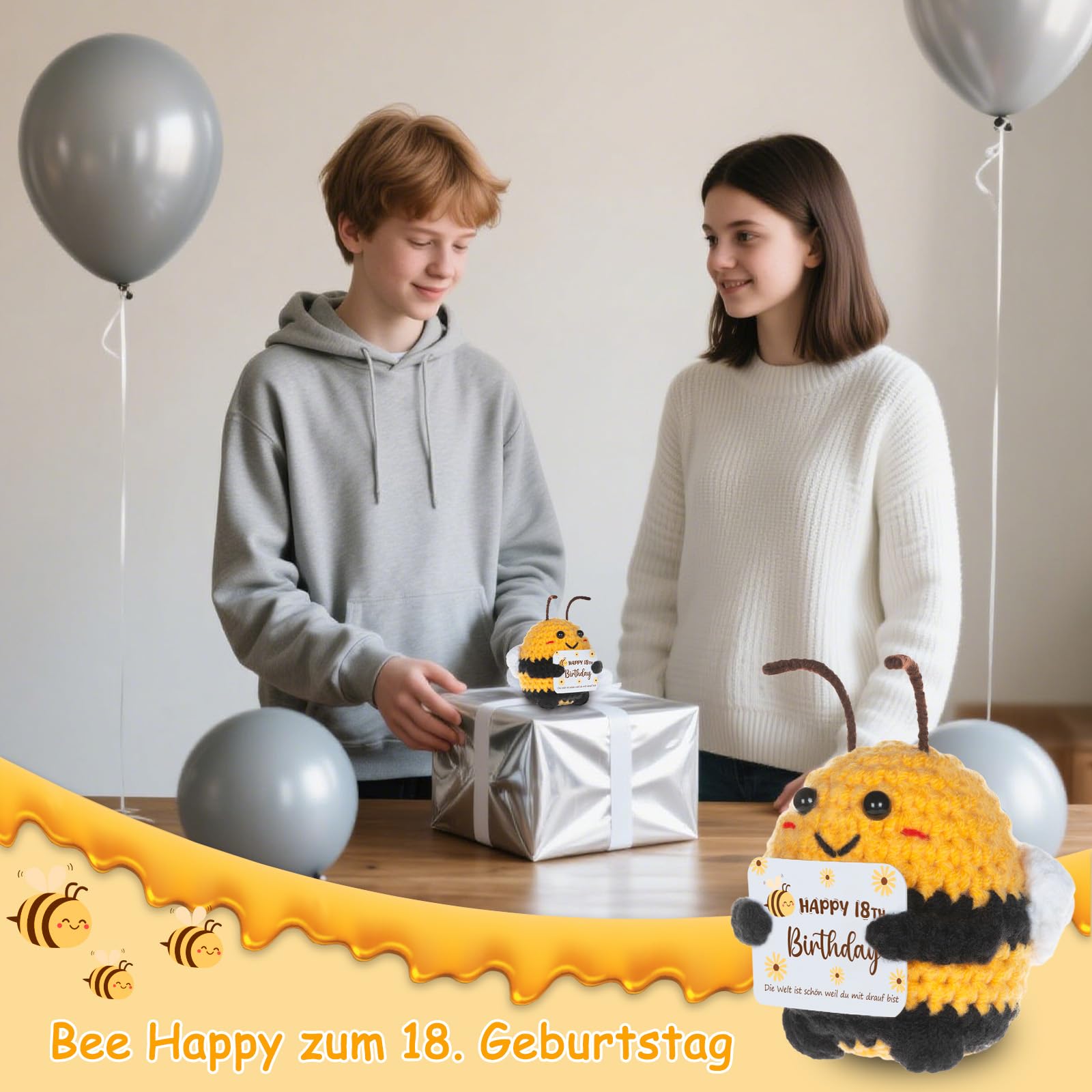 WenmthG Pocket Hug Positive Biene Glücksbringer zum 18 Geburtstag Geschenke für Beste Freund Mädchen Junge, Anti Stress Geschenke Bee Happy Biene Positive Kartoffel Deutsch Ersatz - 1 St