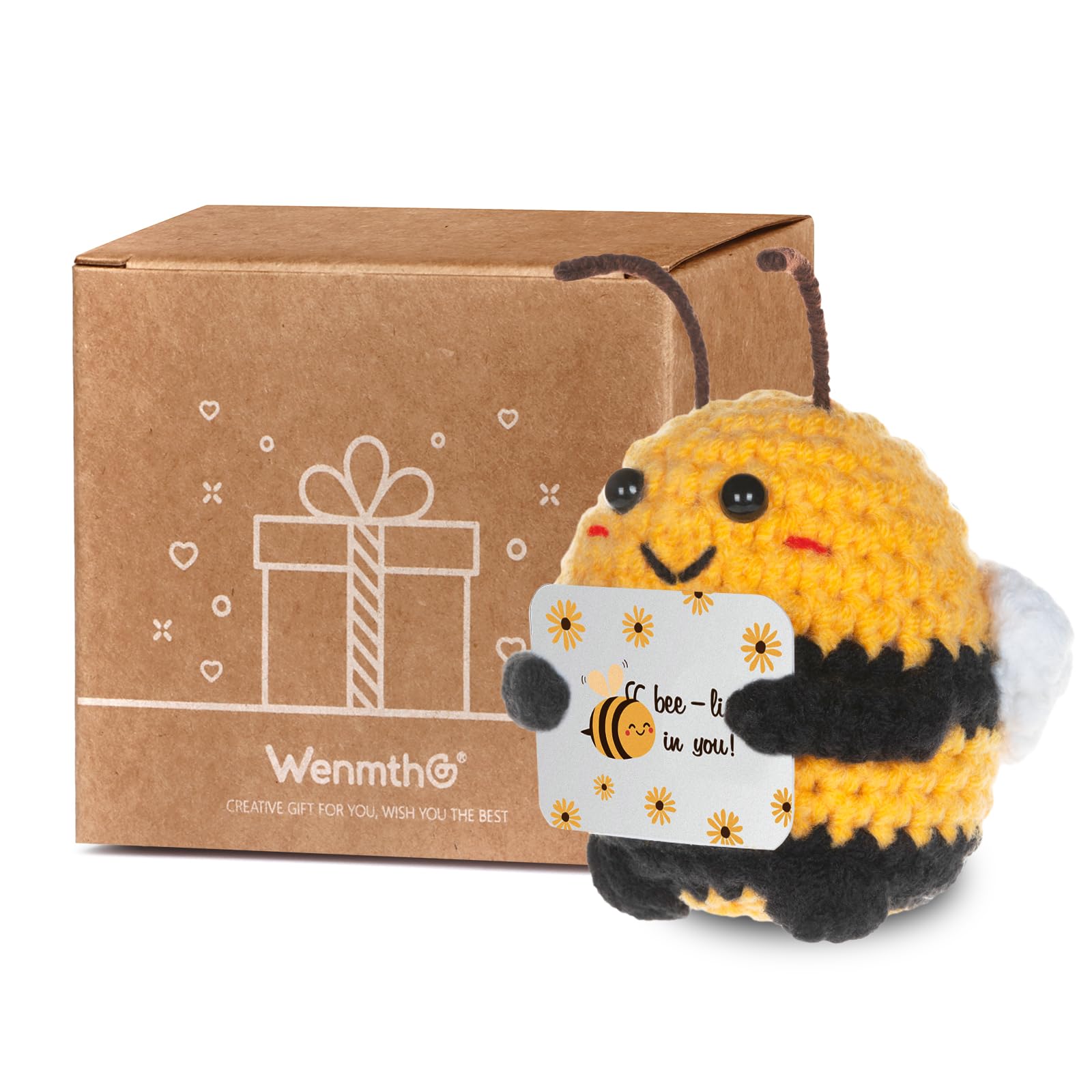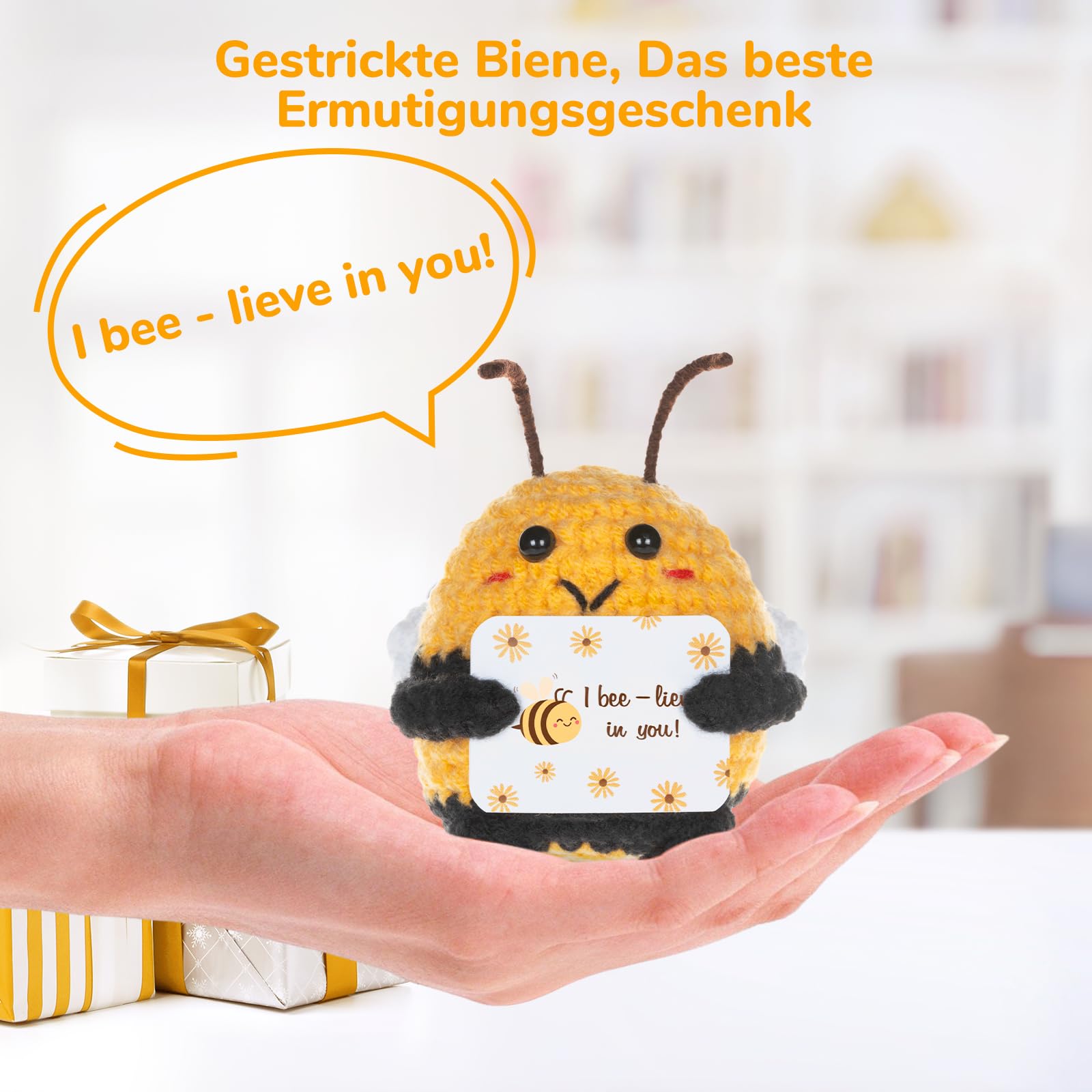 WenmthG Glücksbringer Biene Aufmunternden Geschenken für Kollegin Freund Frauen Männer, Pocket Hug Biene Gehäkelt Positive Kartoffel Deutsch Ersatz - 1 St
