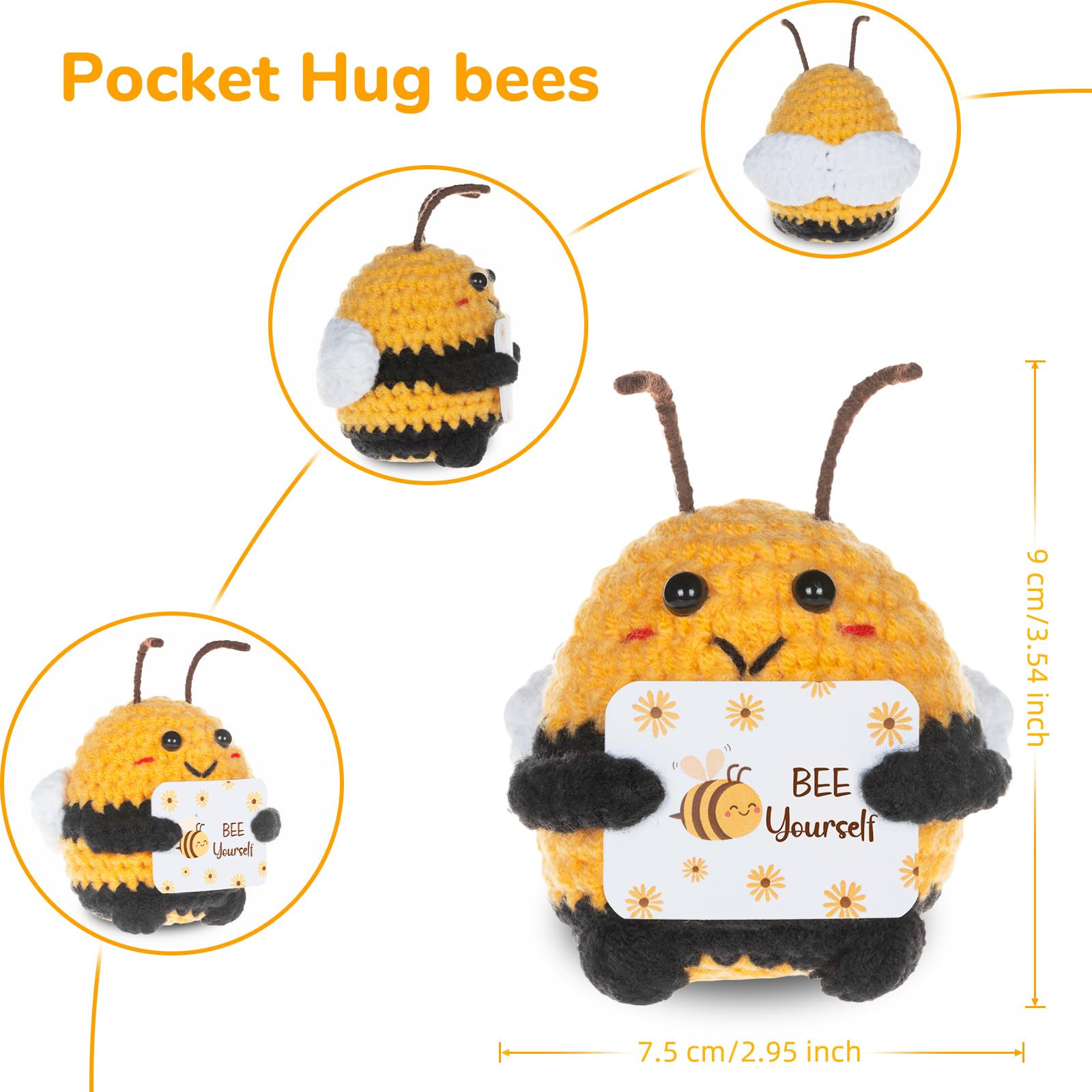 WenmthG Glücksbringer Pocket Hug Biene Positive Geschenke für Freund Frauen Männer, Glück Biene Gehäkelt Positive Kartoffel Deutsch Ersatz - 1 St