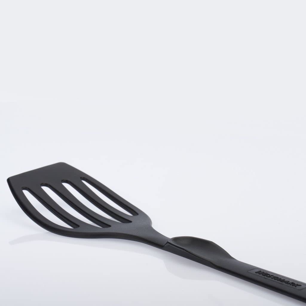 • Kein Zerkratzen von antihaftbeschichtetem Kochgeschirr durch Kunststoffmaterial, einseitig stärker abgerundete Laffe für einfaches Zerteilen von Bratgut in der Pfanne