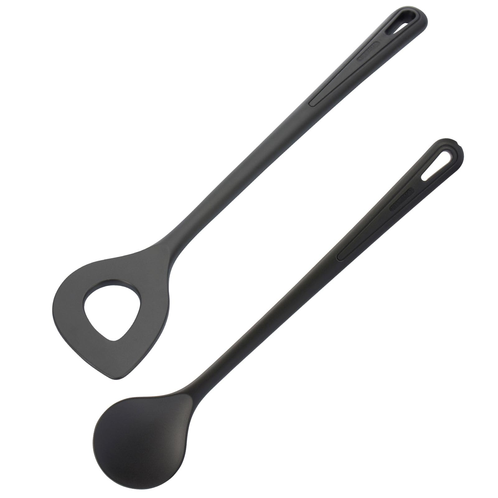 Westmark 2 tlg. Set Rührlöffel + Spitzloch-/Risottolöffel – Ideal zum Anrühren von Speisen in der Pfanne oder im Topf – Schwarz, 288422E6