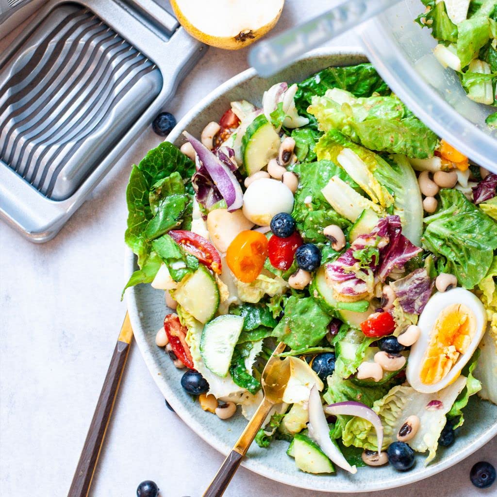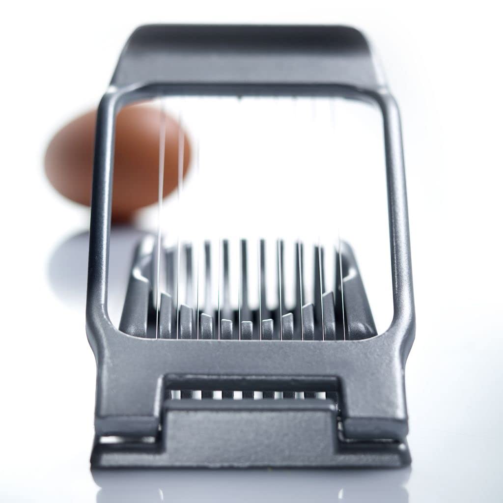 • Müheloses Schneiden dank ergonomisch nach oben gebogenem Griff und 10 straff gespannter, scharfer Drähte aus rostfreiem Edelstahl. Geeignet für Eiergrösse S-L, Schneidefläche von ca. 5,5 cm. Kein Zerbrechen des Eigelbes.