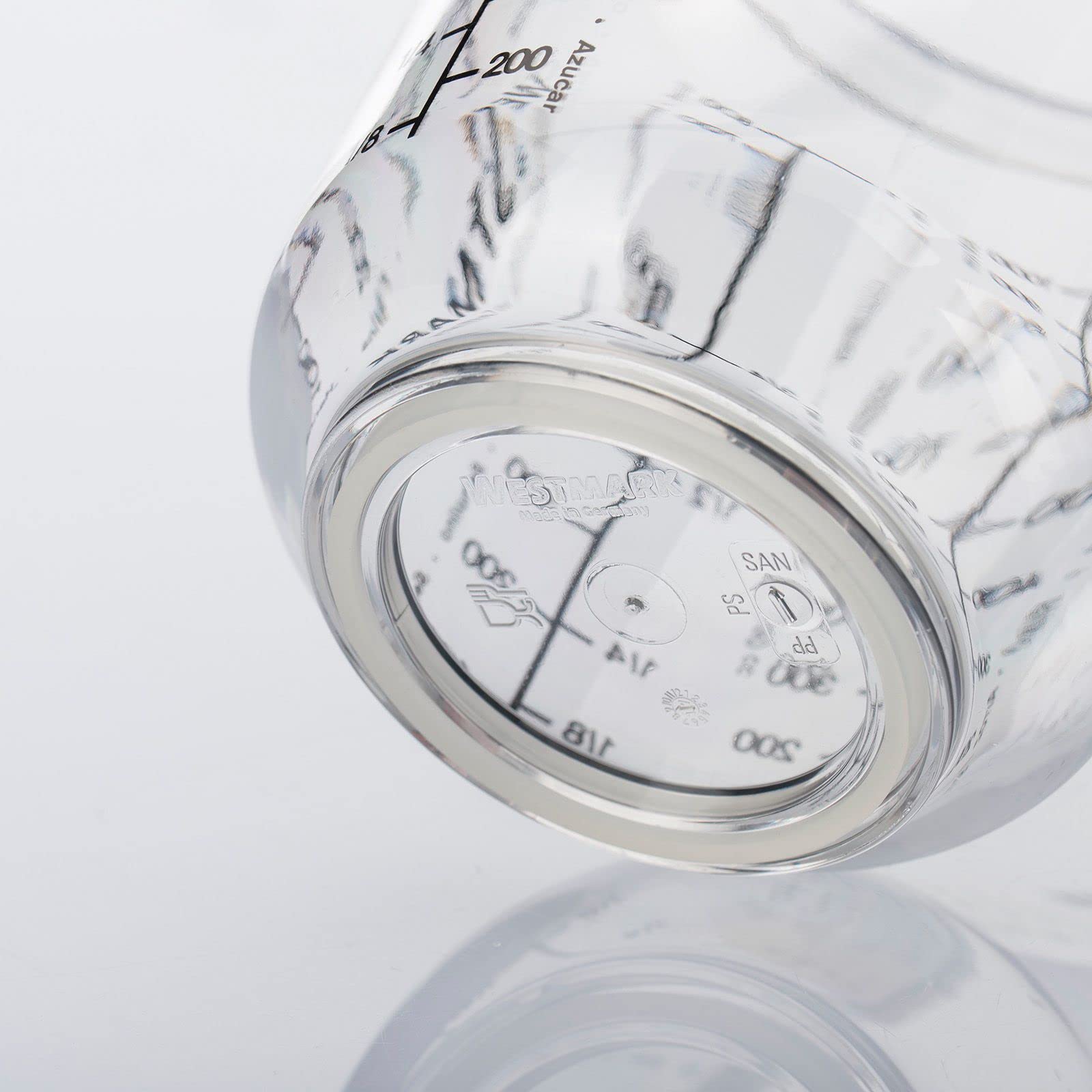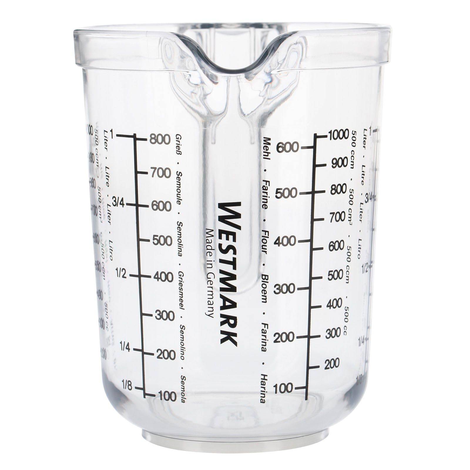 Westmark Gerda Messbecher 1l - Messskalen für Gramm (für Mehl, Zucker, Reis und Griess), Liter & Milliliter - Made in Germany - Kunststoff - 18 x 12,4 x 16,5 cm (transparent)
