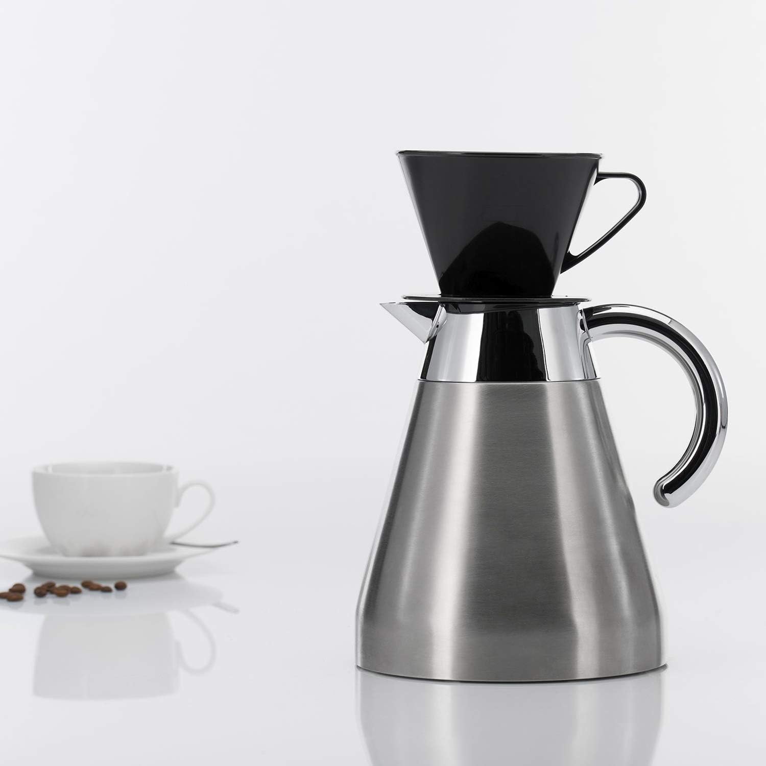 Klassischer Kaffeefilterhalter aus Kunststoff zum Handaufbrühen von Kaffeepulver für bis zu 2 Tassen frischen Kaffee, auch für losen Tee geeignet - Für Camper und Gelegenheits-Kaffeetrinker: Schonendes Aufbrühen von Hand ohne Strom für besonders aromatischen Kaffee, guter Halt auf einzelnen Tassen, Kaffee- oder Isolierkannen durch grossen Bodenaufsatz (Ø 10 cm) - Gerillte Filter-Innenseite für guten Halt der Papierfilter und für optimalen Fluss in die Tasse oder Kanne, einfaches Einsetzen von Papierfiltern (Grösse 2) und Eingiessen heissen Wassers auf das Kaffeepulver, leichte Handhabung durch schmalen Henkel - Made in Germany; Langlebig, Sorgfältig solide Verarbeitung, Einfache Reinigung, Spülmaschinengeeignet - Lieferumfang: 1x Westmark Kaffeefilter, Two, Filtergrösse 2, Abmessungen: 13,2 x 11 x 8,8 cm, Gewicht: 47 Gramm, Material: Kunststoff (PP), Farbe: Schwarz, 24422261