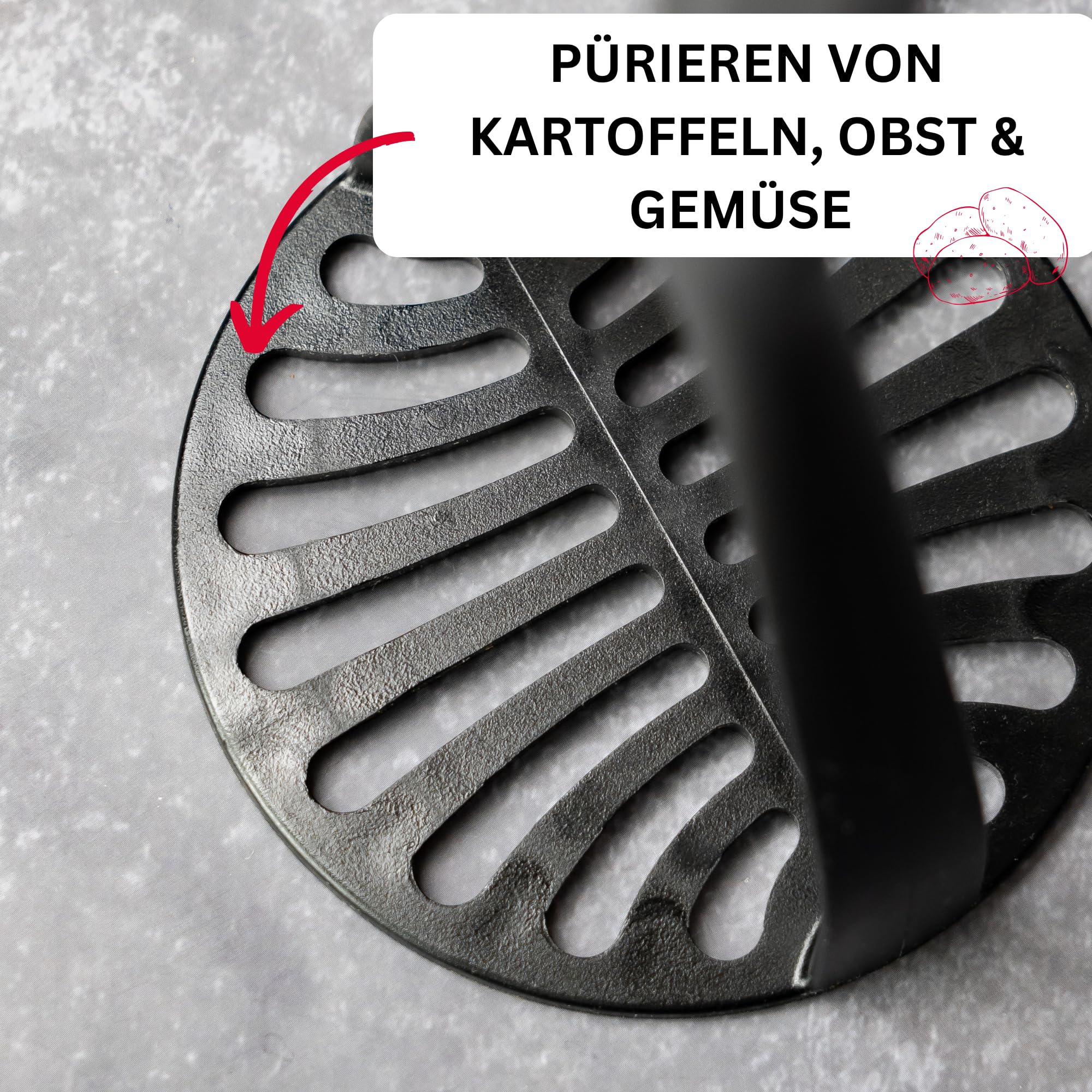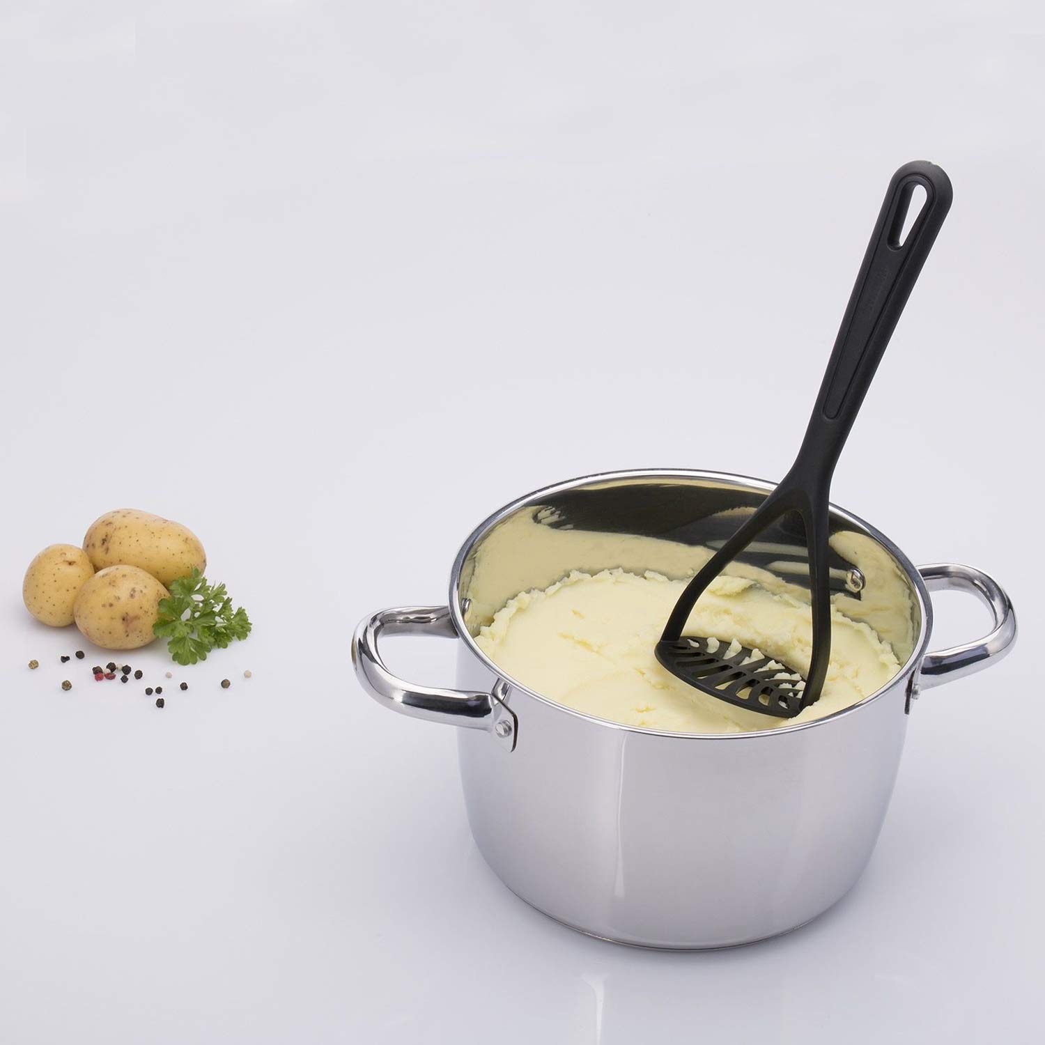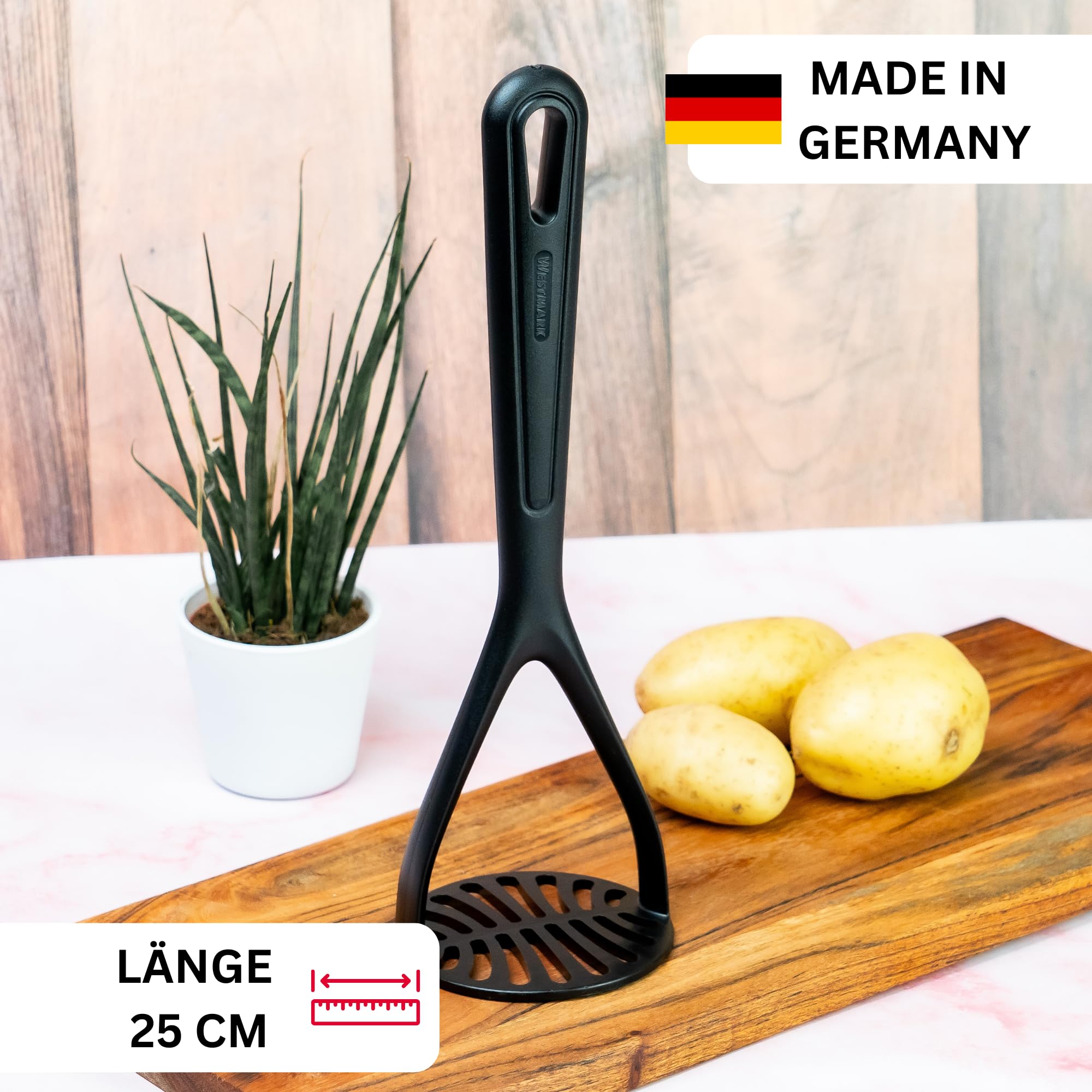 Westmark Kartoffelstampfer Gentle - 27,5 cm lang - 5 Jahre Garantie - spülmaschinengeeigneter Handstampfer -hitzebeständig bis 210 °C (schwarz)
