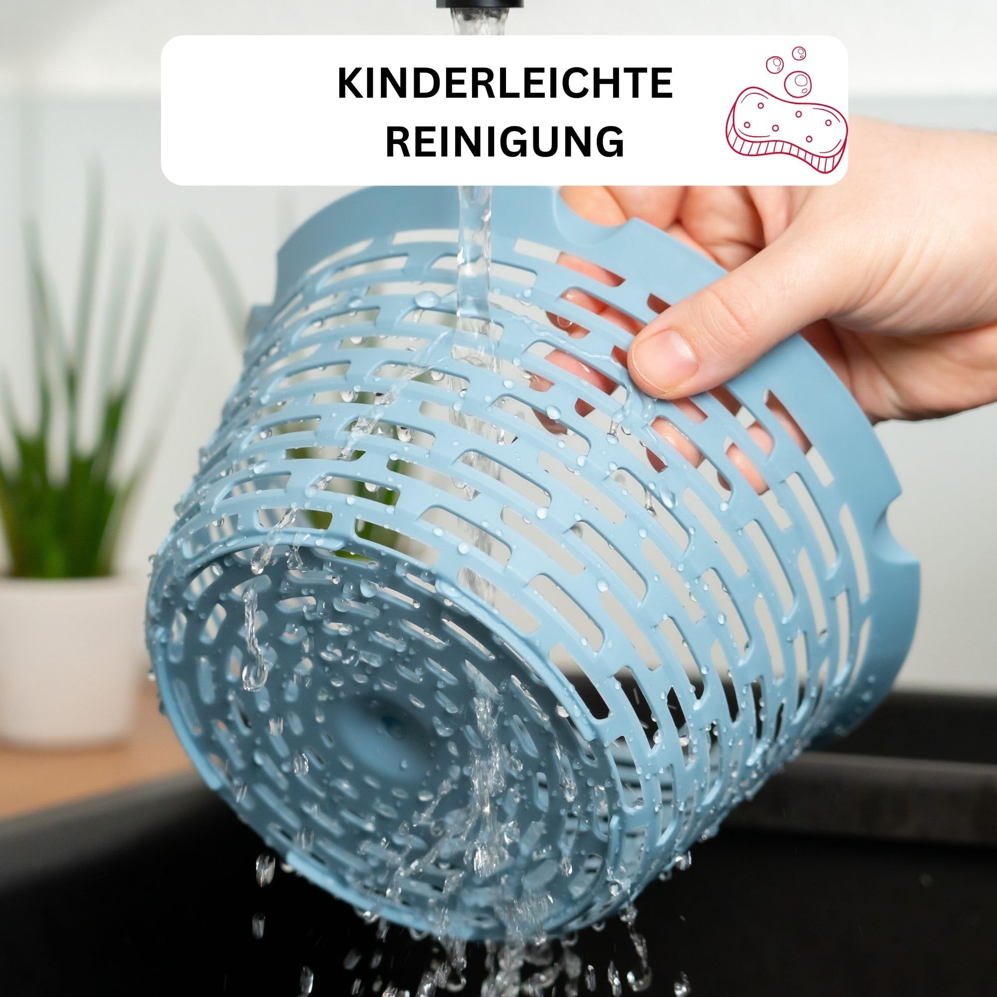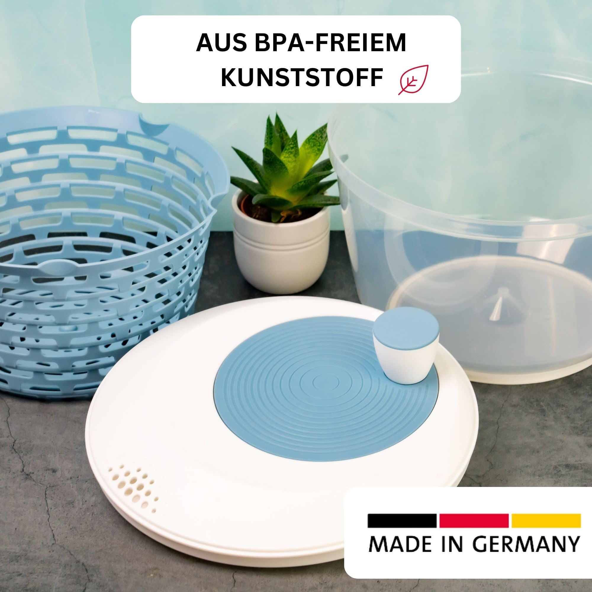 Westmark Salatschleuder, Fassungsvermögen: 4,4 Liter, ø 23,5 cm, Kunststoff, BPA-frei, Spinderella, Farbe: Transparent/Weiss/Blau, 2430226B