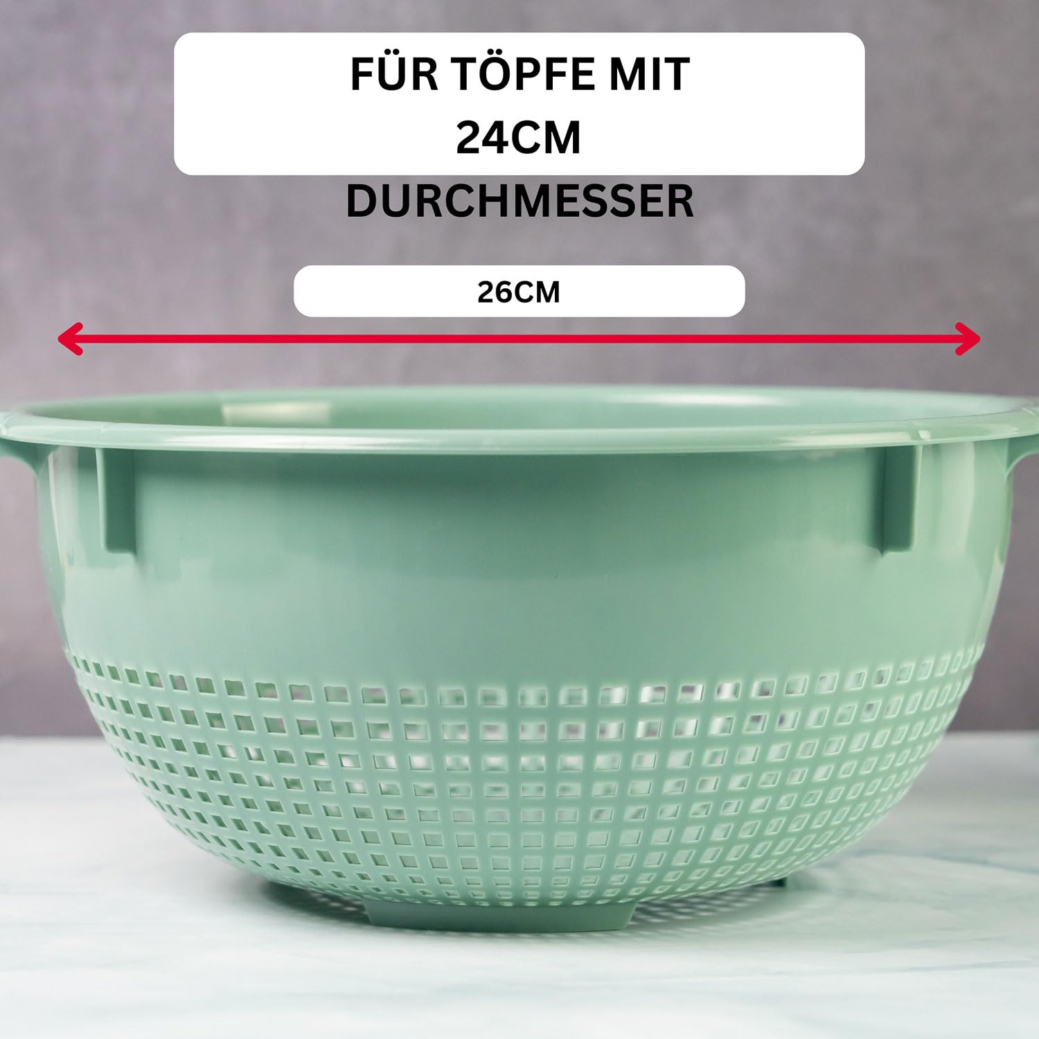Abgiessen mit Westmark – Seiher Unser funktionaler Seiher gehört in jede Küche! Die zwei Griffmulden sorgen für eine sichere Handhabung und die 4 Aufsatzrasten ermöglichen einen festen Sitz auf Töpfen mit einem Durchmesser von 24 cm. So bleibt viel Platz zum Abtropfen. Nach Gebrauch kann der Seiher mühelos von Hand oder in der Spülmaschine gereinigt werden.Westmark – Qualität & Tradition seit über 60 Jahren. Als deutscher Hersteller steht Westmark für langlebige, funktionale und hochwertige Küchenhelfer, die den Alltag erleichtern.
