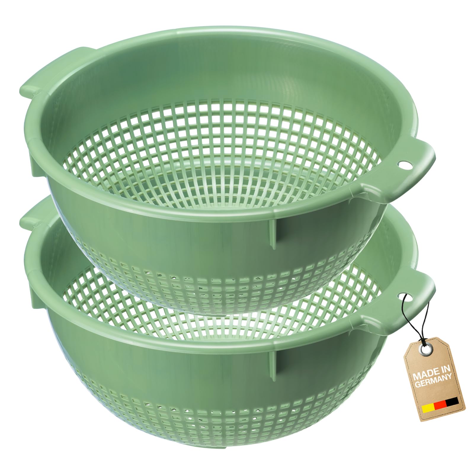 Westmark Seiher – Zwei grosse Küchensiebe mit 2 Griffmulden und 4 Aufsatzrasten zum Waschen von Gemüse und Abtropfen von Nudeln und mehr – Mint-grün, Kunststoff, ø 24 cm, 212622EM