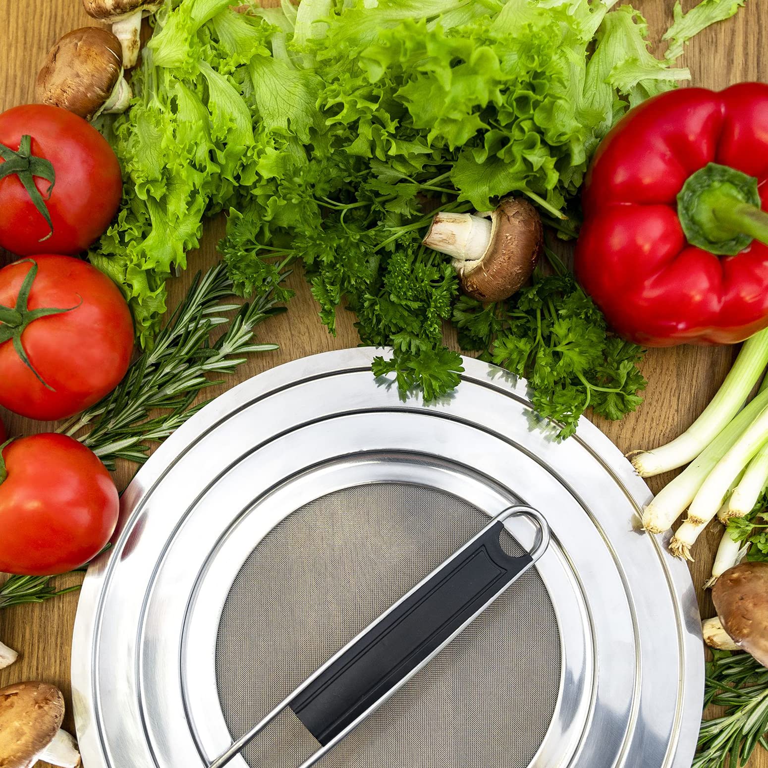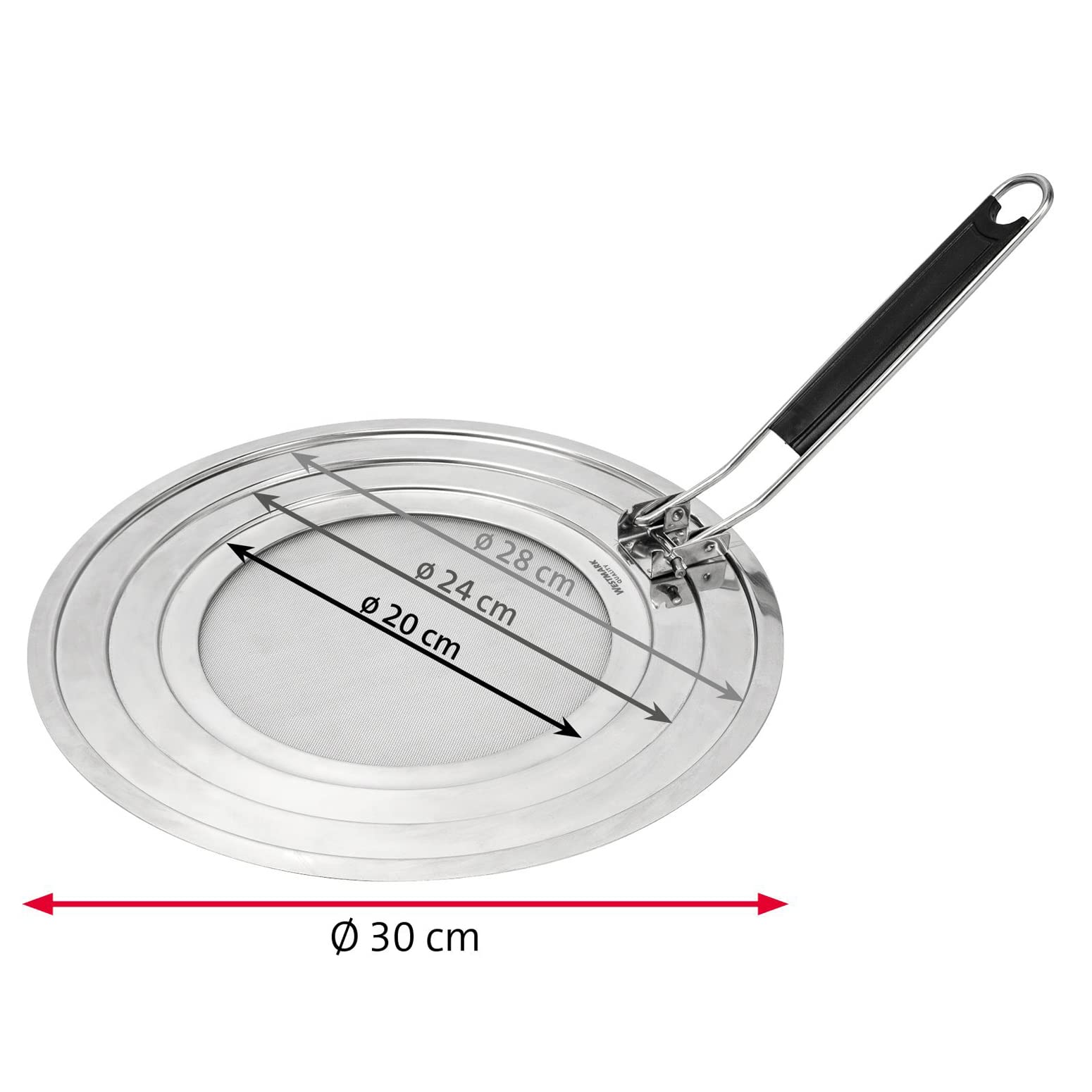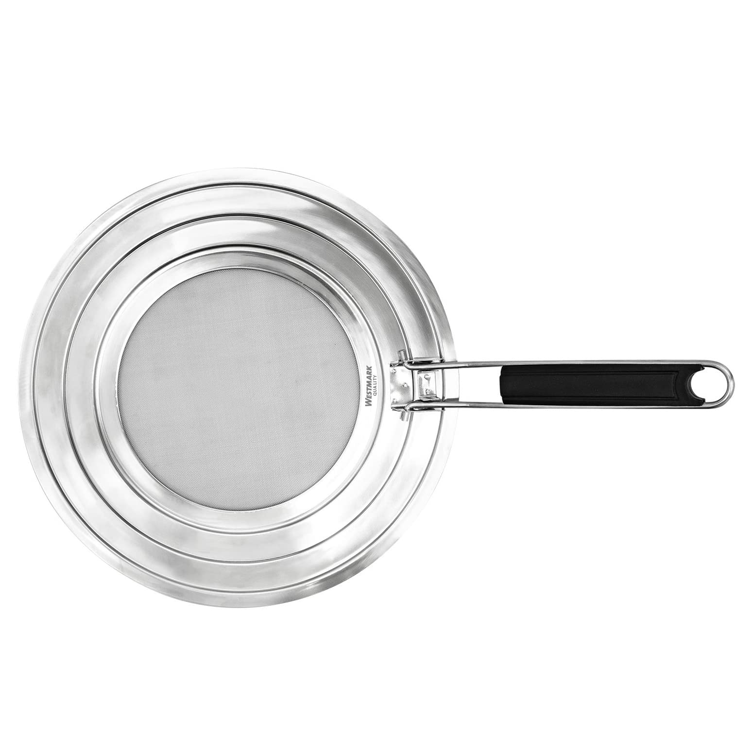 Westmark Spritzschutz, Für Töpfe und Pfannen mit Ø 20, 24 und 28 cm, Hitzeisolierter Griff, Rostfreier Edelstahl, Exclusiv, Silber/Schwarz, 12192270