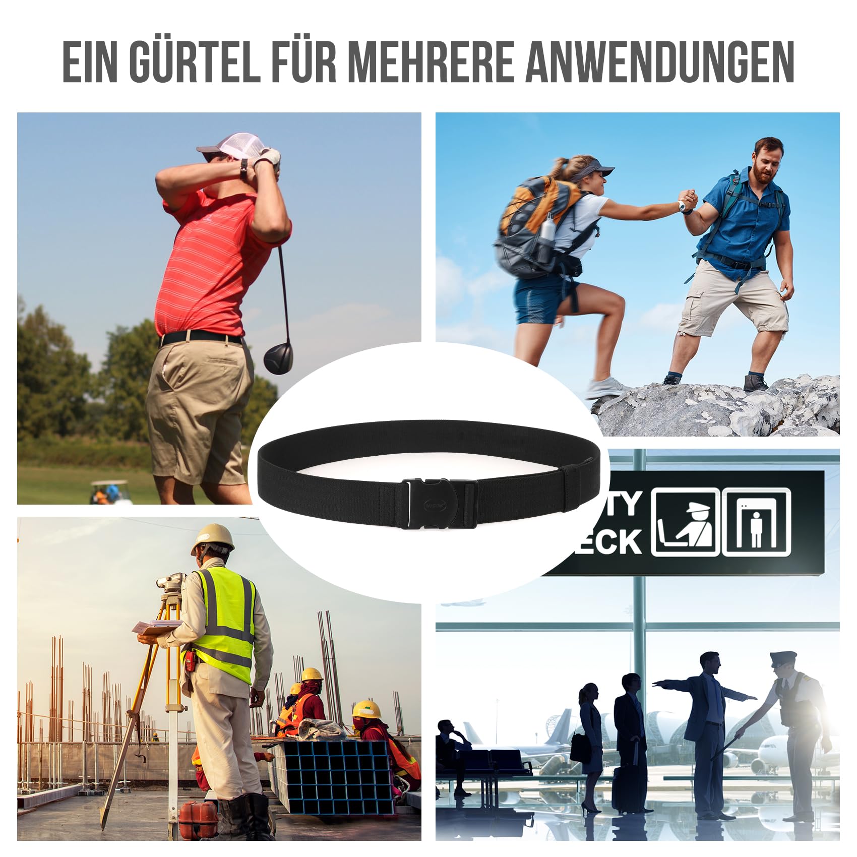 WHIPPY Elastischer Gürtel Herren Verstellbarer Outdoor Stretchgürtel Unisex Arbeitsgürtel für Damen Herren Stoffgürtel mit Kunststoffschnalle