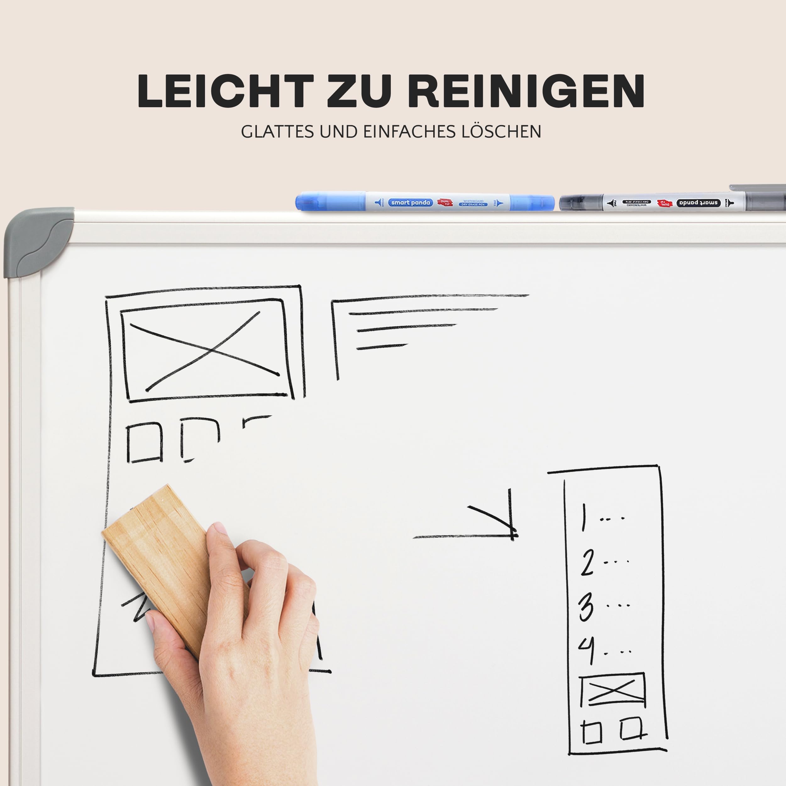 - WÄHREND ANDERE WHITEBOARD MARKER leicht austrocknen, verblasst aussehen und verfilzen – Ihre neuen SmartPanda White Board Stifte sind so konzipiert, dass sie einen steten Tintenfluss haben.
