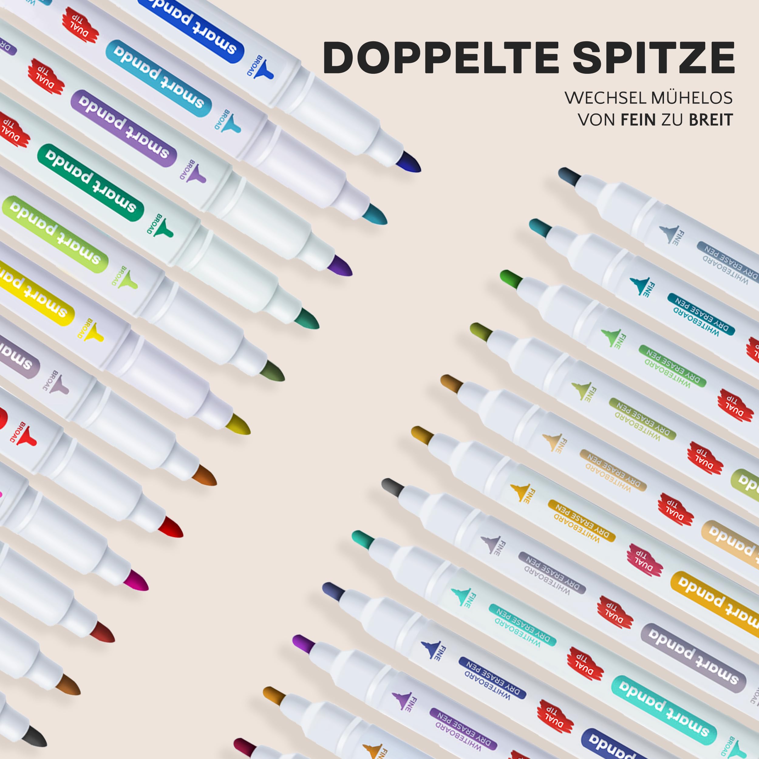 Whiteboard Marker von SmartPanda – Whiteboard Stifte, Folienstift Abwischbar - Doppelspitze, Medium und Fein – Abwischbare Stifte, non Permanent Marker, Whiteboardmarker – 24er Set