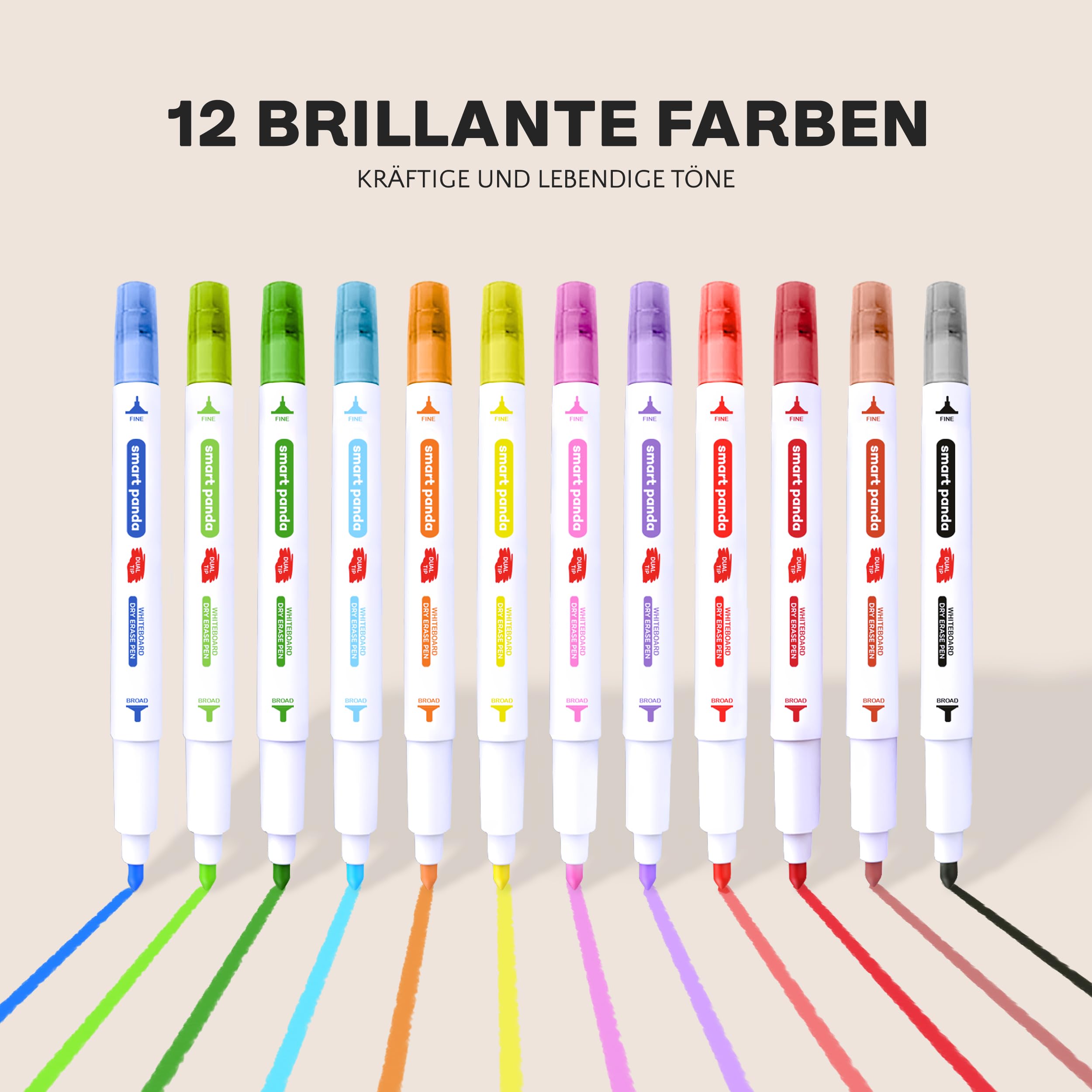 Whiteboard Marker von SmartPanda – Whiteboard Stifte, Folienstift Abwischbar - Doppelspitze, Breite und Feine – Abwischbare Stifte, non Permanent Marker, Whiteboardmarker – 12er Set