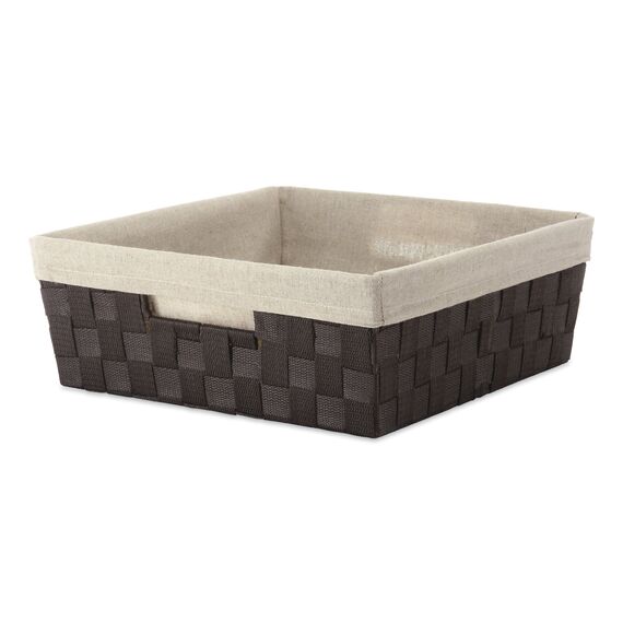 Verbessere deine Organisation mit unserer gewebten Whitmor Regaltasche, eine vielseitige Aufbewahrungslösung, die perfekt für jeden Raum ist. Dieser Korb in Espresso-Farbe verfügt über eine robuste, handgewebte Polypropylen-Umreifung mit einem Metallrahmen, der eine solide Konstruktion und einfachen Transport mit seinen integrierten Griffen gewährleistet. Masse: 33,7 cm tief, 16,5 cm breit und 11,4 cm hoch. Ideal für die Aufbewahrung von Kleidung, Bade- und Schönheitsprodukten, Spielzeug, Schulbedarf und mehr. Das herausnehmbare Polyester-Leinen-Innenfutter in Kontrastfarbe verleiht eine stilvolle Note und macht die Reinigung zum Kinderspiel. Einfach mit einem feuchten Tuch abwischen, um sein neues Aussehen für die kommenden Jahre zu erhalten. Ob du ihn in Schränken, Aufbewahrungswürfeln oder in einem Regal verstaust, dieser Whitmor Korb bringt Ordnung in dein Zuhause oder Büro.