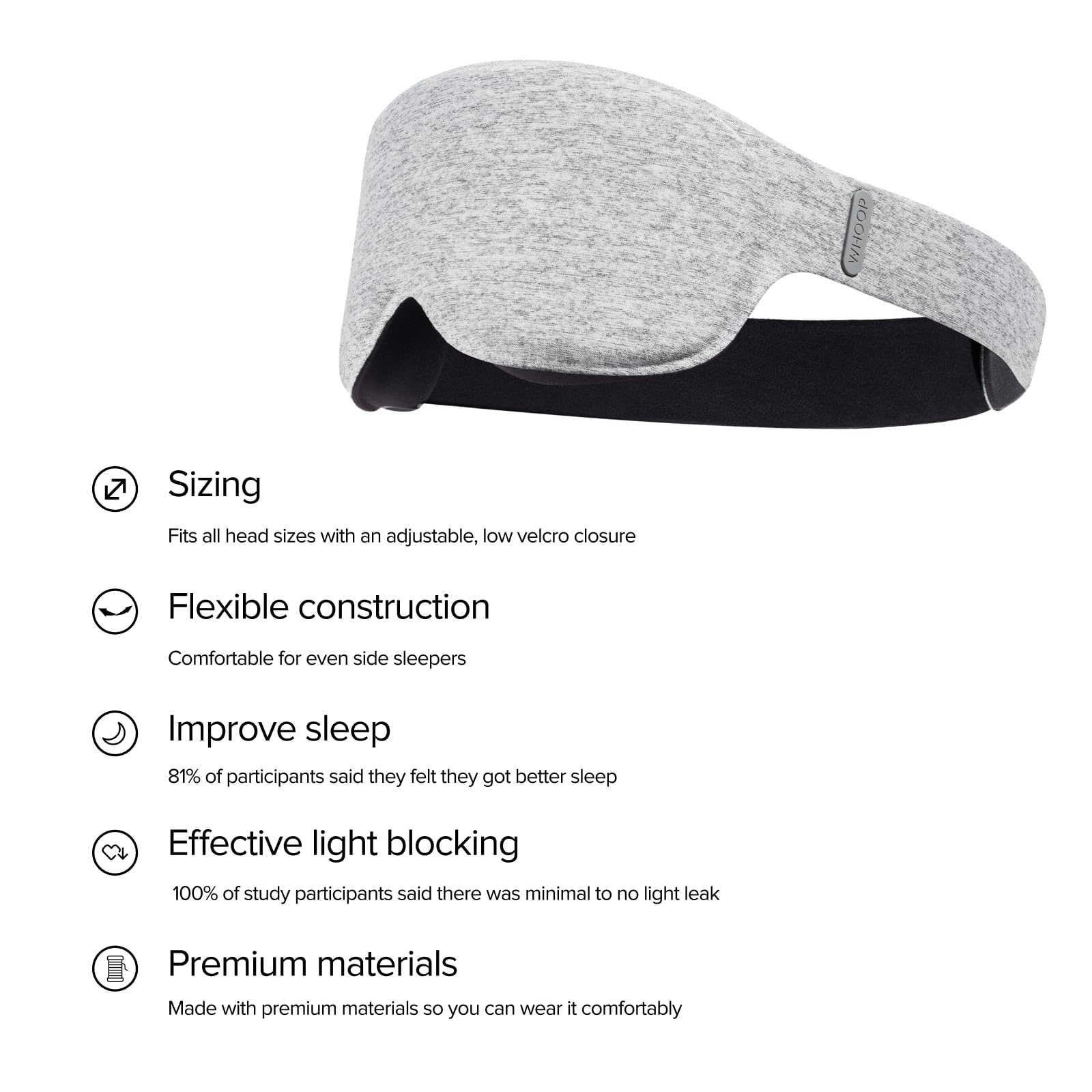 Whoop Erholsame Schlafmaske, ultrabequem für Seitenschläfer, entwickelt zur Förderung erholsamen Schlafs und der Regeneration, blockiert Licht für längeren und besseren Schlaf