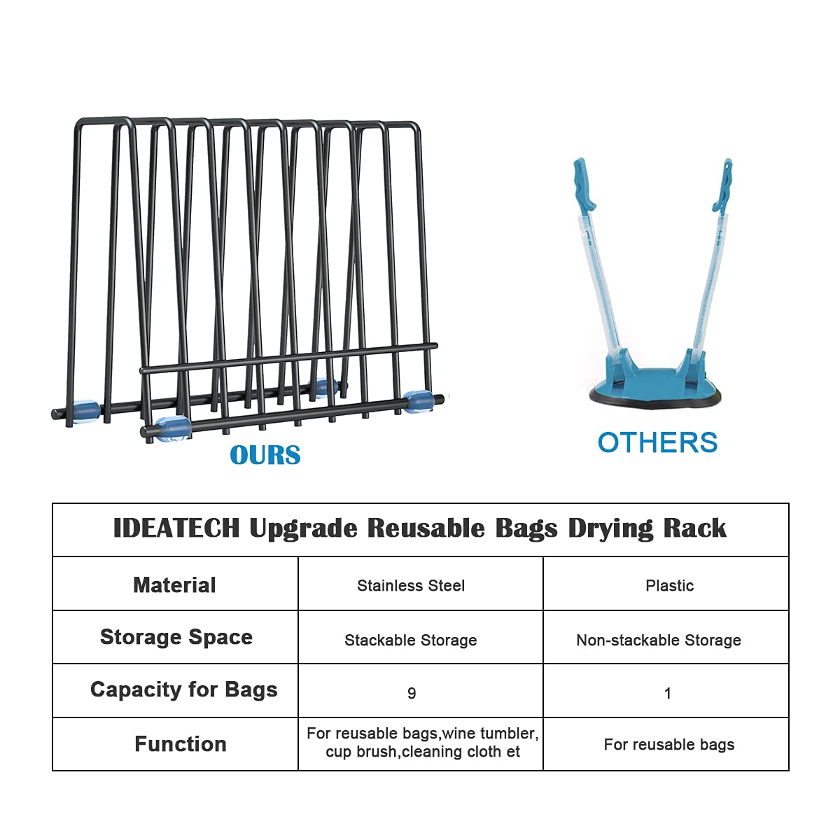 Wiederverwendbare Aufbewahrungstaschen, Edelstahl-Ständer für wiederverwendbare Aufbewahrungstaschen, Trockengestell-Halter für wiederverwendbare Taschen, Bücher, Make-up-Pinsel (schwarz)