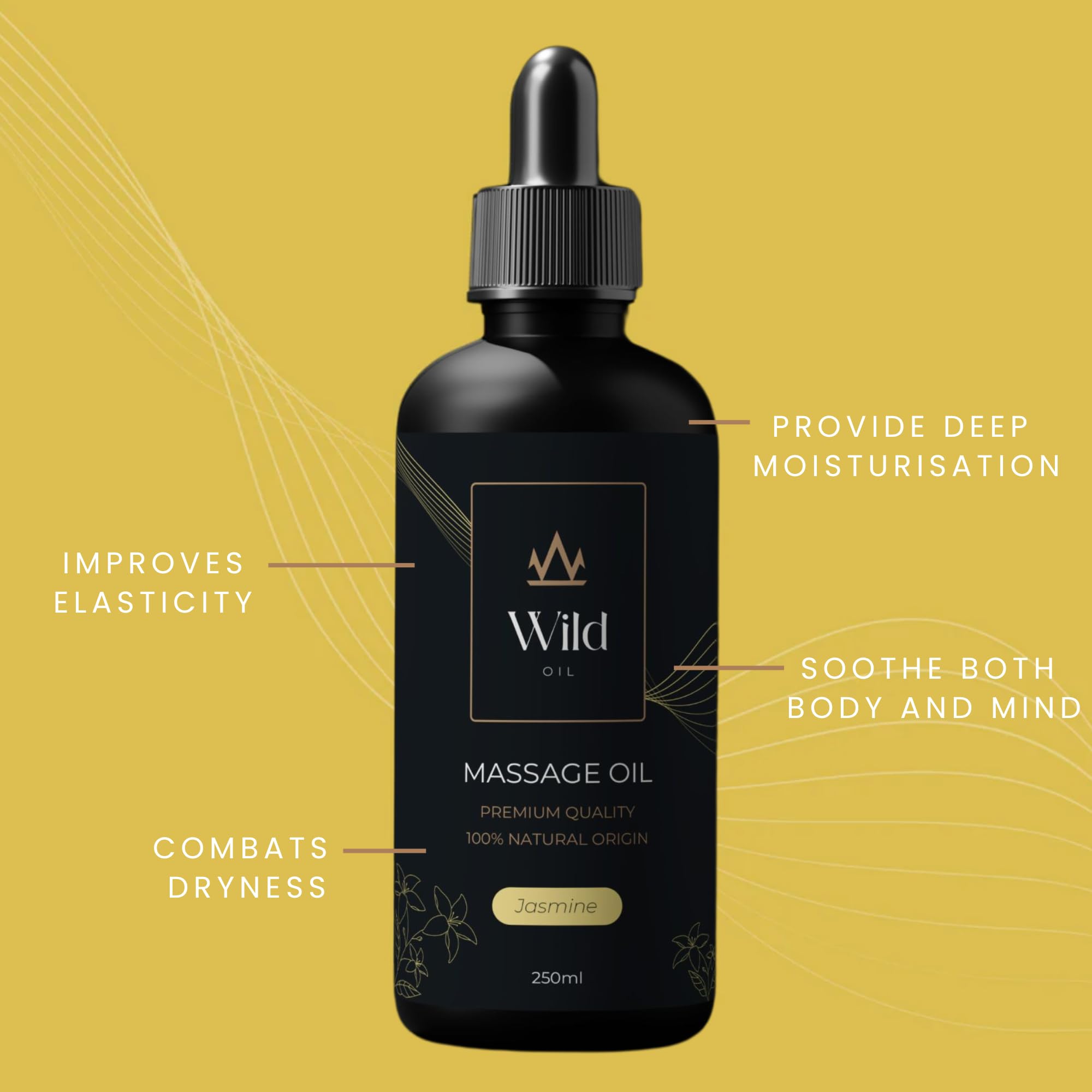 Wild Natürliches Massageöl – Feuchtigkeitsspendend & Trägeröl, Vegan & Hypoallergen, für Körperpflege, Muskelbehandlung & Aromatherapie, ideal nach dem Bad - 250ml