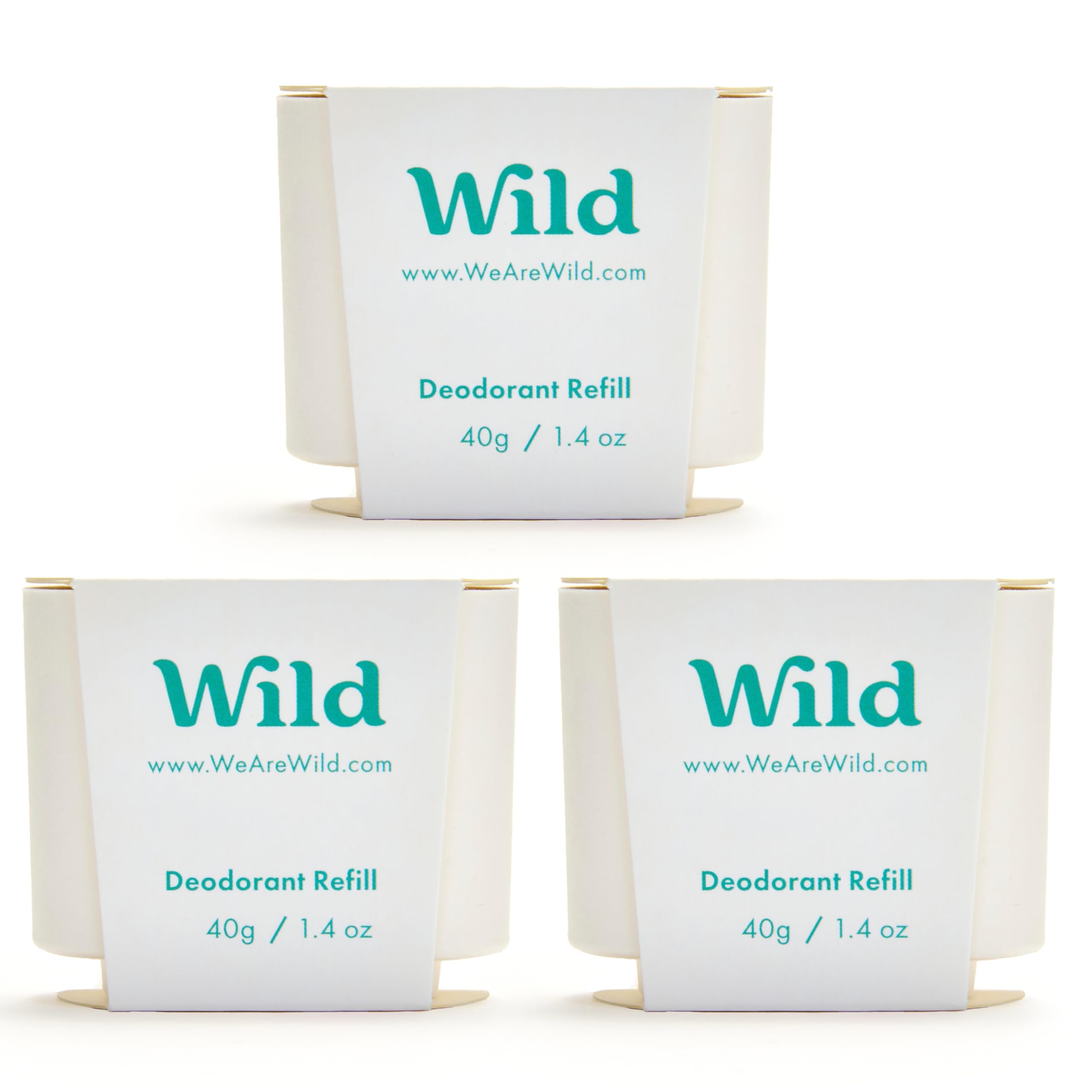 Wild Natürliches Nachfüllbares Deo – Fresh Cotton & Sea Salt, 3er-Pack – Vegan, Aluminiumsalzfrei, Umweltfreundlich