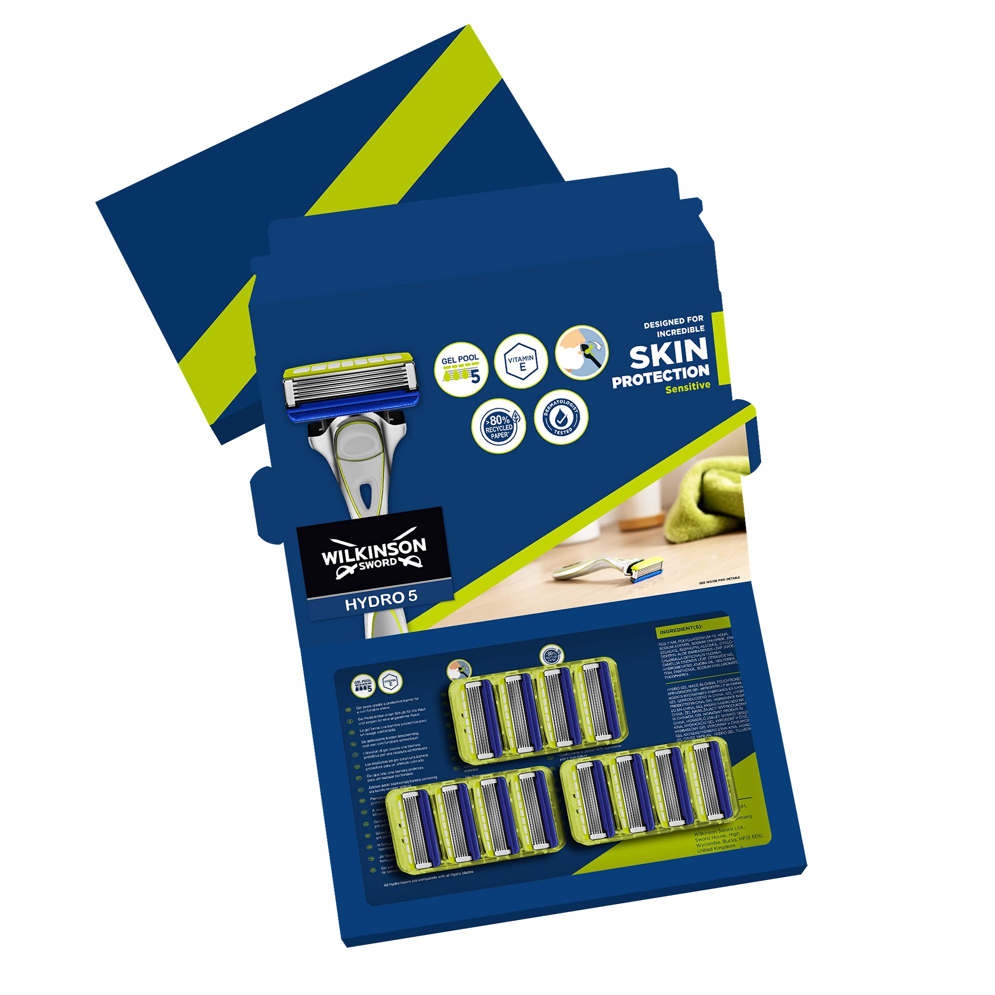 WILKINSON SWORD - Hydro 5 Rasierklingen für Männer | Feuchtigkeitsspendendes Gel und umklappbarer Trimmer | Packung mit 12 Rasierklingen