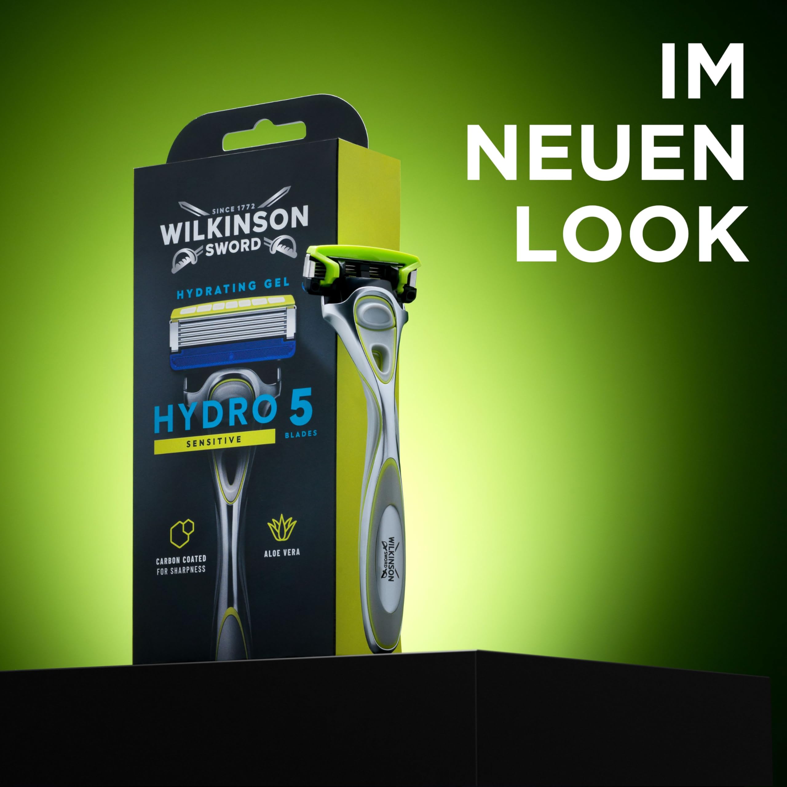 Wilkinson Sword - Hydro 5 Sensitive Rasierer für Männer, Rasiergriff + 4 Rasierklingen, Feuchtigkeitsspendende Gel-Pools und Hautschutzbügel