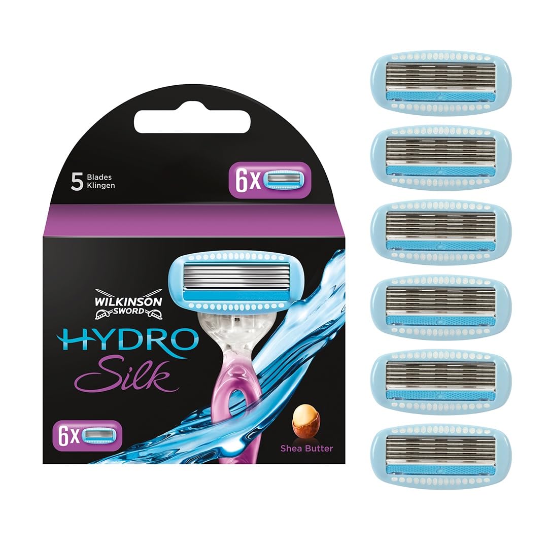 Spendet Ihrer Haut Feuchtigkeit wie kein anderer Rasierer. Wir stellen den neuen Wilkinson Sword Hydro Seidenrasierer vor: der Rasierer, der die Haut nach der Rasur bis zu zwei Stunden lang mit Feuchtigkeit versorgt und Ihnen gleichzeitig eine unglaublich gründliche Rasur bietet. Wir alle lieben das Gefühl seidig glatter Beine und das innere Selbstvertrauen, das eine tolle Rasur liefern kann, aber was wäre, wenn Ihr Rasierer darüber hinausgehen und Ihre Haut tatsächlich hydratisieren und mit Feuchtigkeit versorgen könnte? Jetzt gibt es keinen Grund zum Wunder dank des neuen Hydro Seidenrasierers von Wilkinson Sword, der die Haut nach der Rasur bis zu zwei Stunden lang mit Feuchtigkeit versorgt - länger als jeder andere Rasierer auf dem Markt*. Nach sieben Jahren umfangreicher Forschung und Entwicklung mit Tausenden von Verbrauchern ist Wilkinson Sword stolz darauf, einen frischen Ansatz für Damenrasierer zu enthüllen. Der Wilkinson Sword Hydro Seidenrasierer kombiniert unsere fortschrittlichste Technologie, um eine unglaublich gründliche Rasur zu geben und gleichzeitig Feuchtigkeit aufzufüllen, sodass Ihre Haut so glatt wie Seide bleibt. Der Wilkinson Sword Hydro Seidenrasierer wurde speziell für Frauen entwickelt und bietet fünf technologische Durchbrüche: wasseraktiviertes Feuchtigkeitsserum, der einzige Rasierer mit einem einzigartigen Serum mit Meeresextrakten und Sheabutter, das bei Kontakt mit Wasser aktiviert wird und dabei hilft, die natürliche Feuchtigkeit der Haut bei jedem Schlag wieder aufzufüllen. Darüber hinaus bietet es bis zu zwei Stunden nach der Rasur feuchtigkeitsspendende Vorteile, für eine völlig gesund aussehende und strahlende Haut. 5 curve-sensing blades Wilkinson Sword first five-bladed female razor delivers the closest shave yet. Die Fünf-Klingen-Kombination ist so konzipiert, dass sie sich natürlich an Frauenkurven anpasst, da jede der Klingen einzeln aufgehängt ist. Die Klingenspitzen wurden entwickelt, um das Zuggefühl des Haares zu reduzieren, was Ihnen eine angenehme Rasur bietet, die die Haut unwiderstehlich glatt macht. Einzigartige Hautschützer Die einzigartigen Hautschützer wirken in Kombination mit den 5 Curve-Sensing-Klingen, um Hautirritationen zu reduzieren. Sie gleichen die Hautoberfläche aus, um zu verhindern, dass sie sich zwischen den Klingen verfängt, und bieten ein einzigartiges, super glattes Rasiererlebnis mit weniger Reizungen. Ovale Rasierkartusche Das unverwechselbare ovale Design des Wilkinson Sword Hydro Seidenrasierers ermöglicht es Ihnen, effizient um weibliche Kurven und Konturen mit Leichtigkeit zu manövrieren, während der kleine Kopf es einfach macht, um empfindliche Bereiche zu navigieren, die besondere Pflege und Aufmerksamkeit erfordern. Ergonomischer wässriger Griff: Der neue stilvolle Wilkinson Sword Hydro Silk Rasierergriff wurde ergonomisch für optimale Kontrolle entwickelt, sodass Sie Ihren Griff anpassen können, je nachdem, in welchem Bereich Sie sich rasieren. Das patentierte Design sorgt dafür, dass der Rasierer auf einer flachen Oberfläche platziert werden kann, ohne dass die Klingen ihn berühren – so bleiben Ihre Klingen geschützt und Ihr Badezimmer sauber. Der Mix aus bahnbrechender Technologie funktioniert in Kombination mit dem einzigartigen Rasierer-Design. Es liefert ein aussergewöhnliches Rasiererlebnis mit überraschenden Vorteilen, die Sie normalerweise nicht erwarten würden. Im Gegensatz zu anderen Rasierern pflegt es Ihre Haut, indem es die Feuchtigkeit auffüllt, die die Rasur wegnehmen kann, um Ihnen hydratisierte Haut zu hinterlassen, die sich gepflegt anfühlt. Inhaltsstoffe PEG-115M Titandioxid Algen Lauryl Methacrylat/Glycol Methacrylate Crosspolymer Butyrospermum Parkii (Shea) Butter