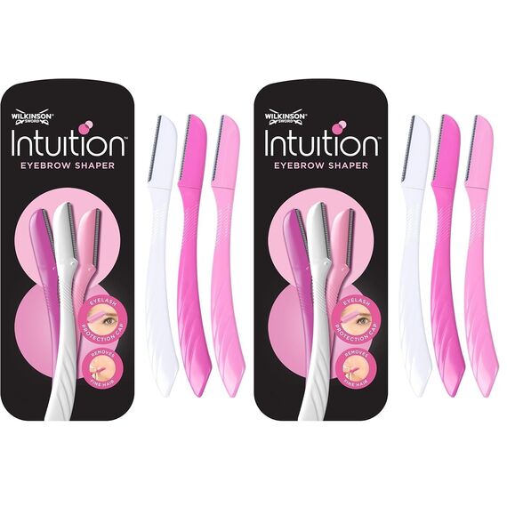 Wilkinson Sword - Intuition Augenbrauenformer für Frauen, 3 Rasierer, Gesichtshaarentferner und -trimmer, Peeling-Dermaplaning-Tool (Packung mit 2)