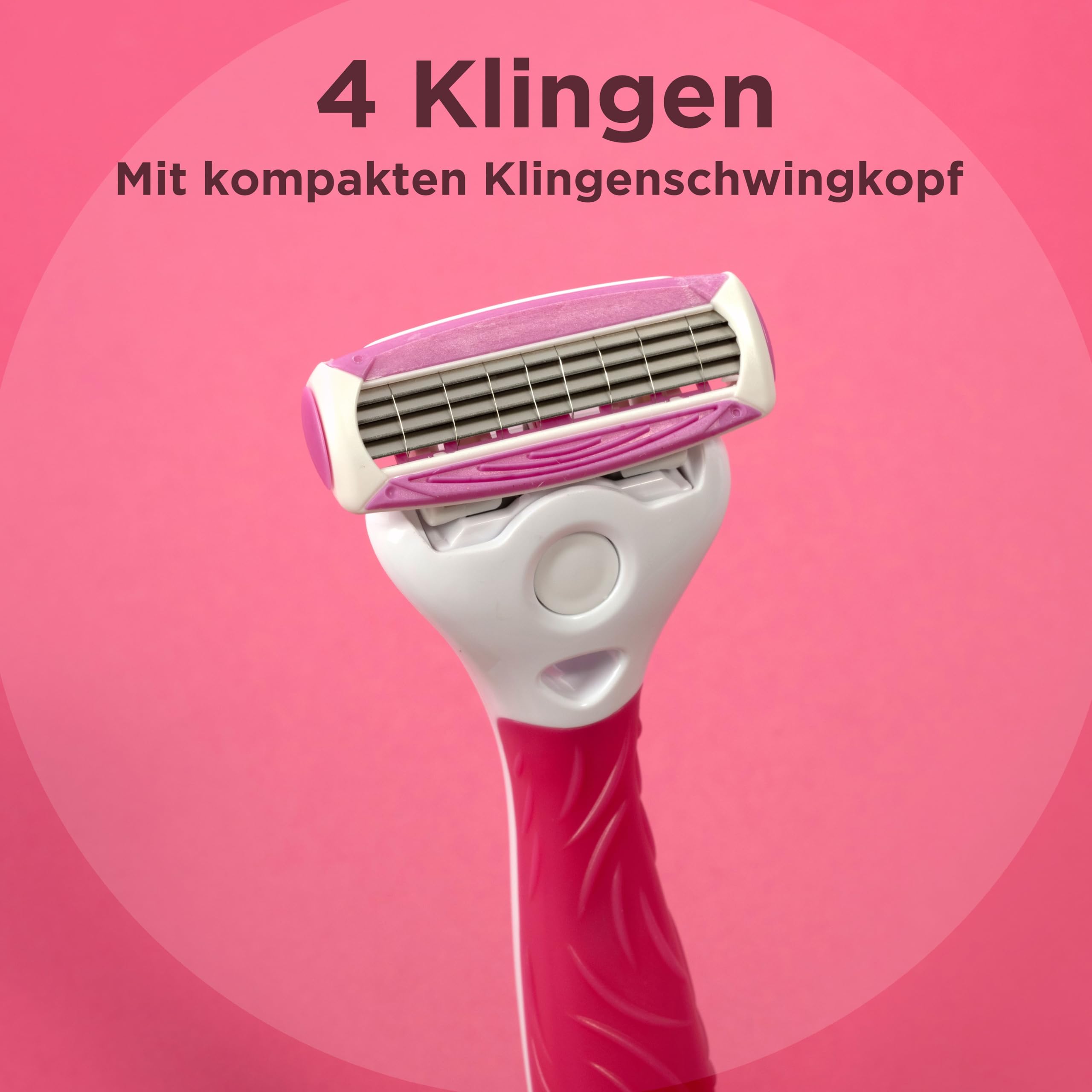 • 4 ultradünne Klingen für tagelang samtweiche Haut an Achseln, Beinen und im Bereich der Bikinizone.