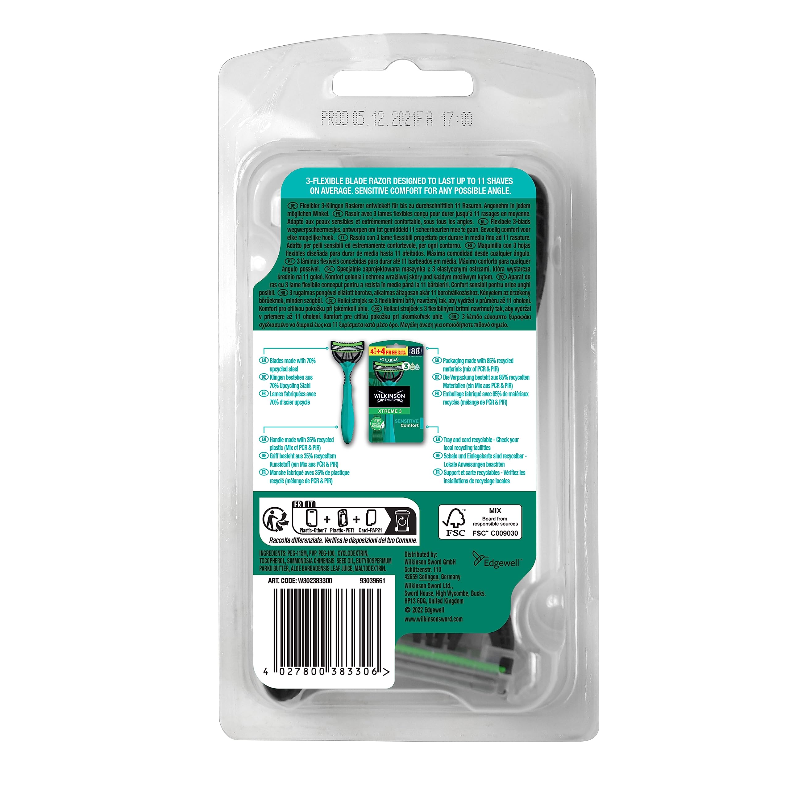 Wilkinson Sword Xtreme 3 Sensitive Einwegrasierer mit 3 weichen Klingen und Aloe Vera & Vitamin E Gleitstreifen 4 Stück