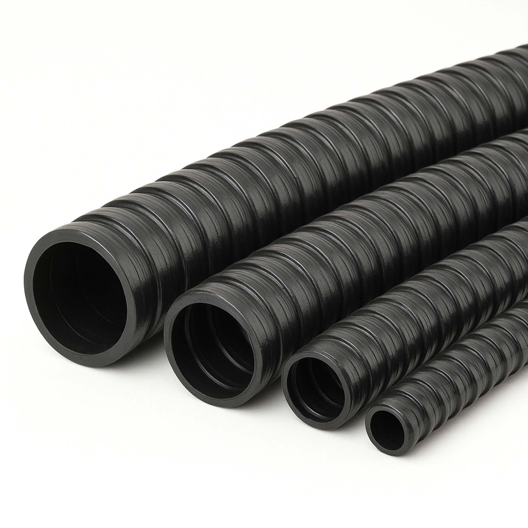 Der mit Spiralen verstärkte PVC-Schlauch ist extrem biegsam, knickt bei Verlegen um Ecken aber nicht ein. Die Innenwand ist glatt, Reibungsverluste/ Druckverluste werden verringert.