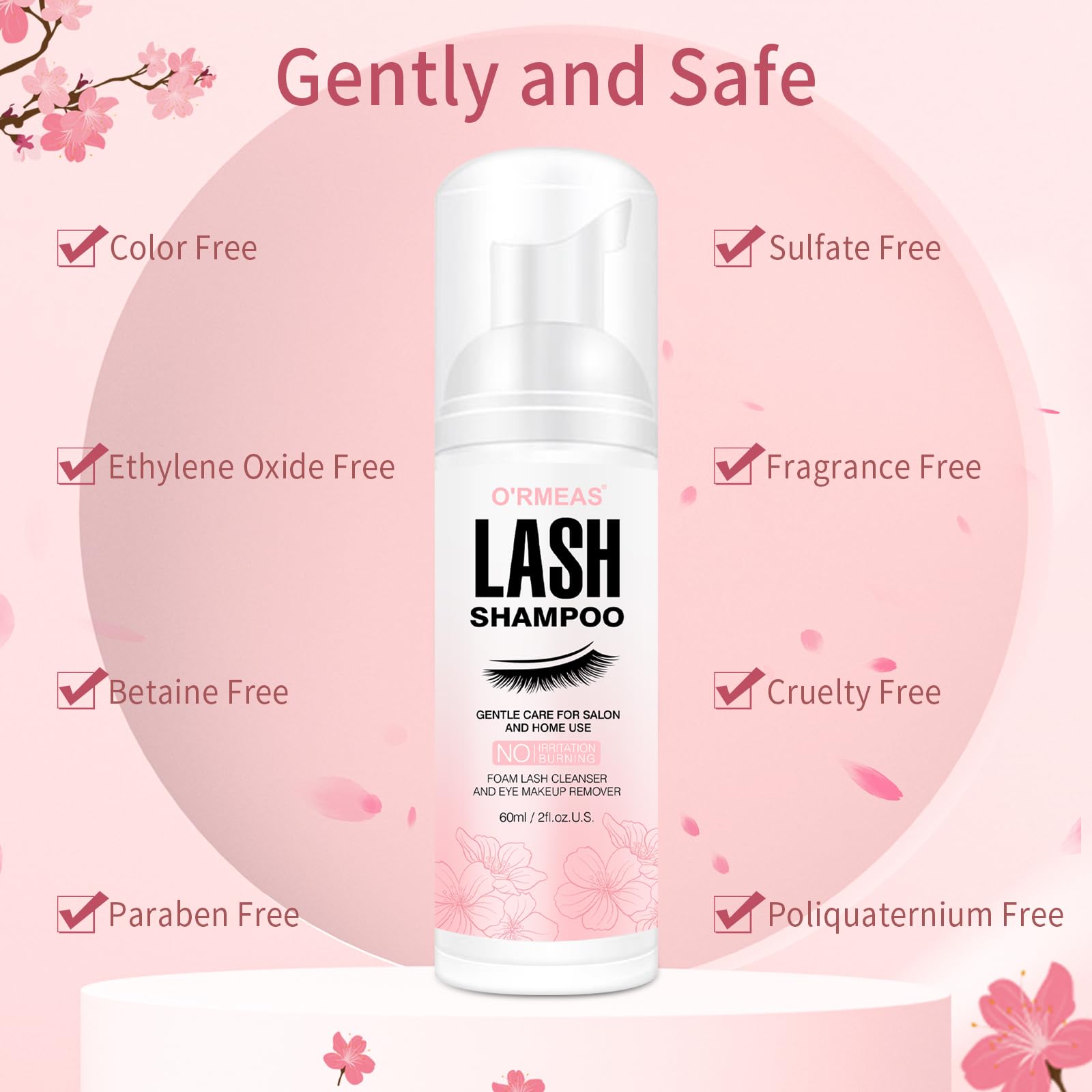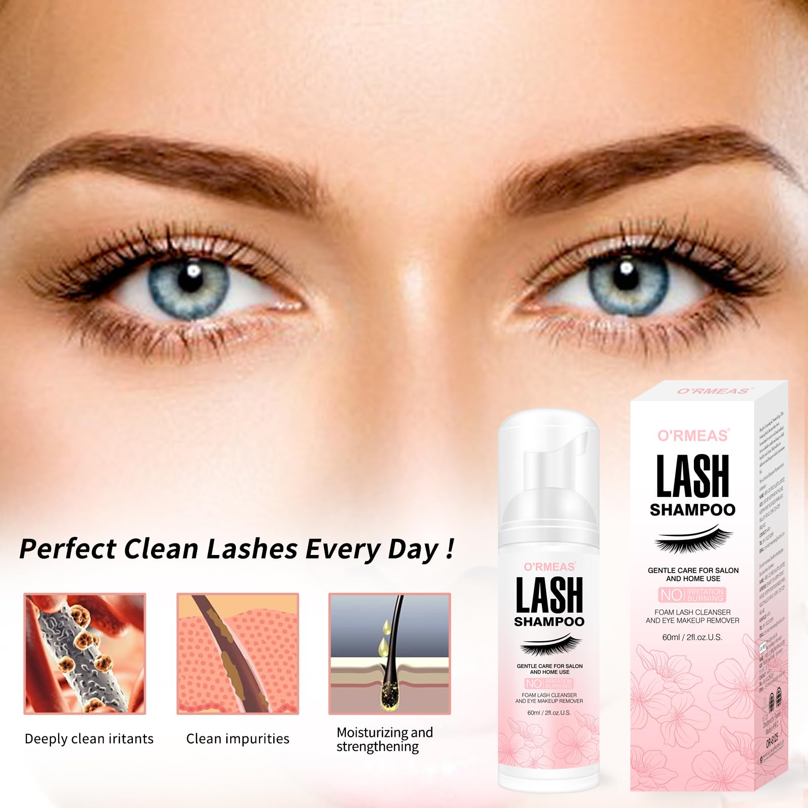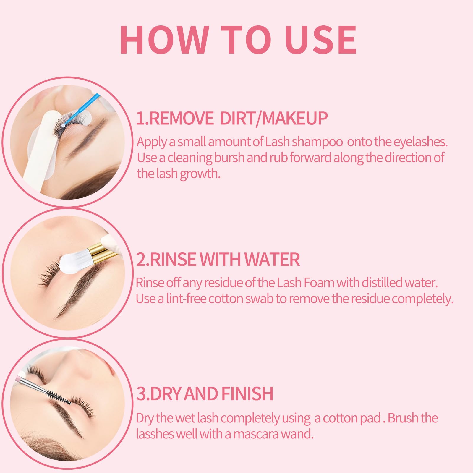 Wimpernshampoo Wimpernschaum Cleanser mit Reinigungsbürste Wimpernreiniger für Wimpernverlängerung Schaumwäsche zum Entfernen von Make-up-Rückständen Lash Shampoo 60ML