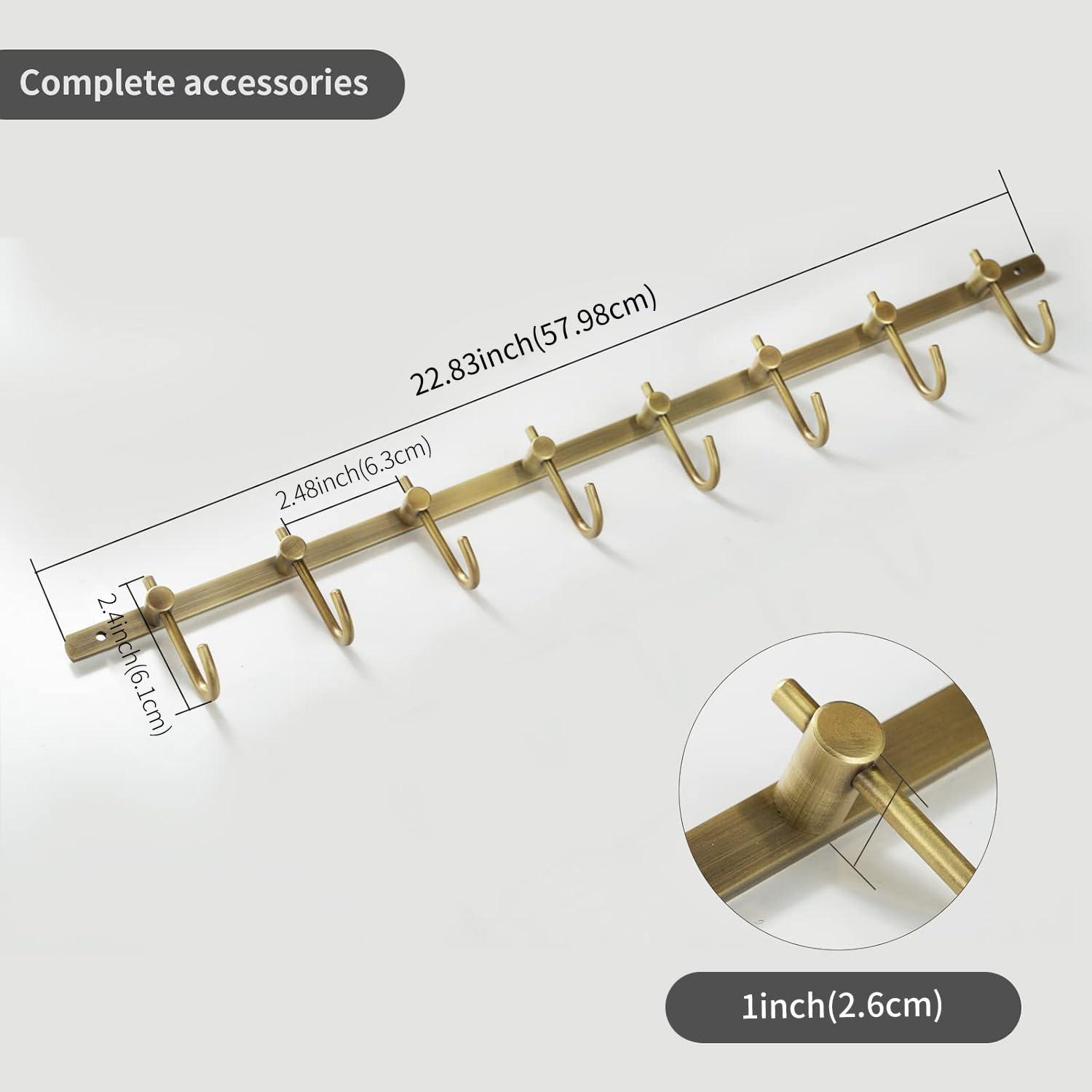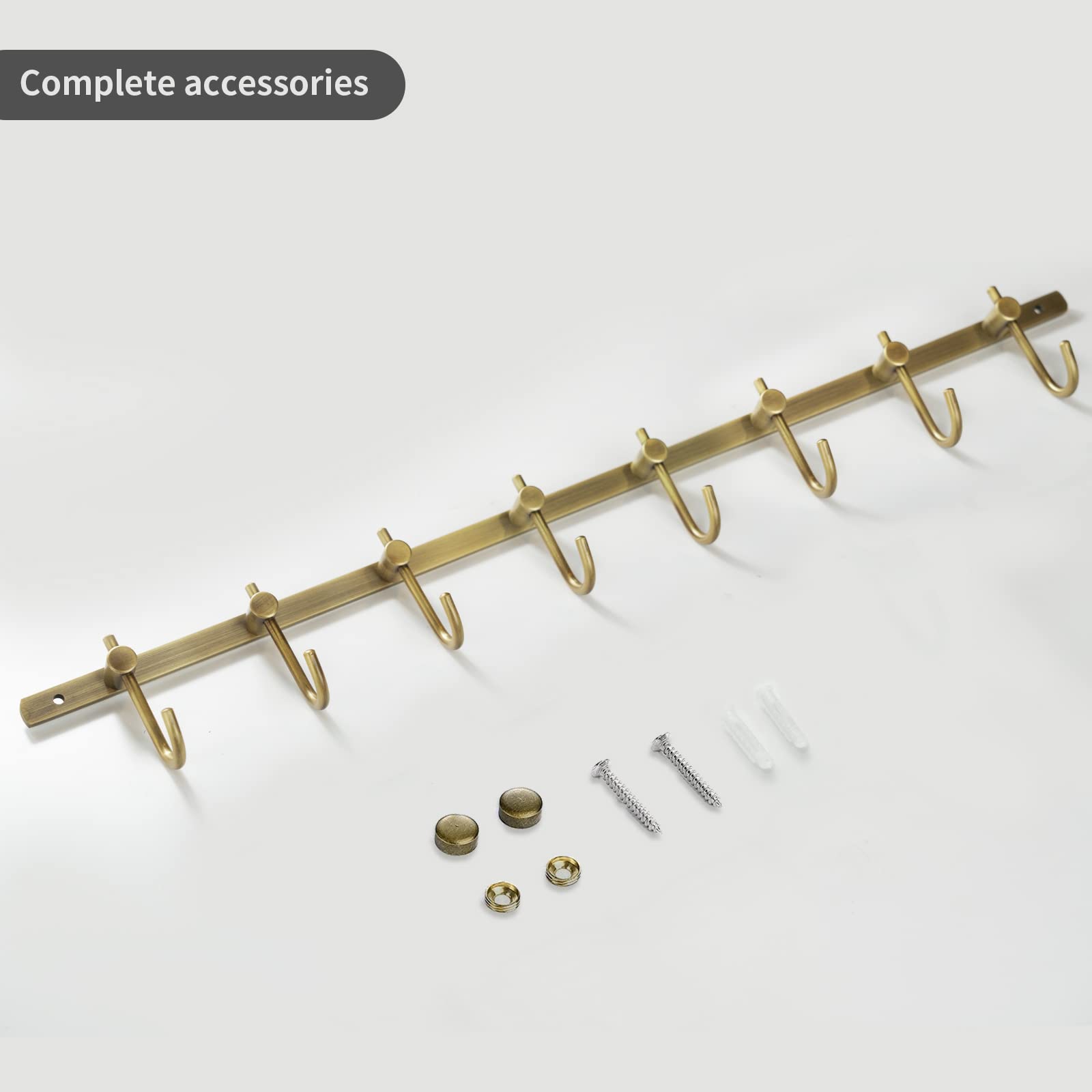Wincase Wandhaken aus Messing im Antik-Look, mit 8 Haken, Wandhaken im Vintage-Stil, gebürstetes Messing, Badezimmer-Reihenhaken, rustikale Handtücher, Mäntel