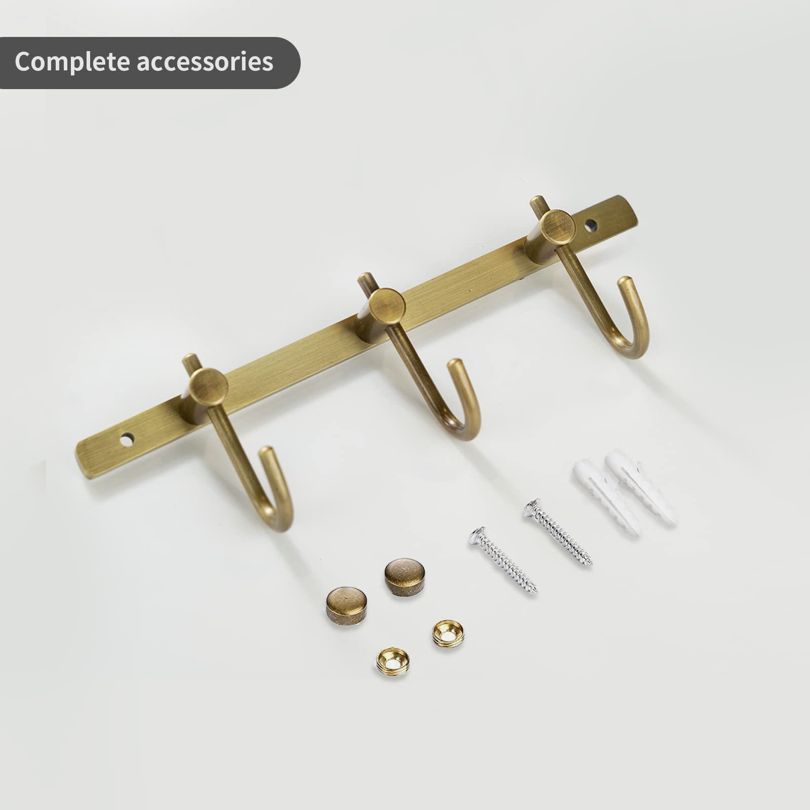 WINCASE Wand montiert Messing antik gebürstet Bronze Reihe Haken mit 3 Heavy Duty Europäischen klassischen Serie alle Kupfer Antik Rustikal klein von Fell Handtuch Rack Halter 3 Hooks