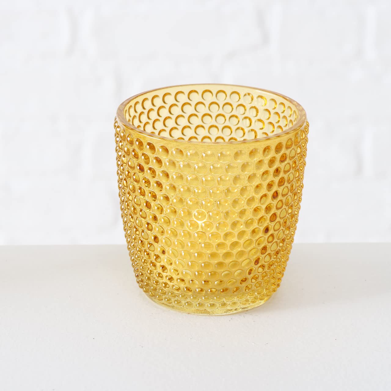 Boltze Windlicht Set Marilu 4-teilig (gelb, Deko-Gläser für Kerzen / Teelichter, Kerzenständer ø 8 cm, verschiedene Muster, Form rund, Teelichthalter) 2001878