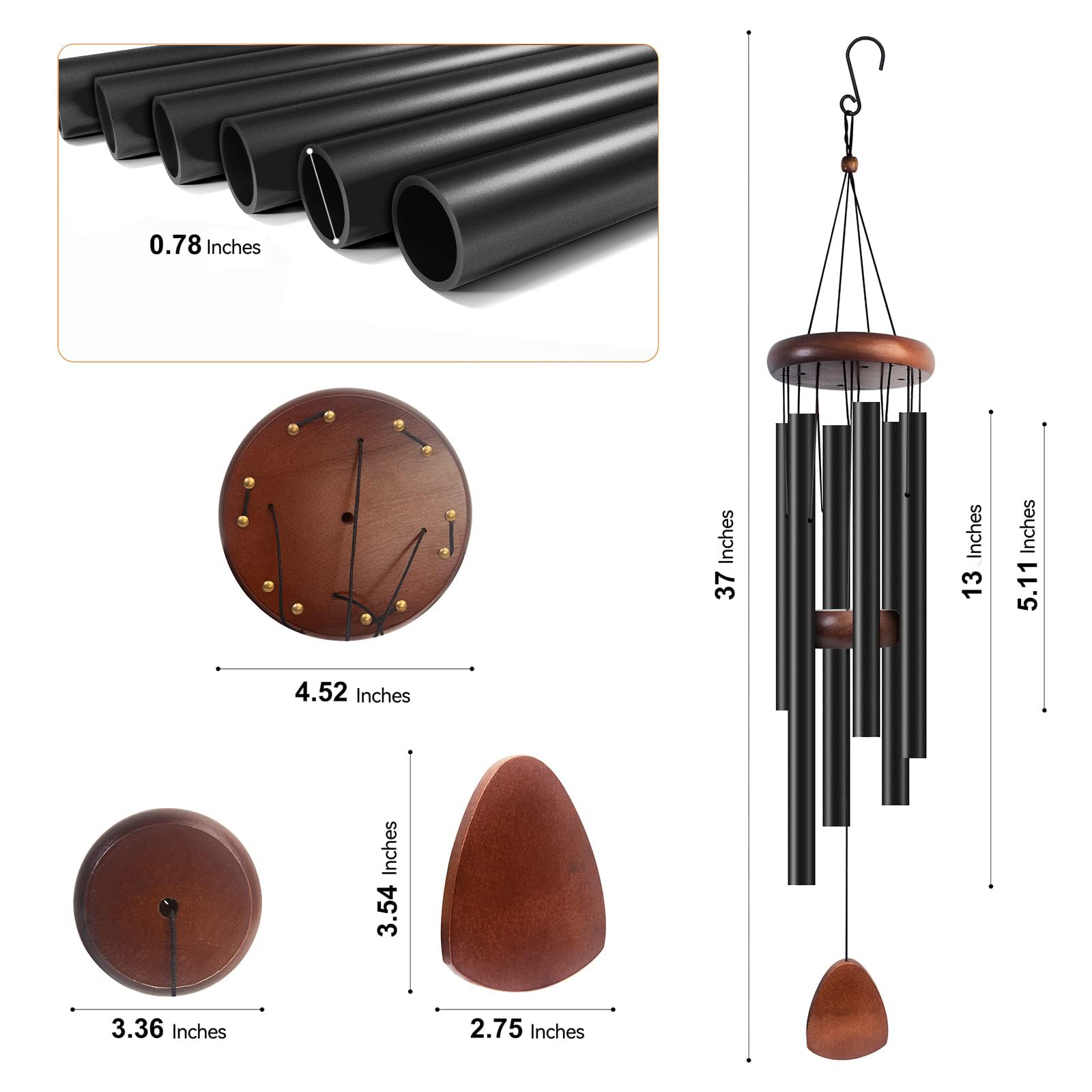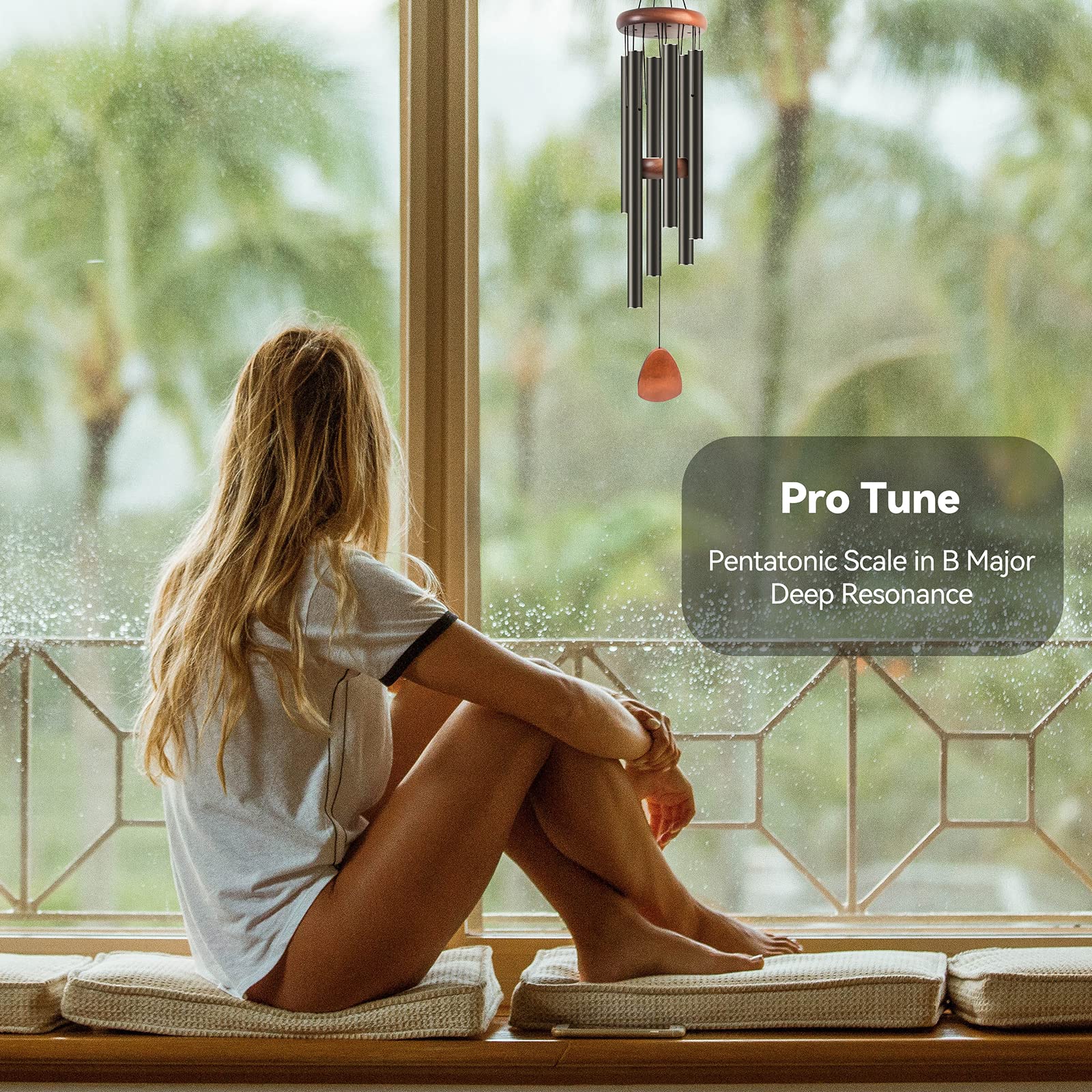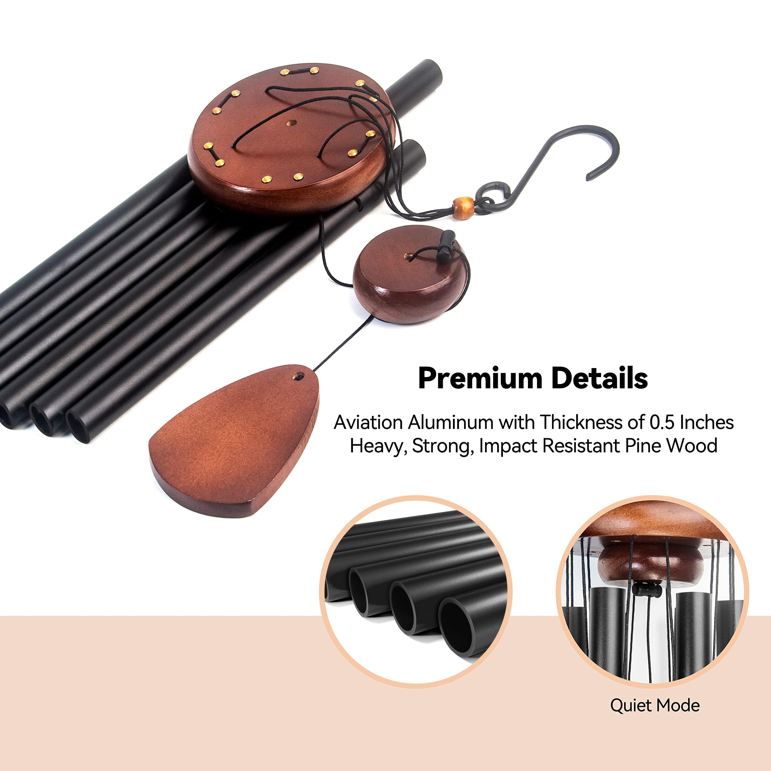 Windspiel für den Aussenbereich mit HolzWindfänger, 94 cm, grosses AluminiumWindspiel für den Aussenbereich für Terrassendekoration und ZenAtmosphäre, Familie und Verwandte