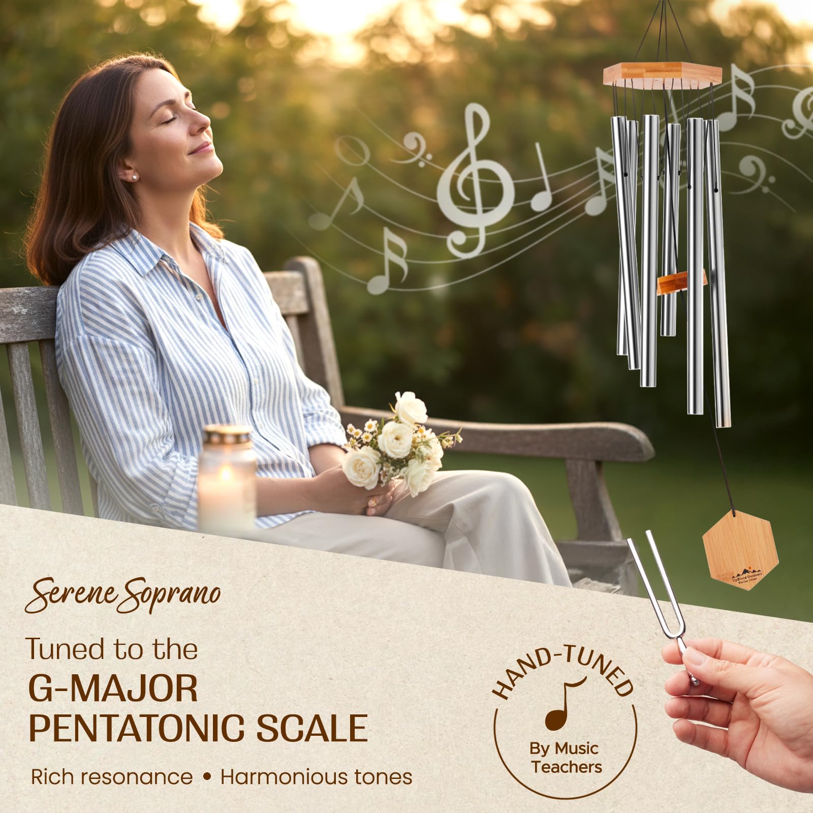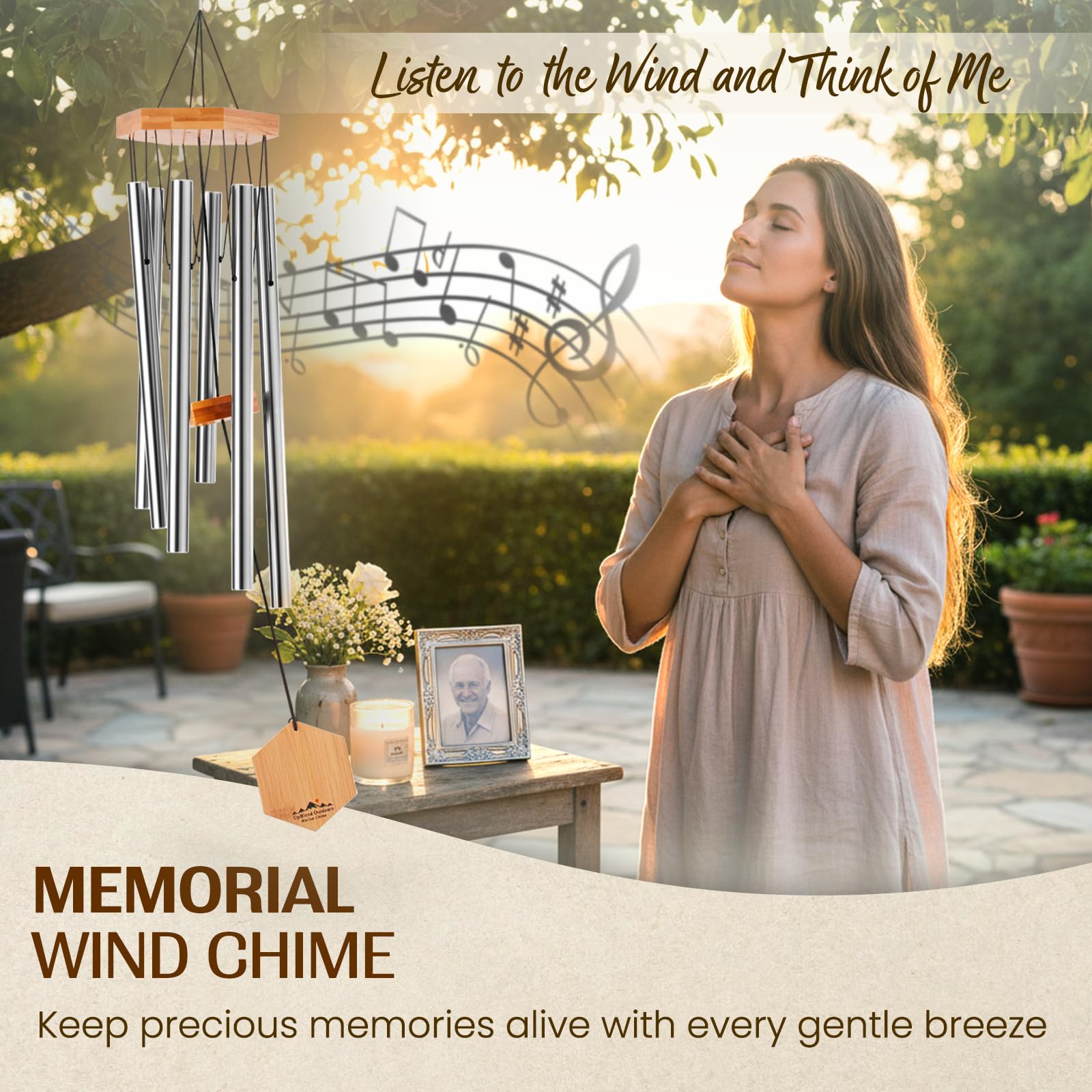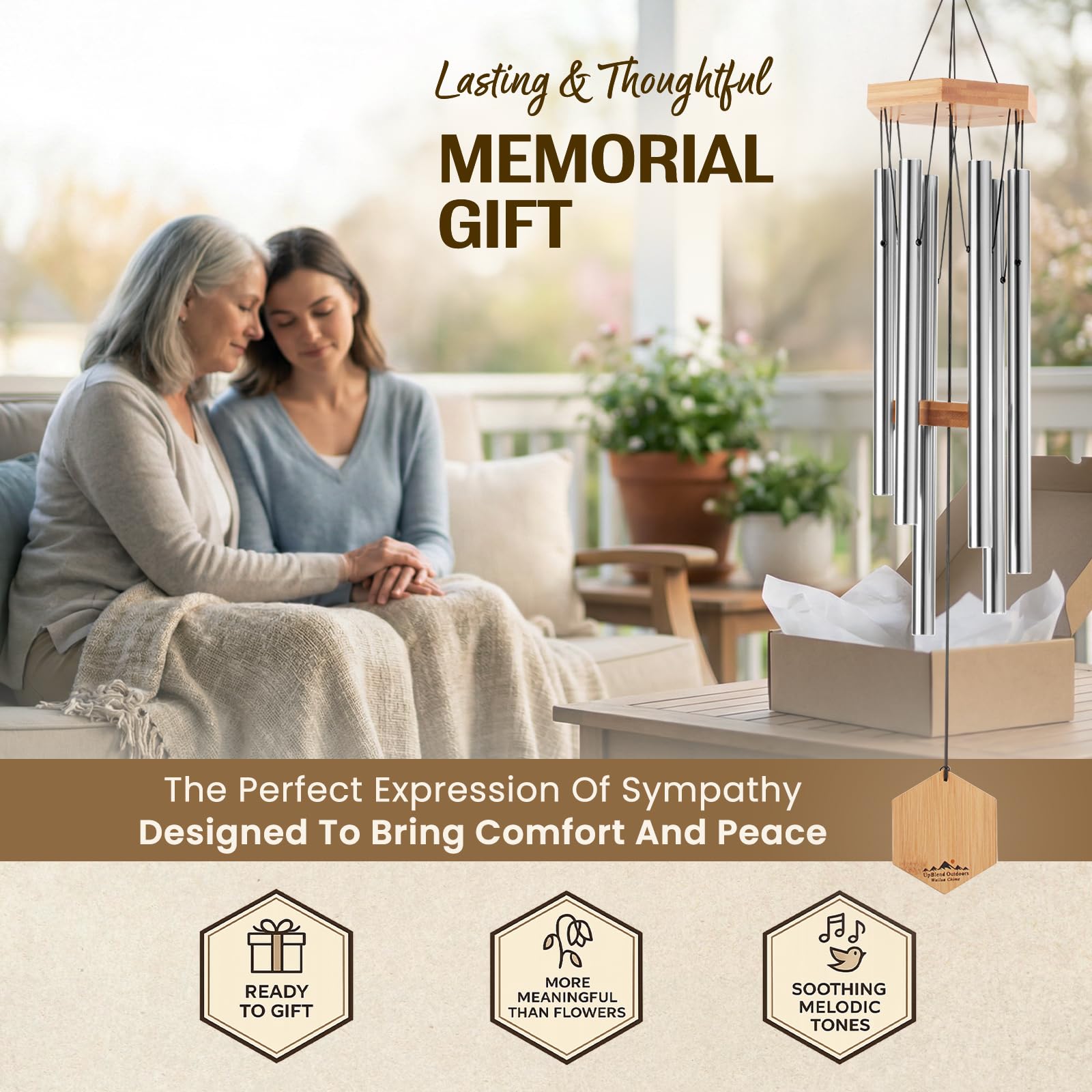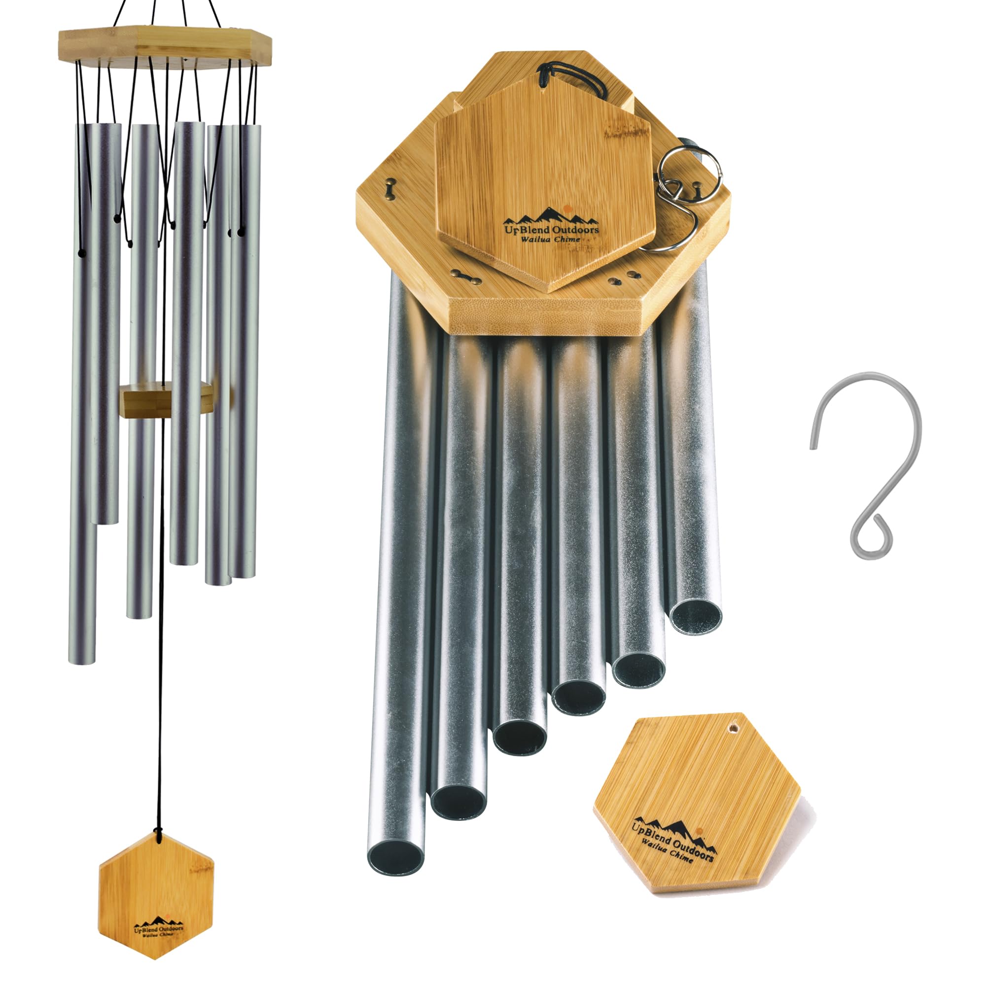 UpBlend Outdoors Premium-Windspiel für den Aussenbereich – Windspiele für den Aussenbereich, Garten, Terrasse, Windspiele im Freien, tiefer Ton, Geburtstagsgeschenkideen, für Frauen, 73.7 cm, Silber