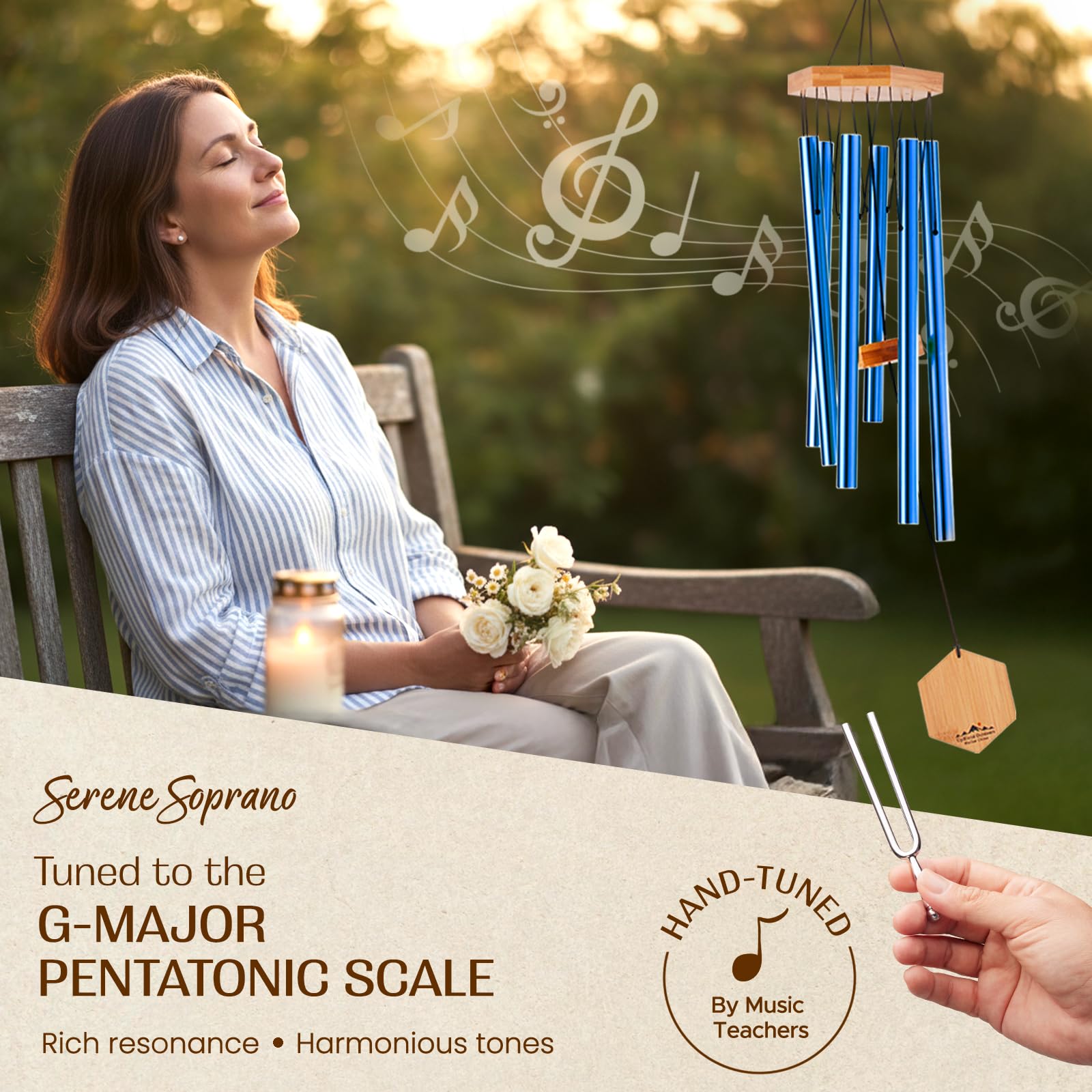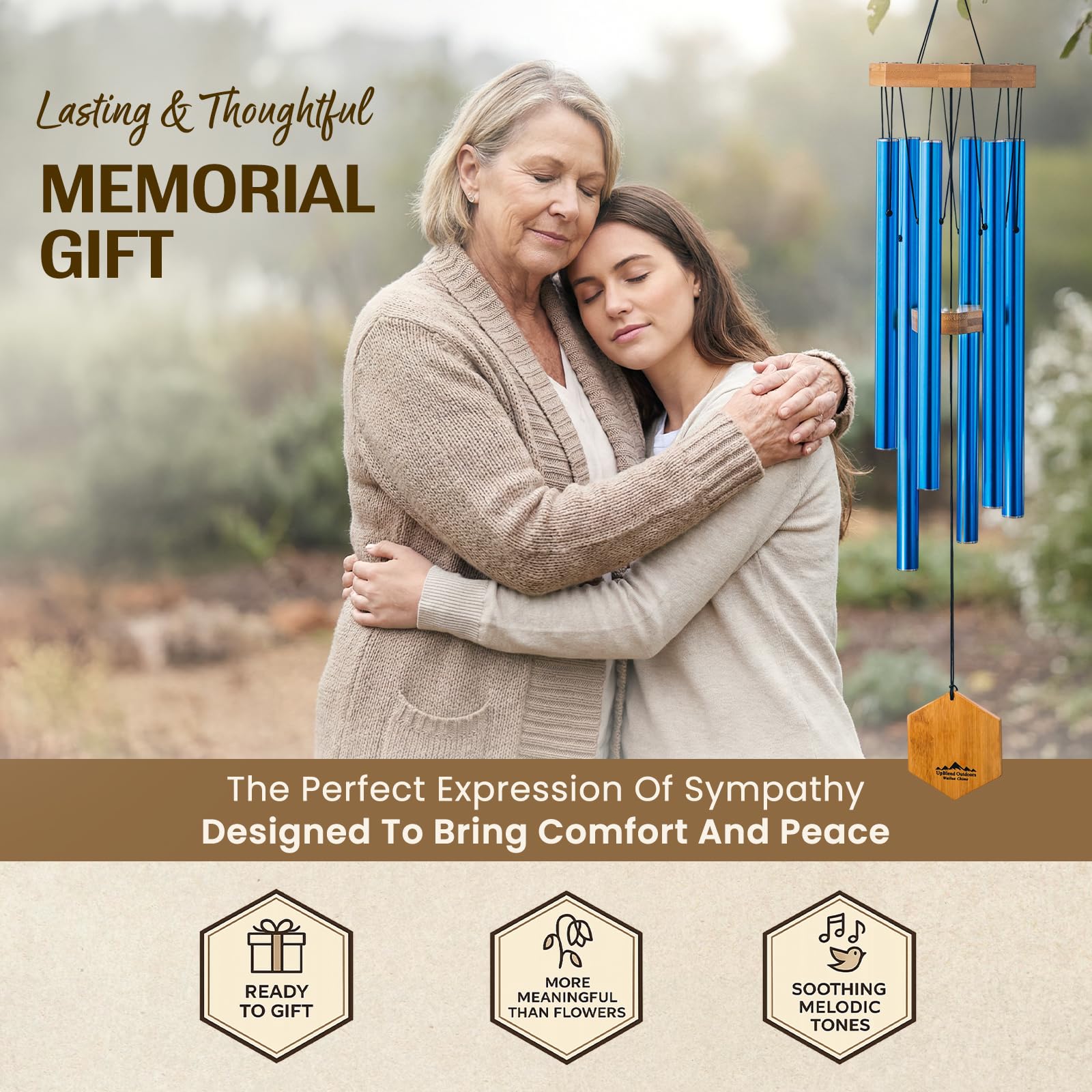 UpBlend Outdoors Windspiel für draussen – 73,7 cm blaues Windspiel für den Aussenbereich, Zen-Gartenspiel für draussen, Blechwindspiel, Dekor-Windspiele für Mutter, Oma, Geschenke für sie