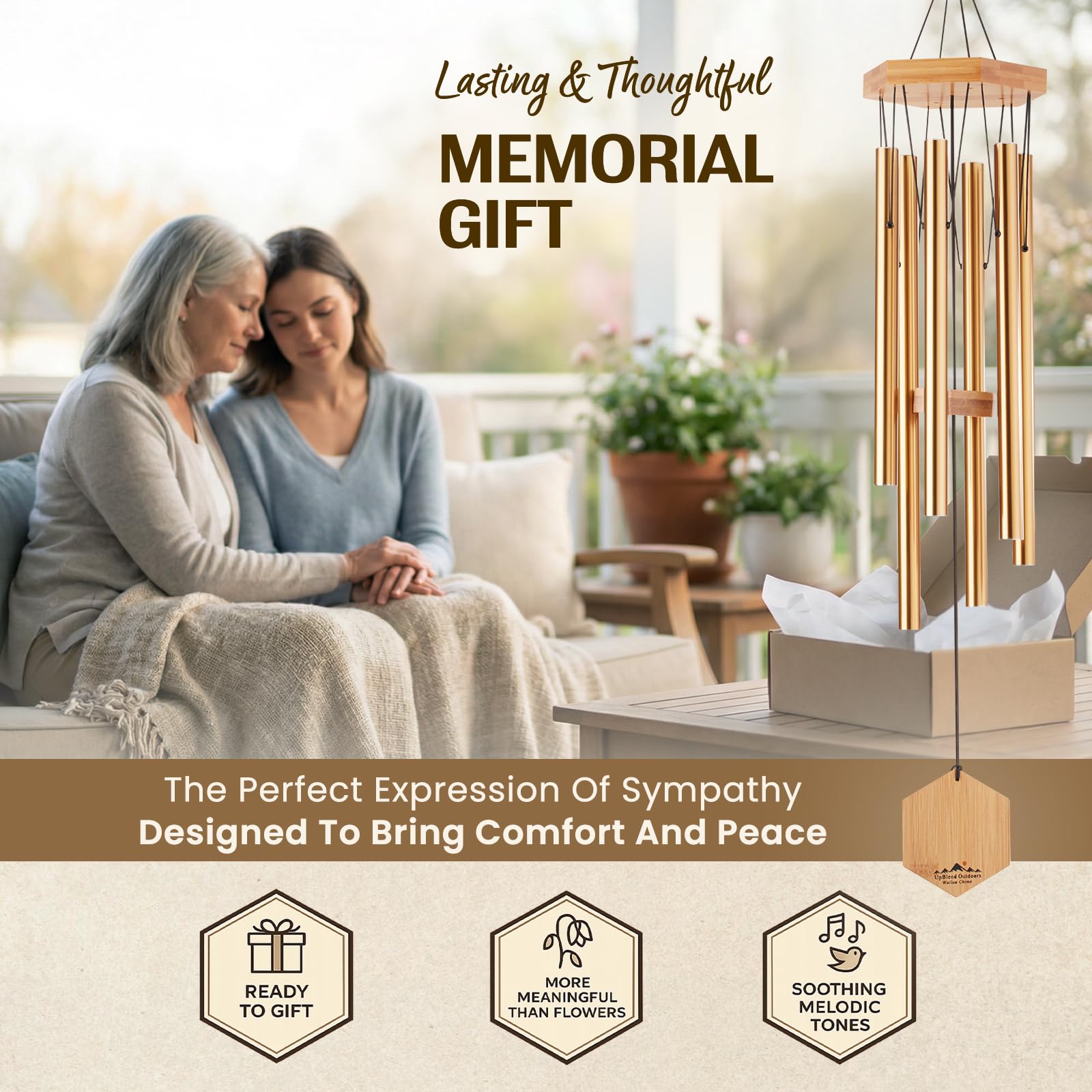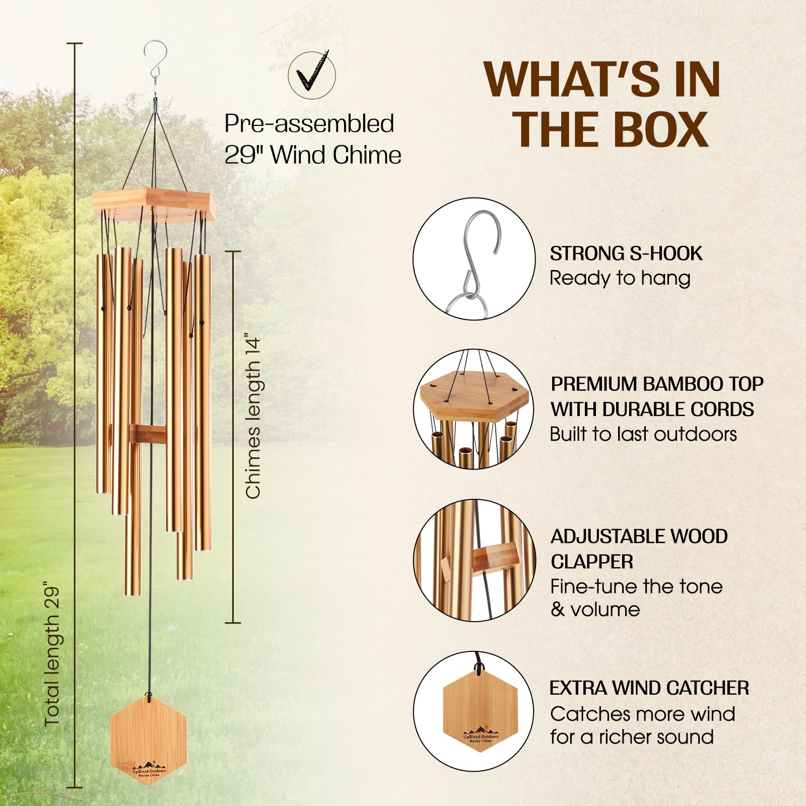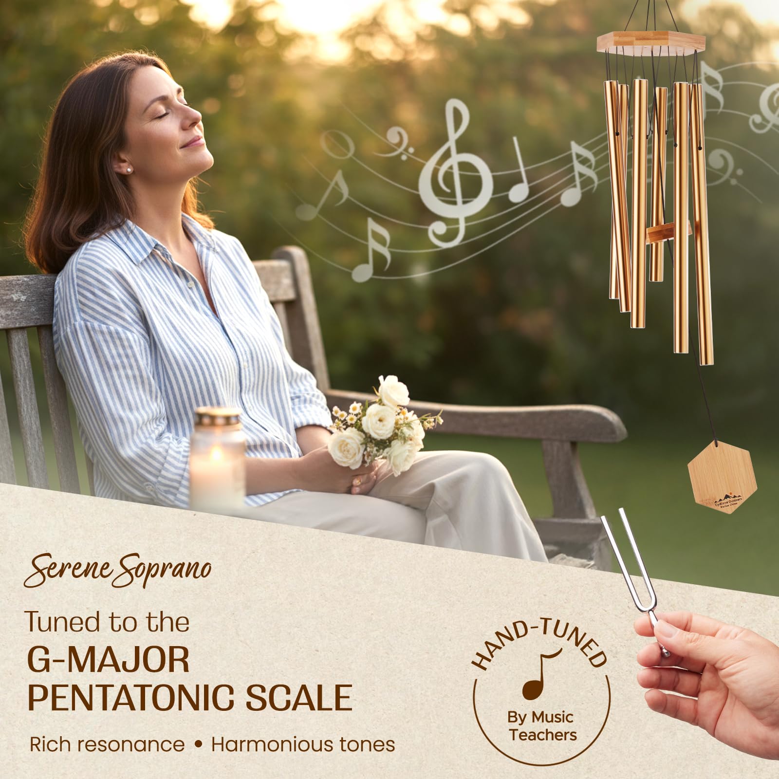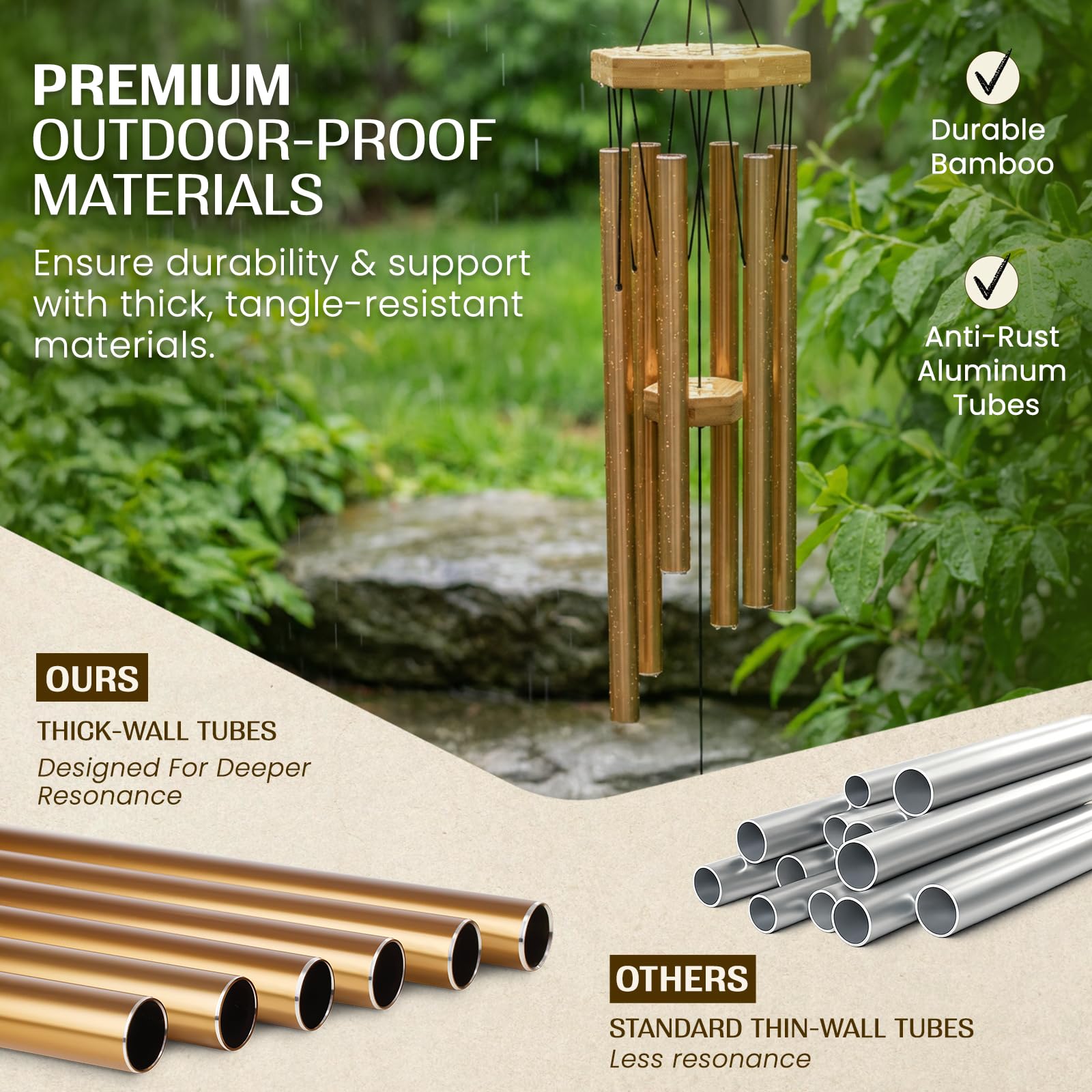 Windspiel für Menschen, die ihre Nachbarn mögen, beruhigende melodische Töne und solide konstruiertes Bambus/Aluminium-Glocke, Veranda, Garten oder Hinterhof.