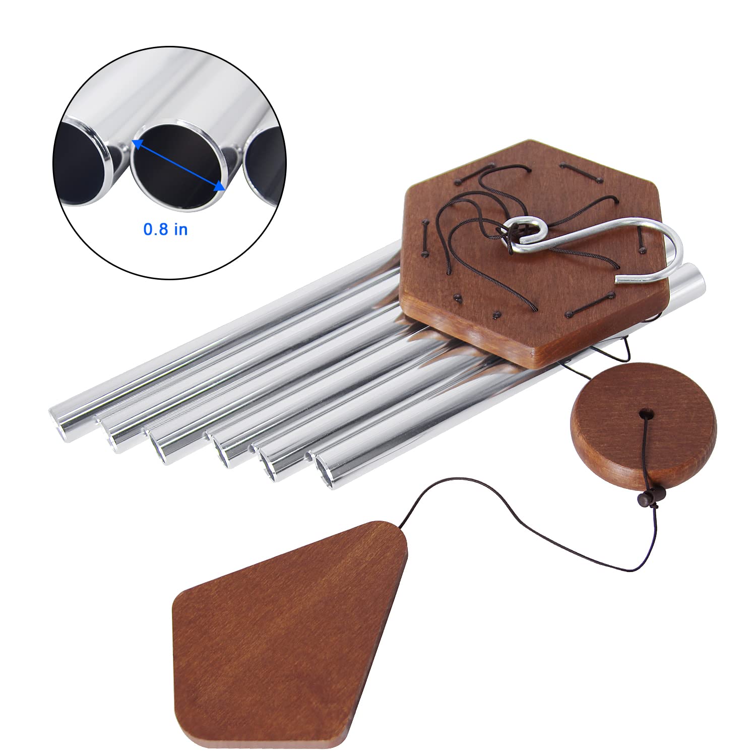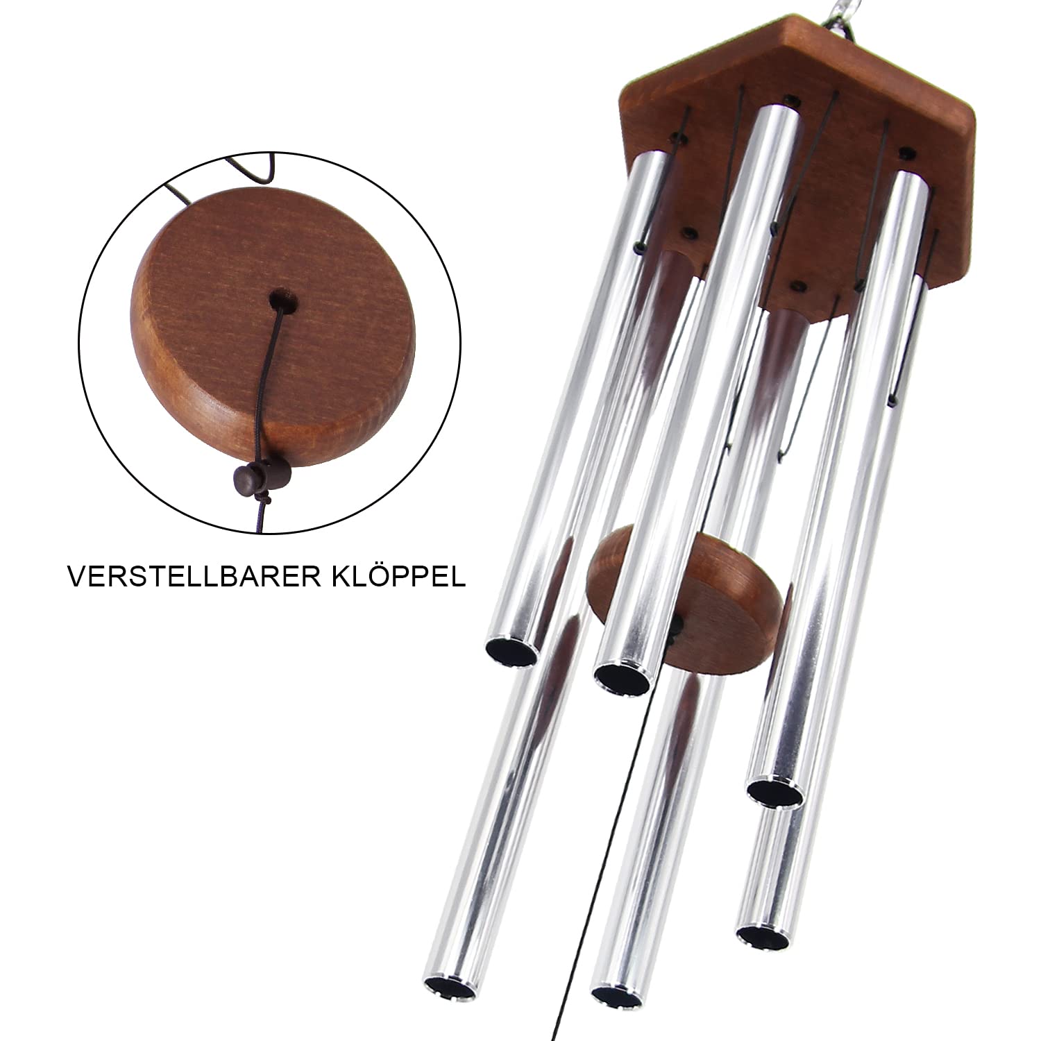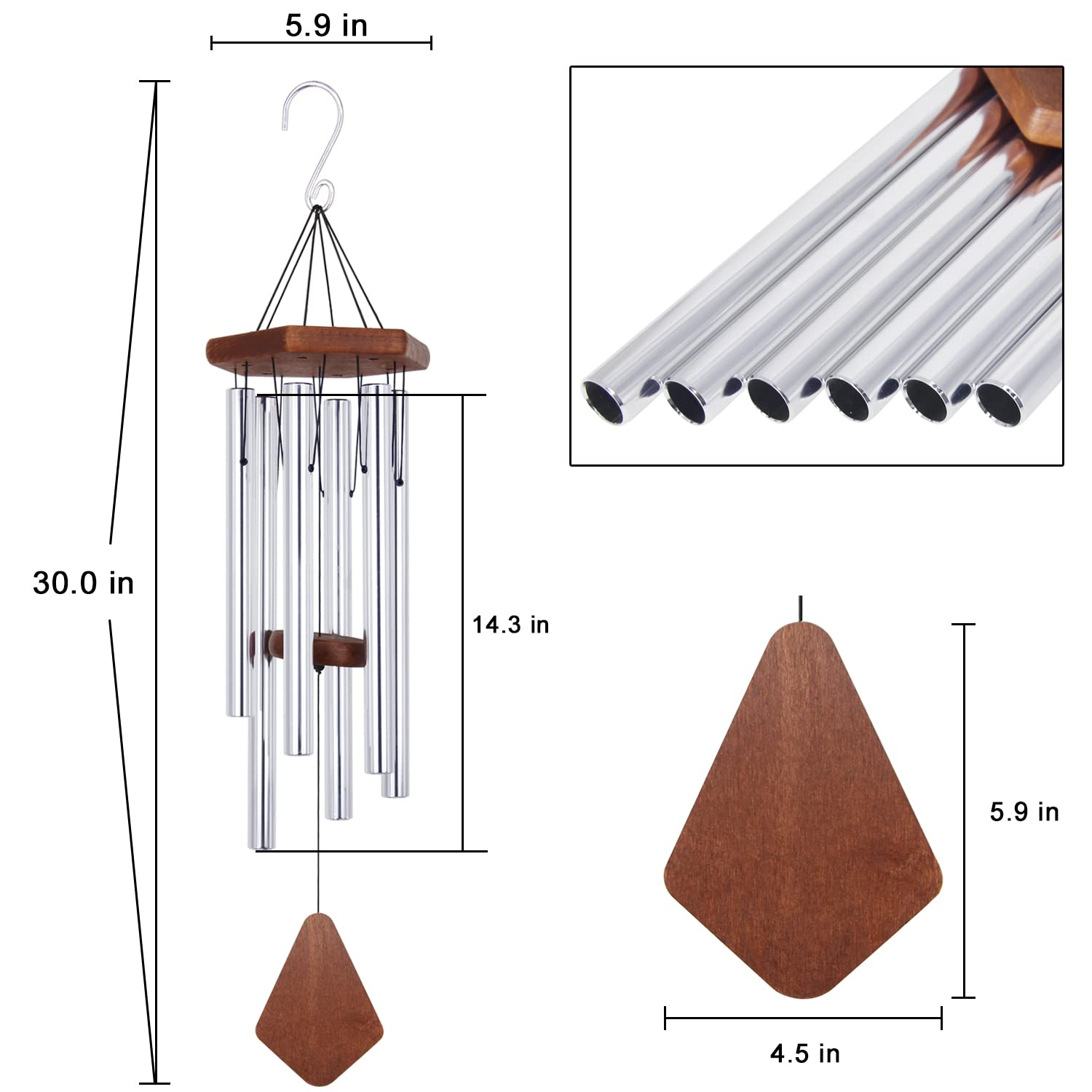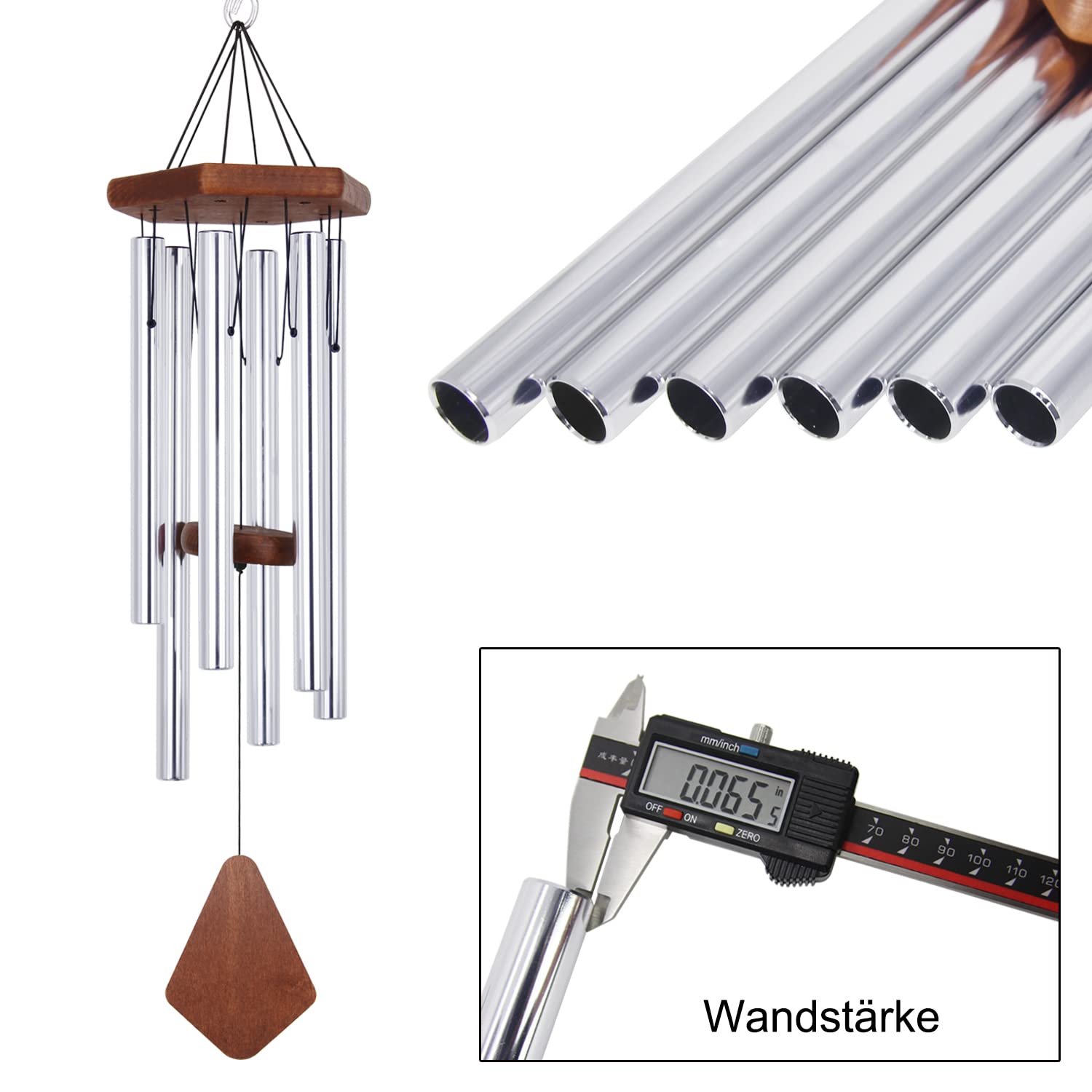 ASTARIN Windspiel für den Aussenbereich, tiefer Ton, 76,2 cm, Gedenk-Windspiel draussen, Hochzeit, personalisiert, mit 6 gestimmten Röhren, elegantes Klangspiel Garten, Terrasse, Balkon und Haus, Silber