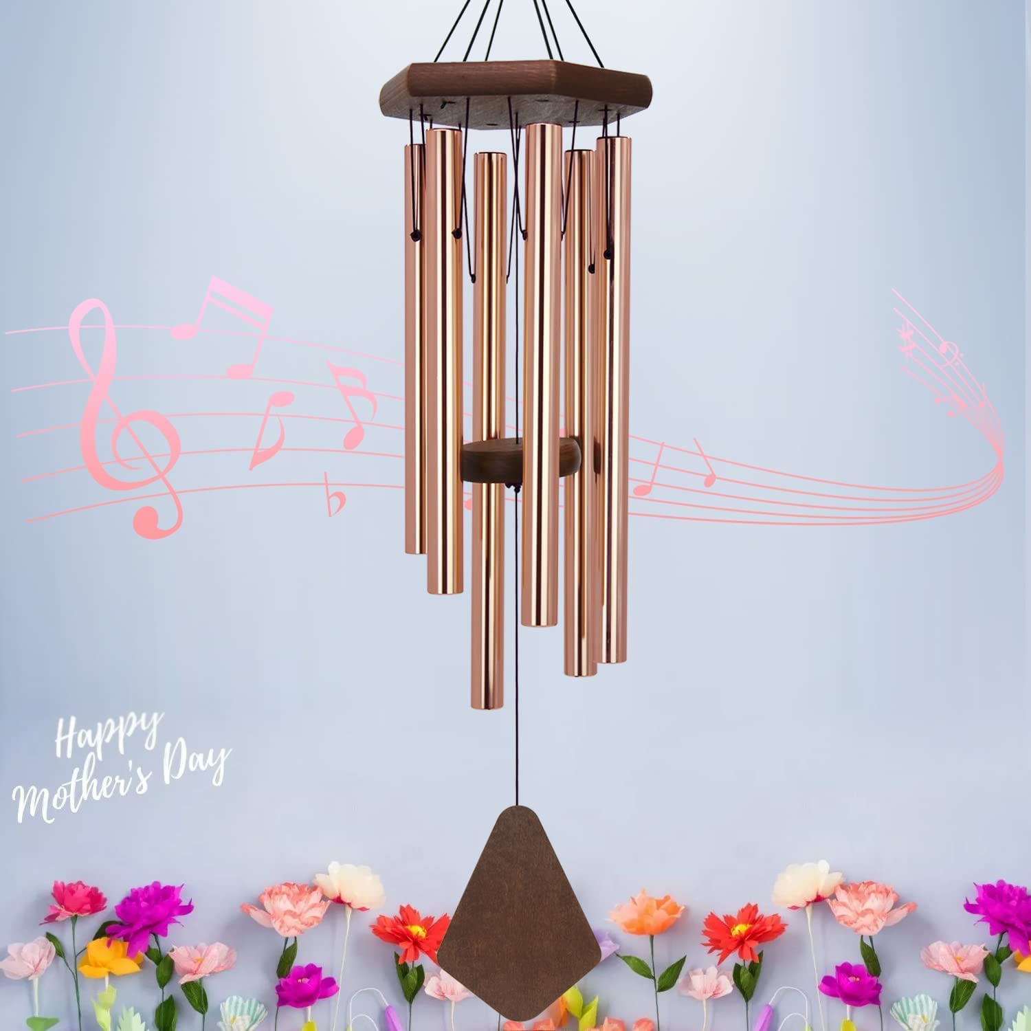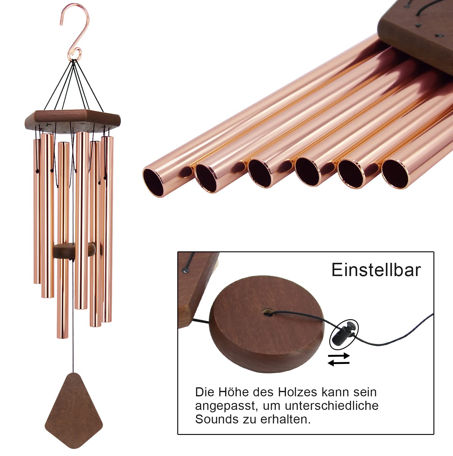 Gedenk-Windspiel für draussen, Outdoor-Windspiel mit tiefem Klang, personalisiertes Trauer-Windspiel mit 6 gestimmten Röhren, elegantes Windspiel für Garten, Terrasse, Balkon und Zuhause, goldfarben