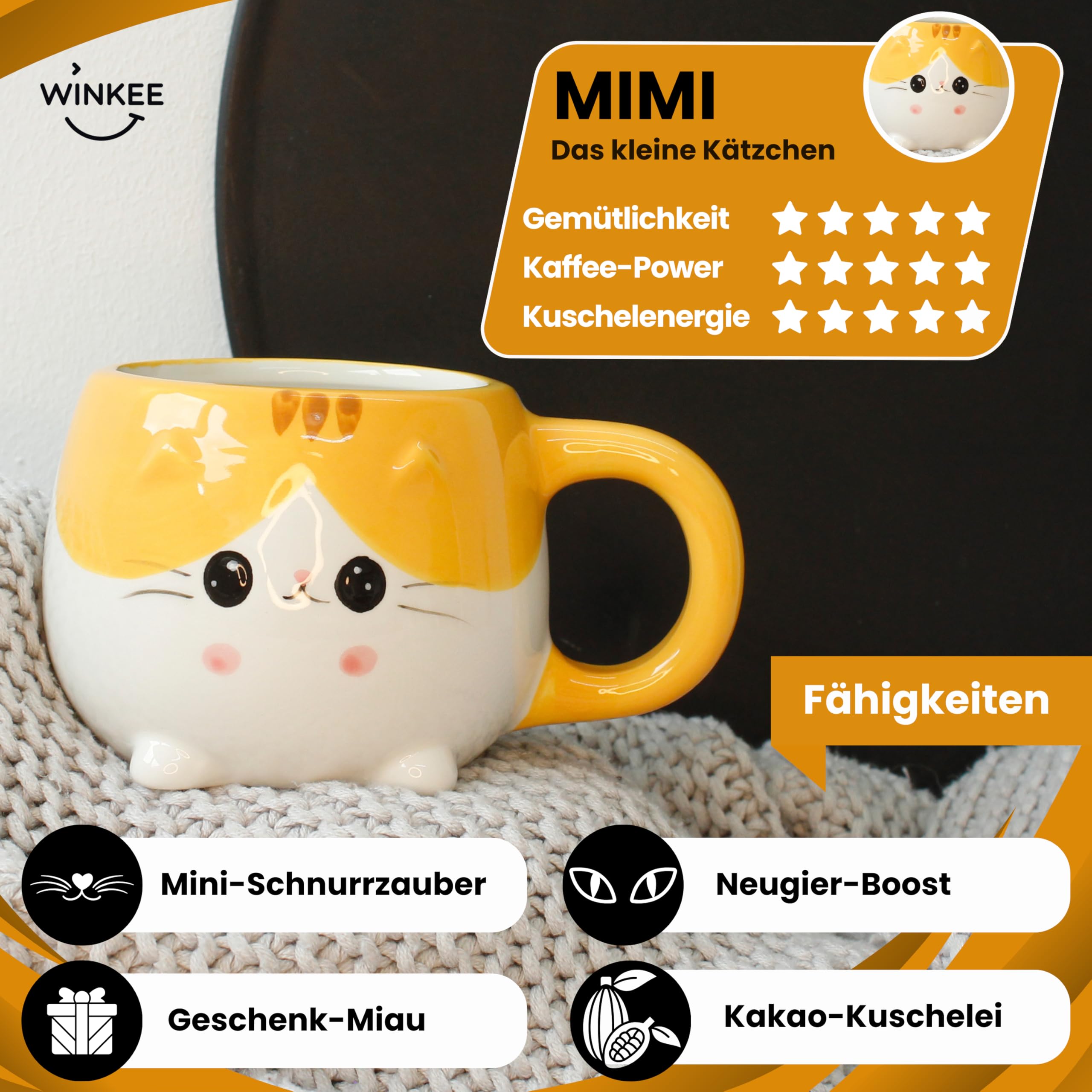 Winkee - Pet Friends Tasse Kätzchen Mimi I Super süsse Kaffeetasse & Teetasse I Grosser Becher- ca. 450 ml